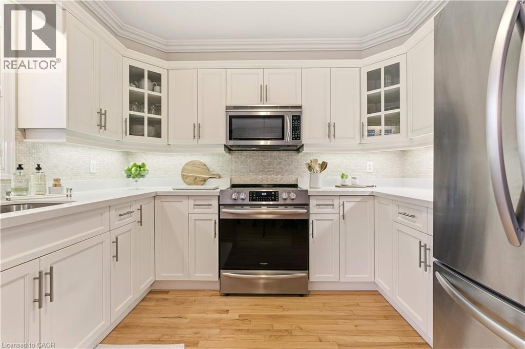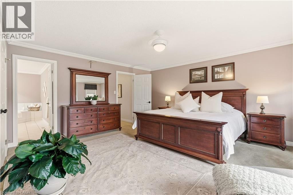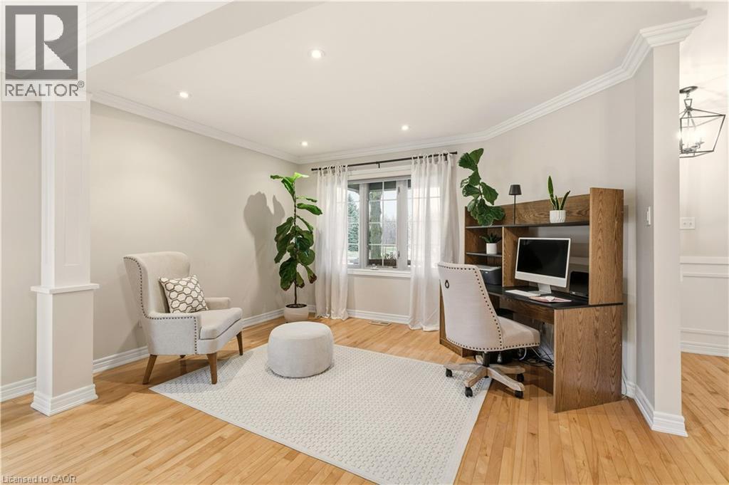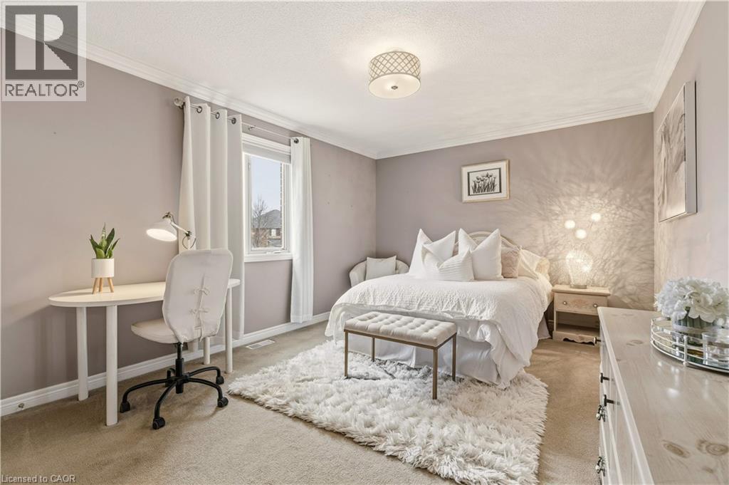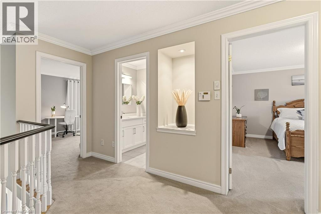 Built by Branthaven Homes, one of the region’s most respected builders this fully detached house is situated on a prominent corner lot in the desirable Orchard with a picturesque, direct view of the neighborhood park right across the street—perfect for families who value green space & sense of community. The home welcomes you with an inviting front porch, an interlock walkway and stylish front door. Inside, the practical layout begins with spacious front foyer, leading to a combined living and dining rooms featuring classic hardwood flooring and bright windows, a wonderful place for family gatherings. As you move to the back of the home, the space opens up into a stunning family room with soaring vaulted ceilings, cozy gas fireplace, and magnificent double stack window that floods the room with natural light. The adjacent updated eat-in kitchen offers elegant quartz countertops, modern backsplash and premium s/s appliances. The main floor is completed with powder room, laundry room and a functional access to the two-car garage. Upstairs, the spacious primary suite serves as a private sanctuary with its own 4-piece ensuite. Two additional well-sized bedrooms share a tastefully updated 4-piece main bathroom, ensuring plenty of space for family or guests. Fully finished basement expands your living space significantly, offering a massive recreation room with electric fireplace, extra bedroom, cold room, and abundant storage. While the home retains its original charm, it has been maintained with exceptional pride of ownership. Key upgrades that provide peace of mind include roof shingles (2015) and high-efficiency furnace installed in 2020. Other premium finishes include California shutters, Hunter Douglas window sheers, crown moldings, updated light fixtures and pot lights. The backyard is designed for relaxation without the work, featuring high-end, maintenance free TREX decking and sprinkler system. Minutes away from top-tier schools, shopping, transit & hwy access. (id:51158)