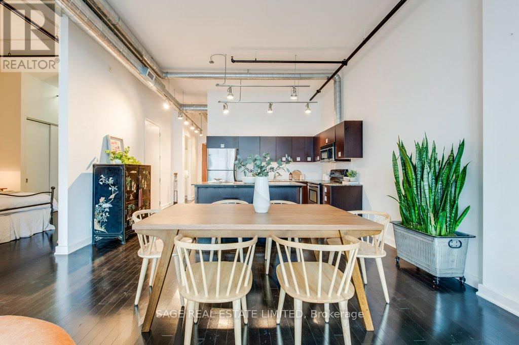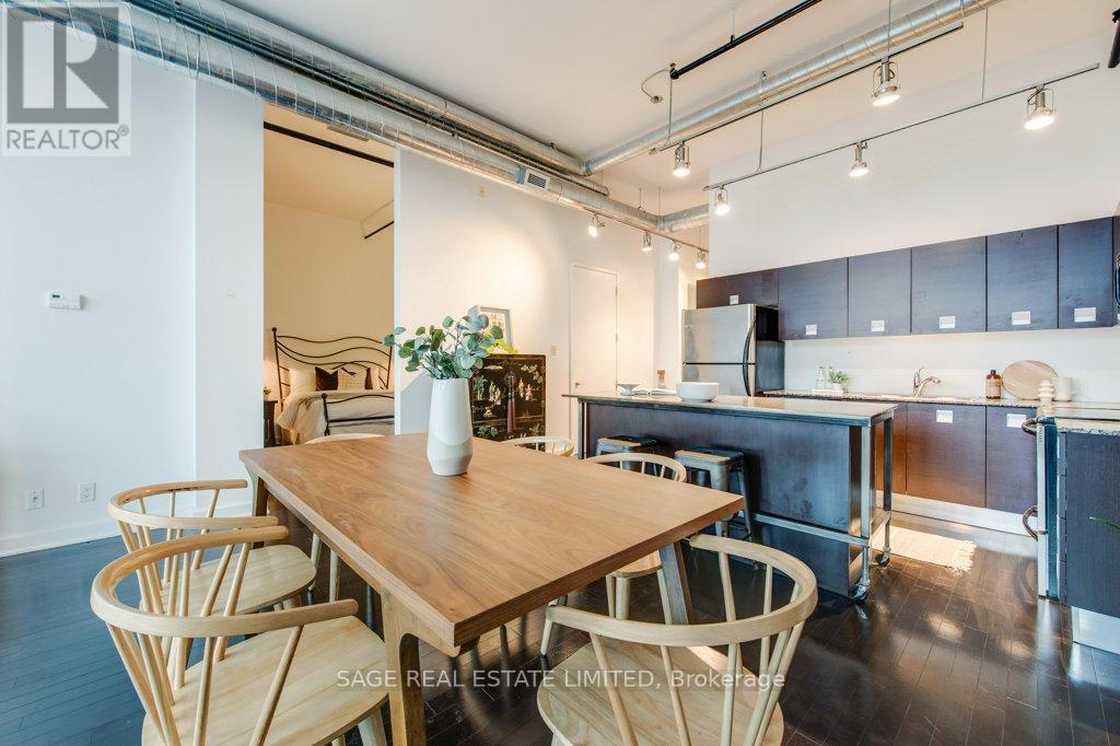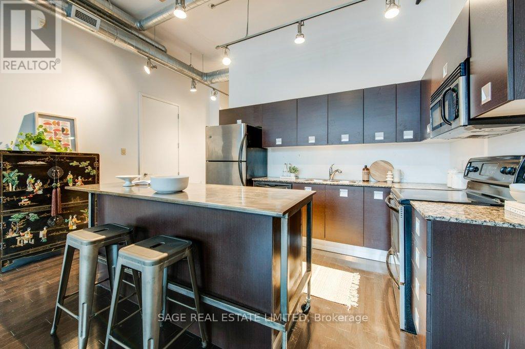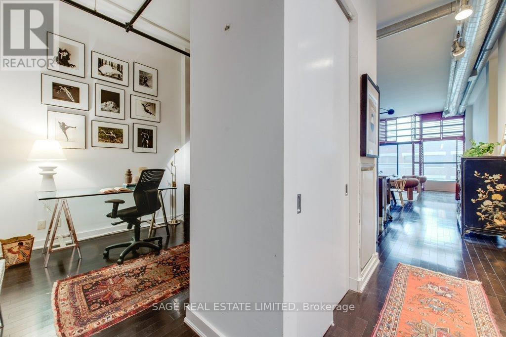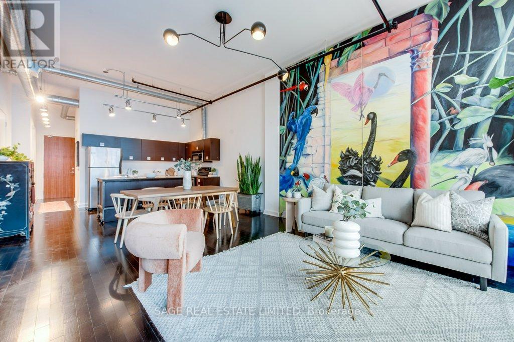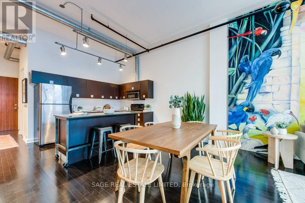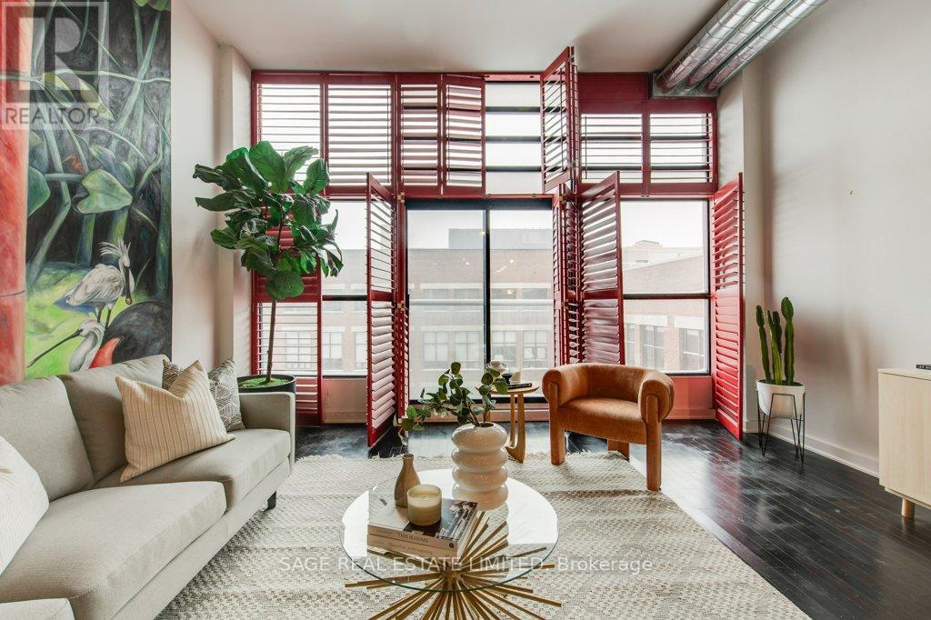$715.58 MonthlySet in the heart of Liberty Village, this beautifully maintained 1 bed plus den in the iconic Toy Factory Lofts delivers true, authentic loft living with serious style. Soaring ceilings and oversized warehouse-style windows flood the space with natural light and showcase its industrial-chic character. Modern upgrades are seamlessly blended throughout, including rich hardwood floors, custom California shutters, a walk-through closet, and striking bathroom tile that balances design with everyday comfort. The flexible den easily adapts to your lifestyle. Perfect as a home office, guest room, or creative studio. A west-facing Juliet balcony brings in warm afternoon light and stunning sunset views. Step outside and you're surrounded by trendy cafés, top-rated restaurants, boutique shops, and fitness studios. With downtown just minutes away, this isn't just a place to live. It's a lifestyle you'll love coming home to. (id:51158)