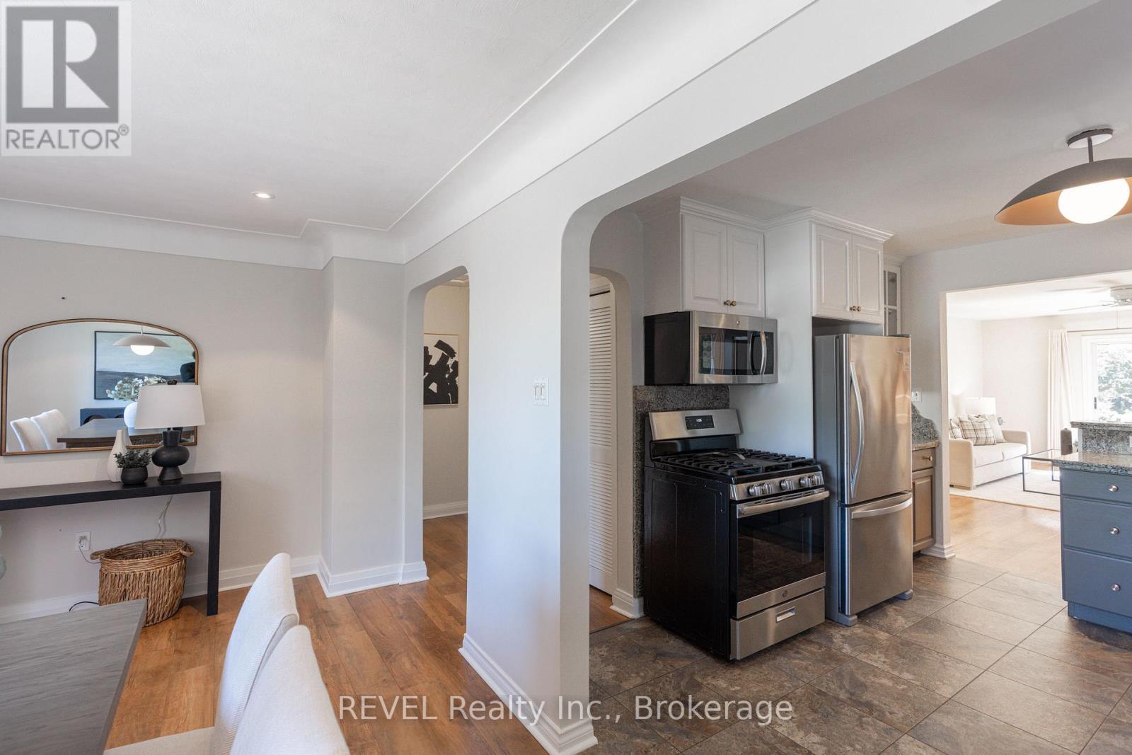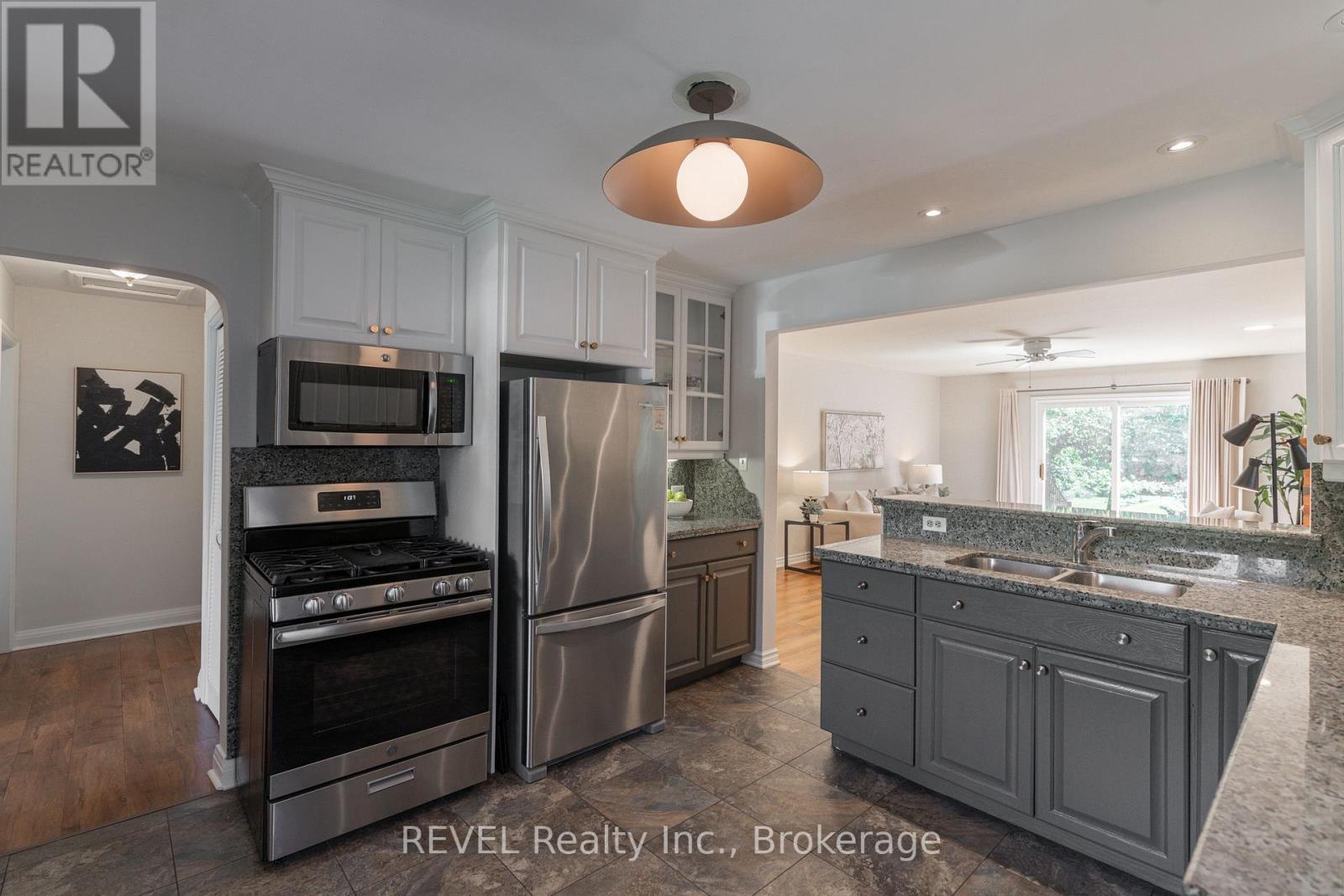 This is your opportunity to get into Old Town Niagara on the Lake! Amazing bungalow with warm flooring throughout the main floor, large room sizes, and a massive lot with cultured gardens for you to enjoy! Two bedrooms on the main floor nicely separated for privacy with the main bath across from the primary bedroom. Separate step in shower and jacuzzi tub. So much natural light! This home is incredibly warm and inviting. Lovely updated kitchen with new built in dishwasher and professionally refinished cabinetry (2023.) The living room is large with an amazing brick hearth and natural gas fireplace as well as large sliding glass doors to the new composite deck (2025.) Side entry recently updated with composite deck as well (2025.) Furnace and AC replaced in 2022. The lower level has tons of space for you and/or the kids as a family room and the added lower level with basement walkout is massive and has so much potential to be an exercise room, family room, games room, or even a small business area! This home has previously been licensed by the town as an Air BNB and other small businesses, so you know that is it an option if that is what you are looking for. There could be fantastic potential to live upstairs and use the 2nd lower level for your home based business (due diligence to be done by purchaser to ensure the zoning permits desired usage.) The grounds have been professionally groomed and cultured and they are very private. The garage is quite large with plenty of space for a workshop and storage. This bungalow is super cute and only a few blocks from the entertainment area, restaurants, golf, Shaw Theatres, and so much more. You most definitely will not be disappointed. (id:51158)