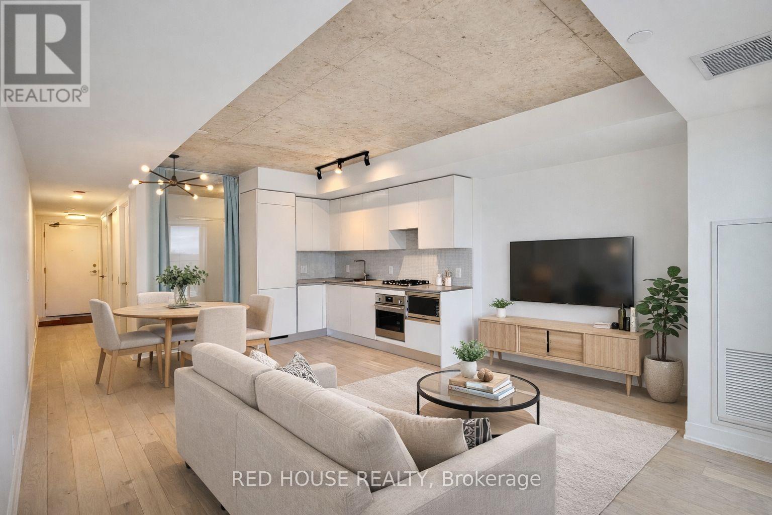 Contemporary Oversized 1 bedroom condo(Over 600 sq ft) in the heart of the vibrant Junction. Offers a modern living experience. The open-concept kitchen, dining, and living room layout enhances the overall spaciousness. Exposed 9 Foot Concrete Ceilings. White Oak Hardwood Flooring throughout. Light fixture in Primary Bedroom. Lots of natural light /floor-to-ceiling windows in the living room provide a view of the surrounding cityscape. Experience the Lux-Life with on-site amenities that include an exercise room, co-working space, and a Rooftop Terrace boasting BBQ facilities and a cozy Firepit. Located in a prime area, this residence is in close proximity to the Union Pearson Express; Walking distance to Dundas West Station ensures seamless connectivity to the rest of the city. Designed by superkul architects, and Scavolini kitchen/bathroom. *Some photos have been virtually staged for illustration purposes. (id:51158)