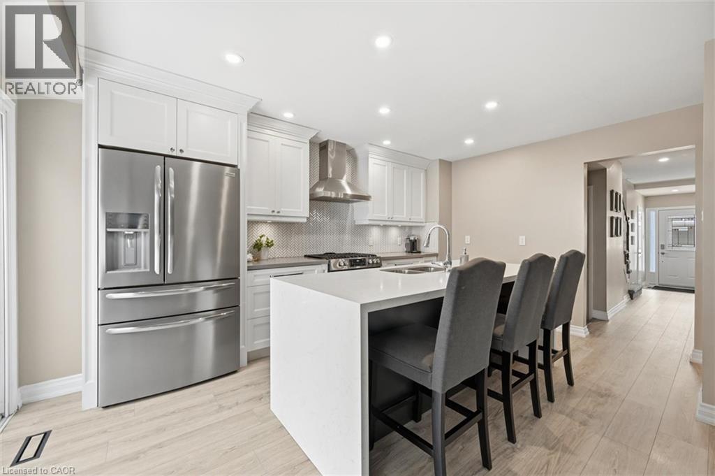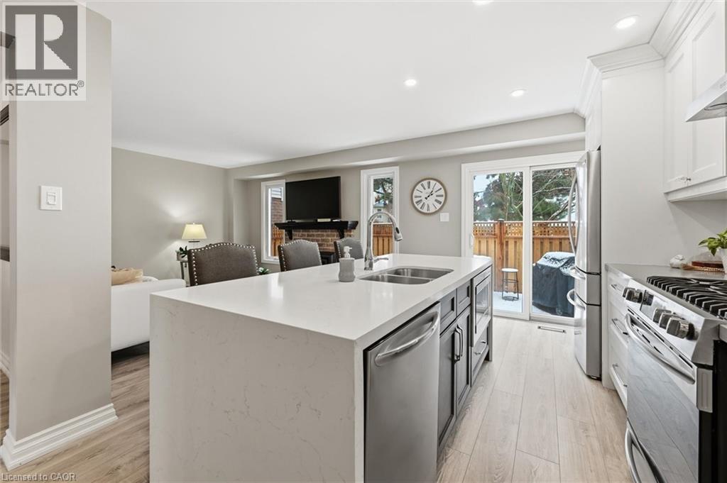 Gorgeous updated town home in the sought after South East Burlington steps to the Lake & all amenities. A small enclave of owners in a private setting with mature trees, gardens, parks and tree line neighbourhoods for walking and enjoy life. The home has recently been updated with new flooring throughout, a stunning open concept chefs kitchen with large quartz island, backsplash, custom cabinetry, breakfast bar, pot lighting open to a cozy family room with natural gas fireplace, bright natural light and a walk-out to your private sun deck for outdoor dining/bqq area. Separate dining area with plenty of space for large gatherings open to a spacious living room for entertaining. The 2nd floor features two large primary bedrooms with spacious ensuites, large windows/natural light/skylights. The lower level has been fully finished with 3 piece bathroom, comfortable den and office space. This house is perfect for families, down sizers, retirees and those looking to lock up and go. Move in and enjoy. New A/C & furnace. HOA includes snow removal to the door, salting, all landscaping. Close to GO train, Highway access, Lake Ontario, grocery, restaurants and banking. Move in ready. (id:51158)