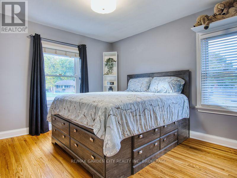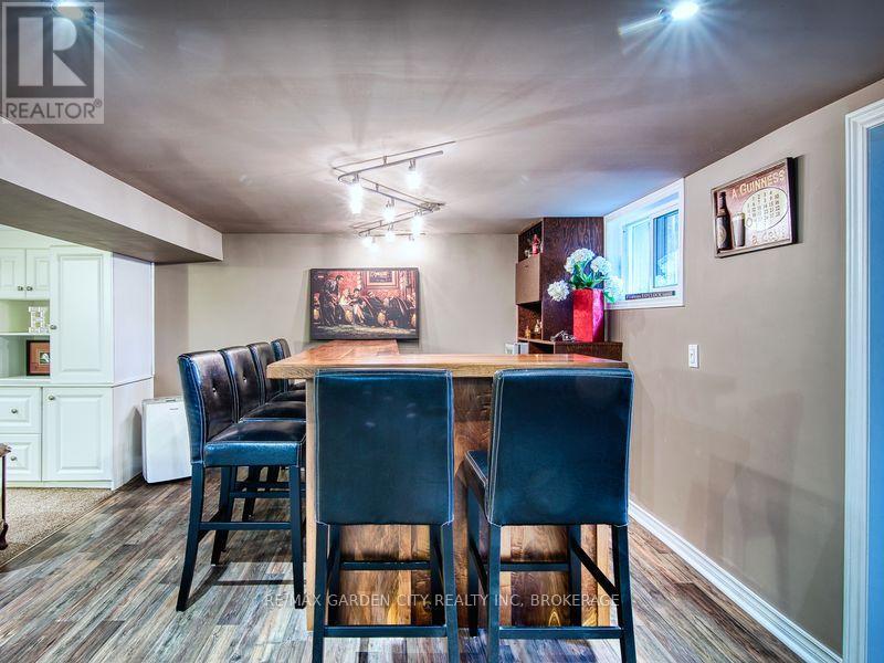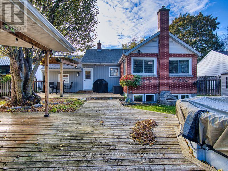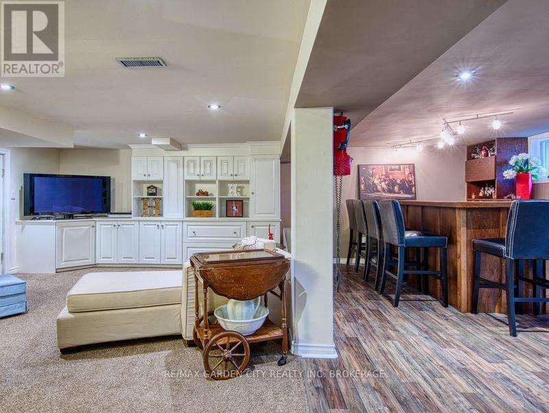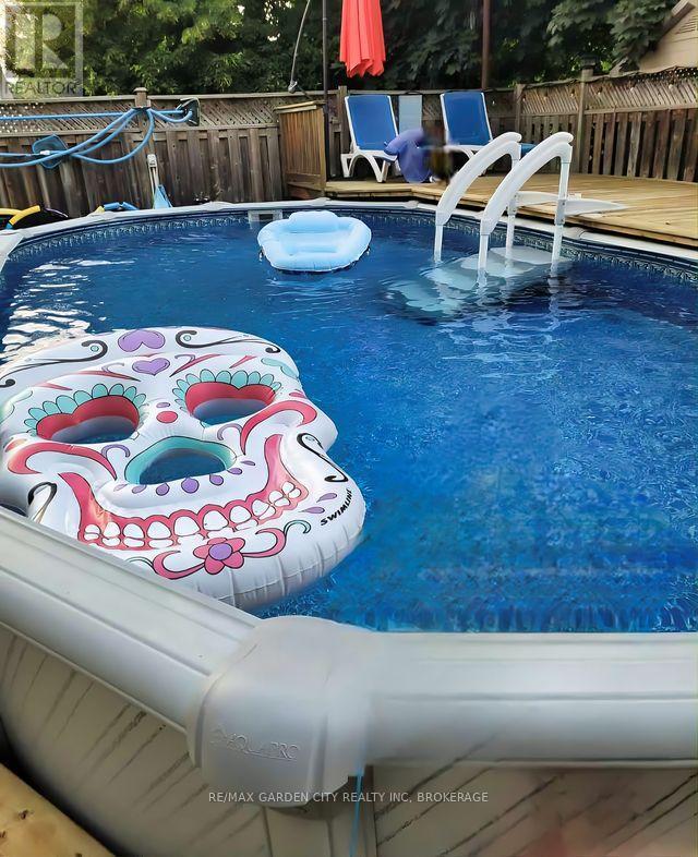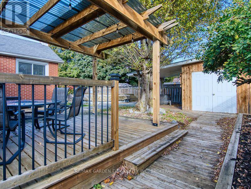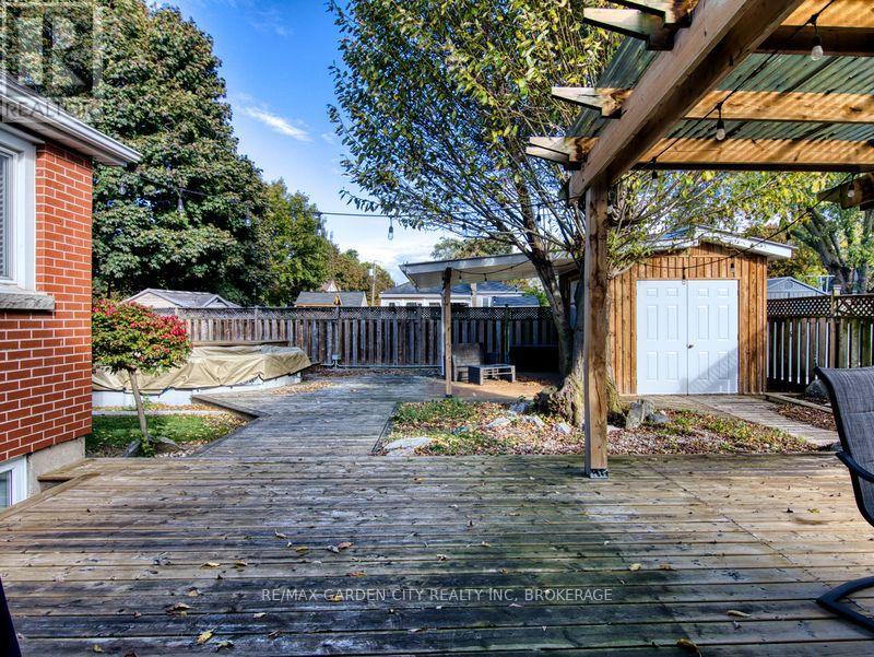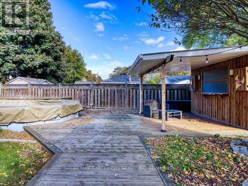 Large 1267 SQFT north end bungalow with dble paved drive to park 6 cars and attached garage. Fenced yard with above ground pool, shed with overhang roof over deck and having a large serving window for a great Tiki bar. Pergola over 2nd deck plus a 2nd shed. Great yard for entertaining! Open concept Livingrm and diningrm that is also open to the bright kitchen with island and white cabinets. Lots of hardwood floors. Primary bedrm with walk through his and her closets. Also there is a 2nd and 3rd bedrm plus 4pc bathrm with newer vanity. Finished basement offers an open recrm with blt-in entertainment cabinets, dry bar with 7 bar chairs. 4th bedrm with sunken floor allowing large windows. Updated 3pc bathrm with glass shower. There is also an office/storage room and a Laundry/Furnace room. 2010 furnace & c/air, lots of vinyl windows, 2025 filter & pump for pool. 100 amp breaker panel. (id:51158)