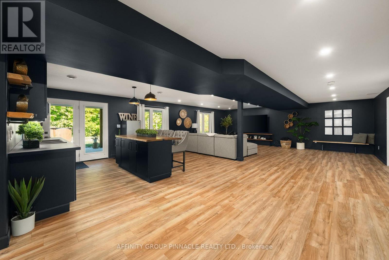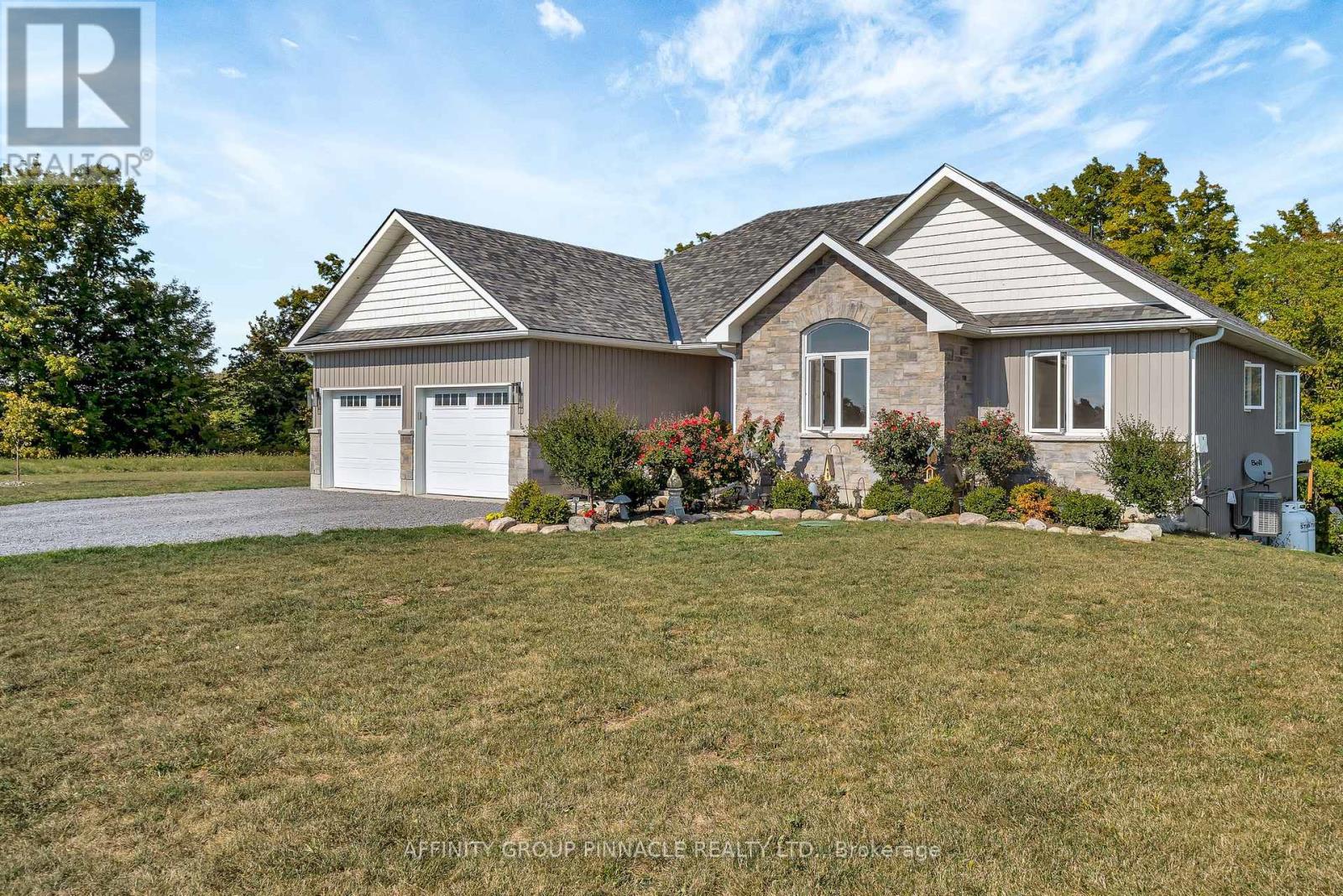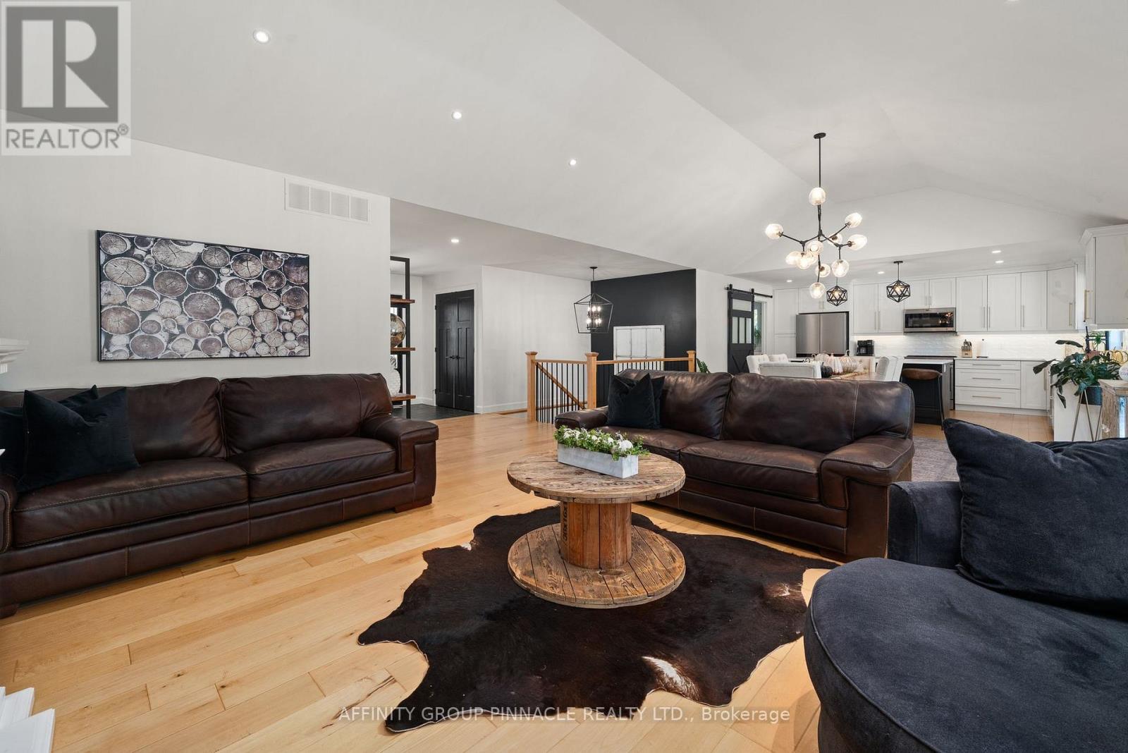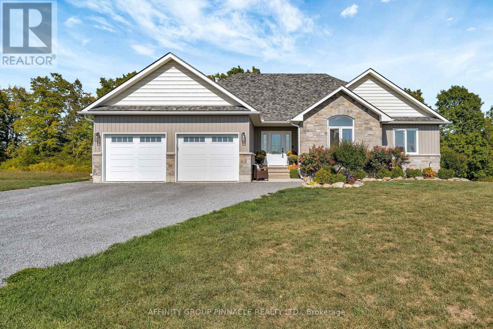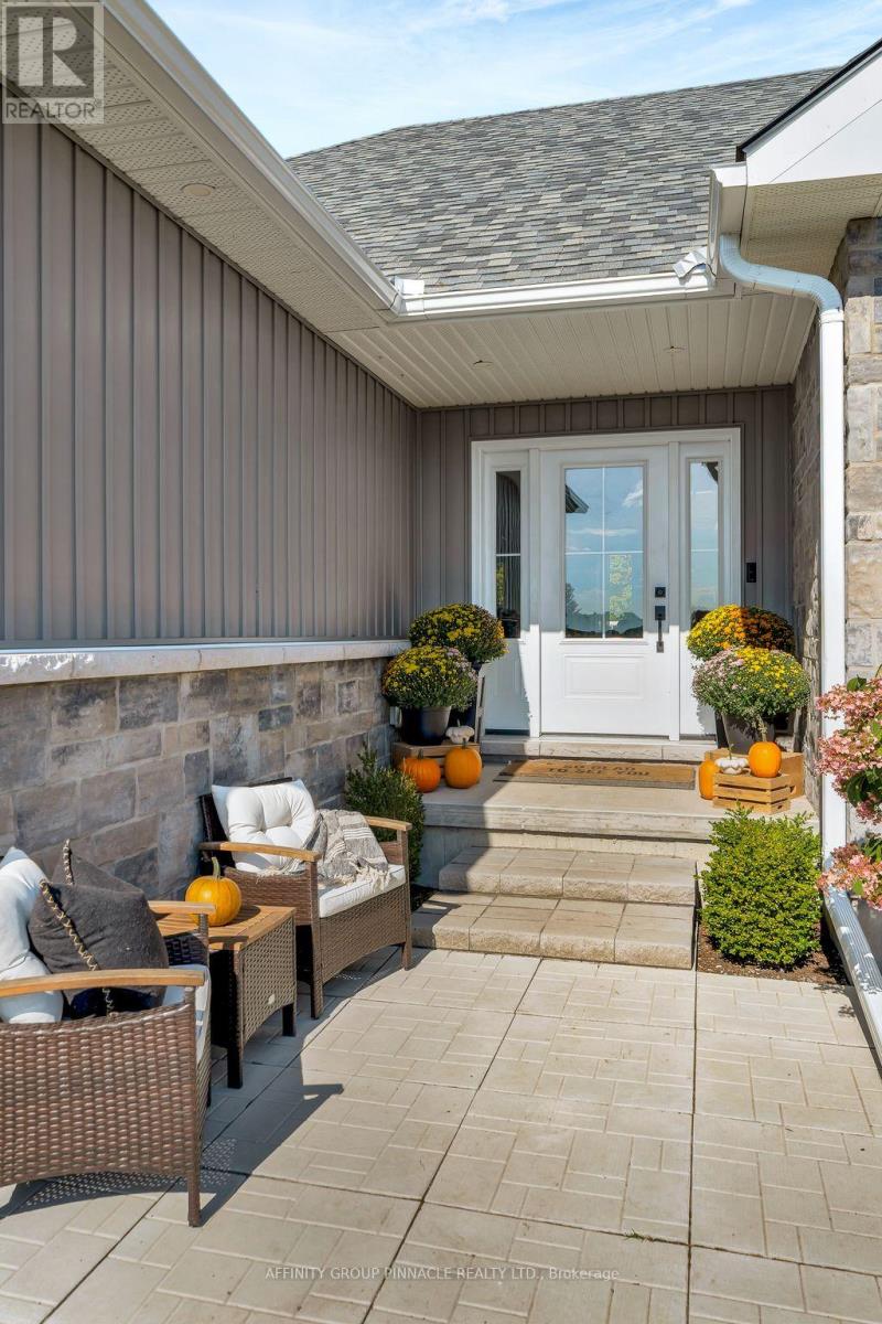 This 4 bedroom 3 bath 1756 square foot bungalow is over the top. Built in 2021 and situated on an amazing 15 acre property surrounded by fields and forest. From the moment you walk through the welcoming foyer into the huge open concept kitchen, dining and living room with vaulted ceiling and hardwood throughout. you' ll feel at home. Quartz counters, spacious island and stainless steel appliances. Walk out to a massive deck with a sitting and BBQ gazebo overlooking a lovely back yard complete with pool, chicken coop and fire pit area. Mainfloor has Laundry, 3 bedrooms, an ensuite and separate entrance to the double garage. The newly finished lower level boasts an incredible bright rec room an office, an exercise room and another bedroom, and an inviting wet bar area. Walkout to a covered patio and enjoy a quiet relaxing sitting area. This lovely home is still under Tarion warranty, and agreement with the farmer keeps taxes low. (id:51158)