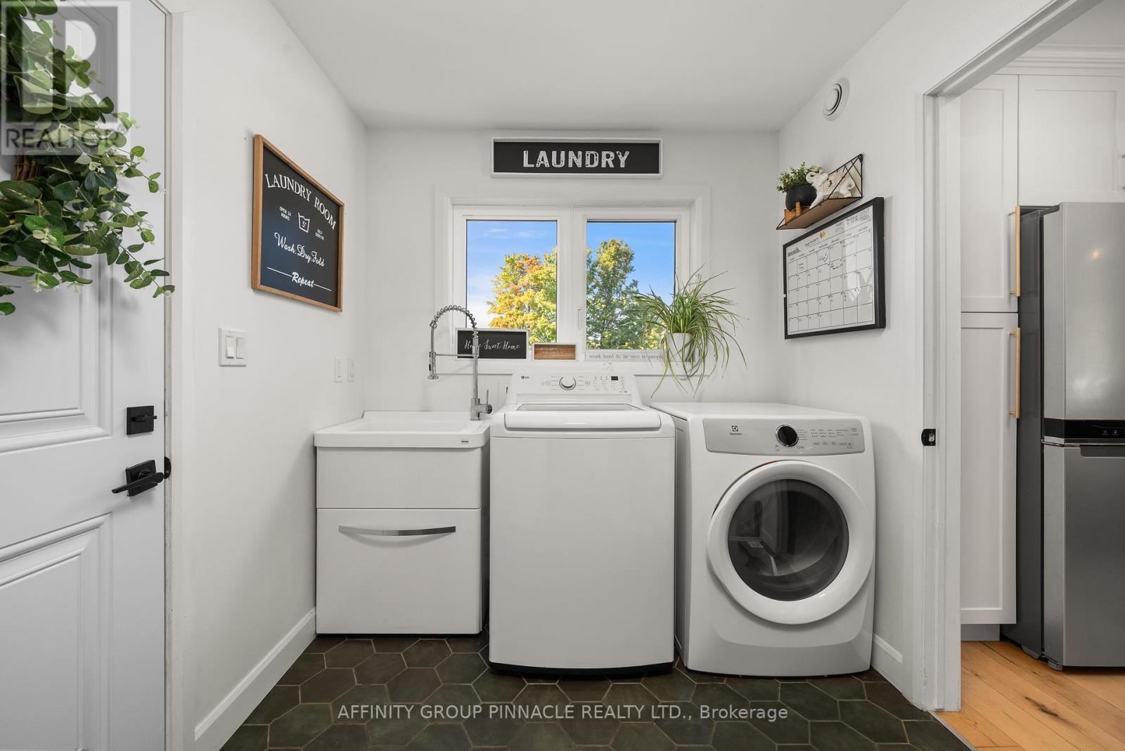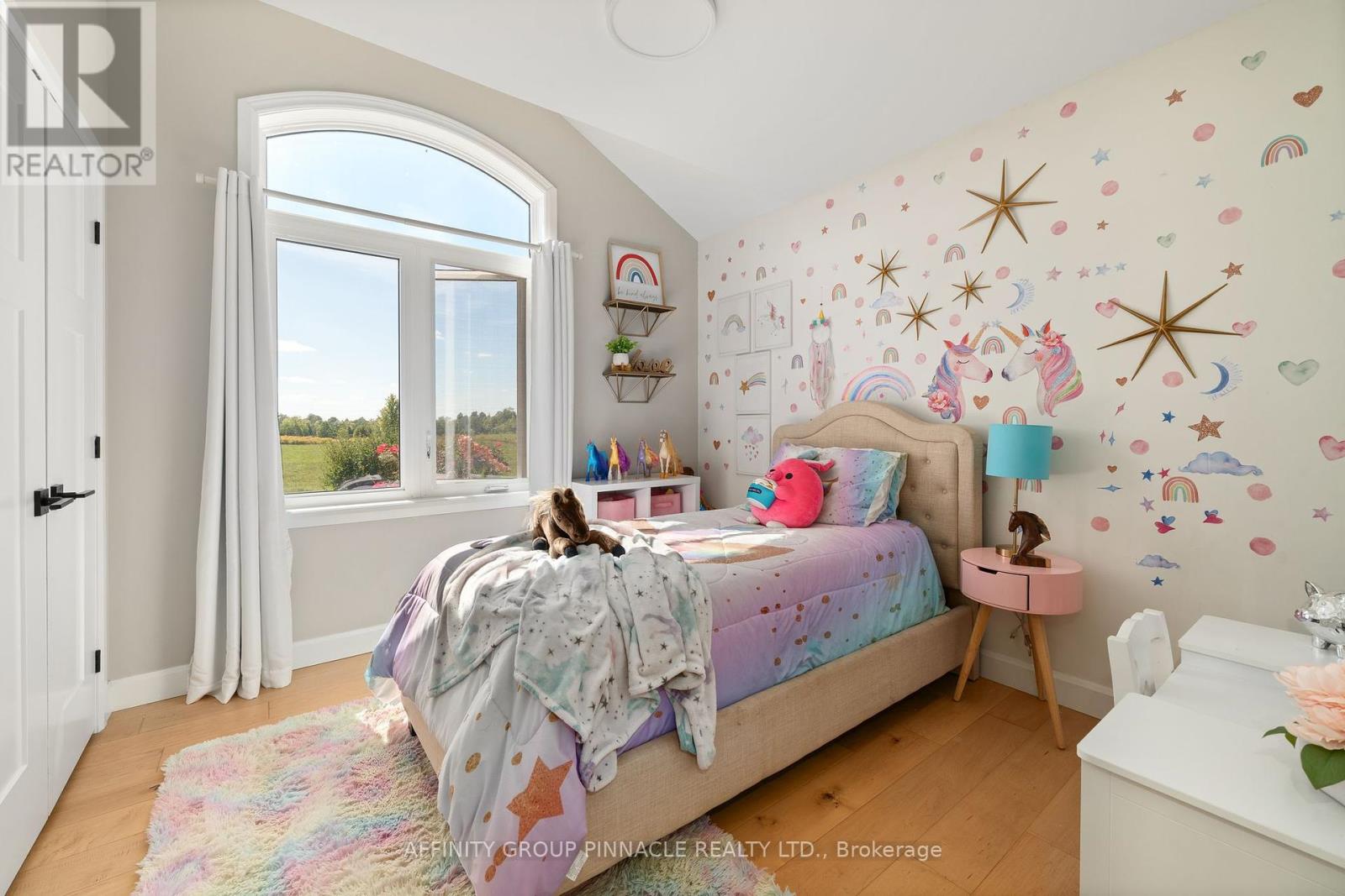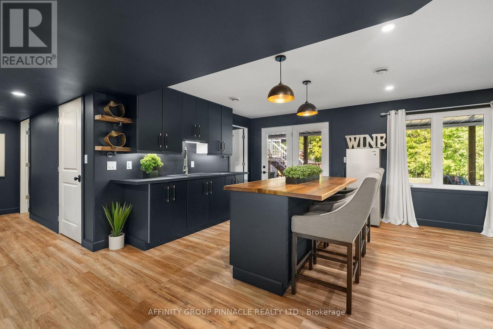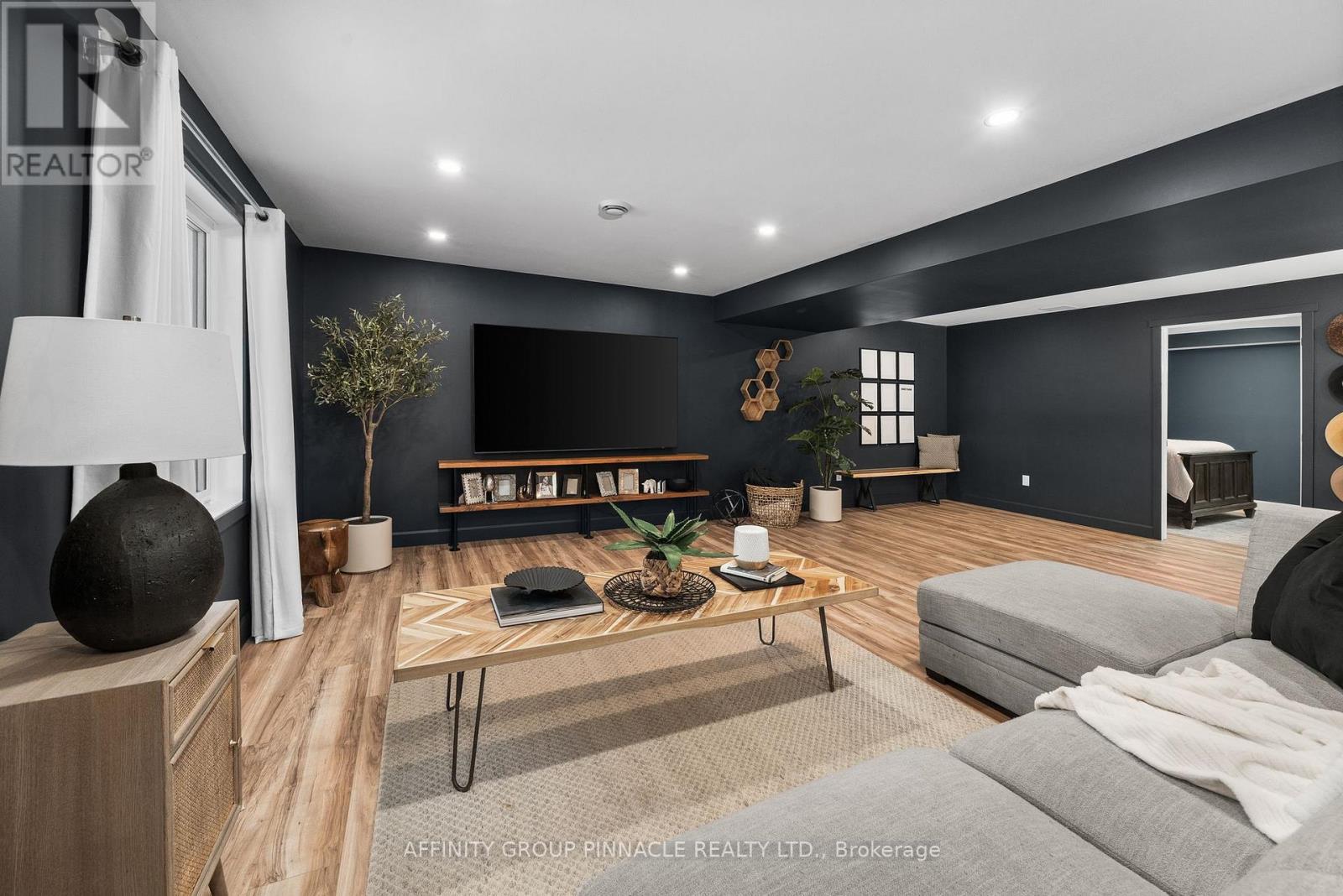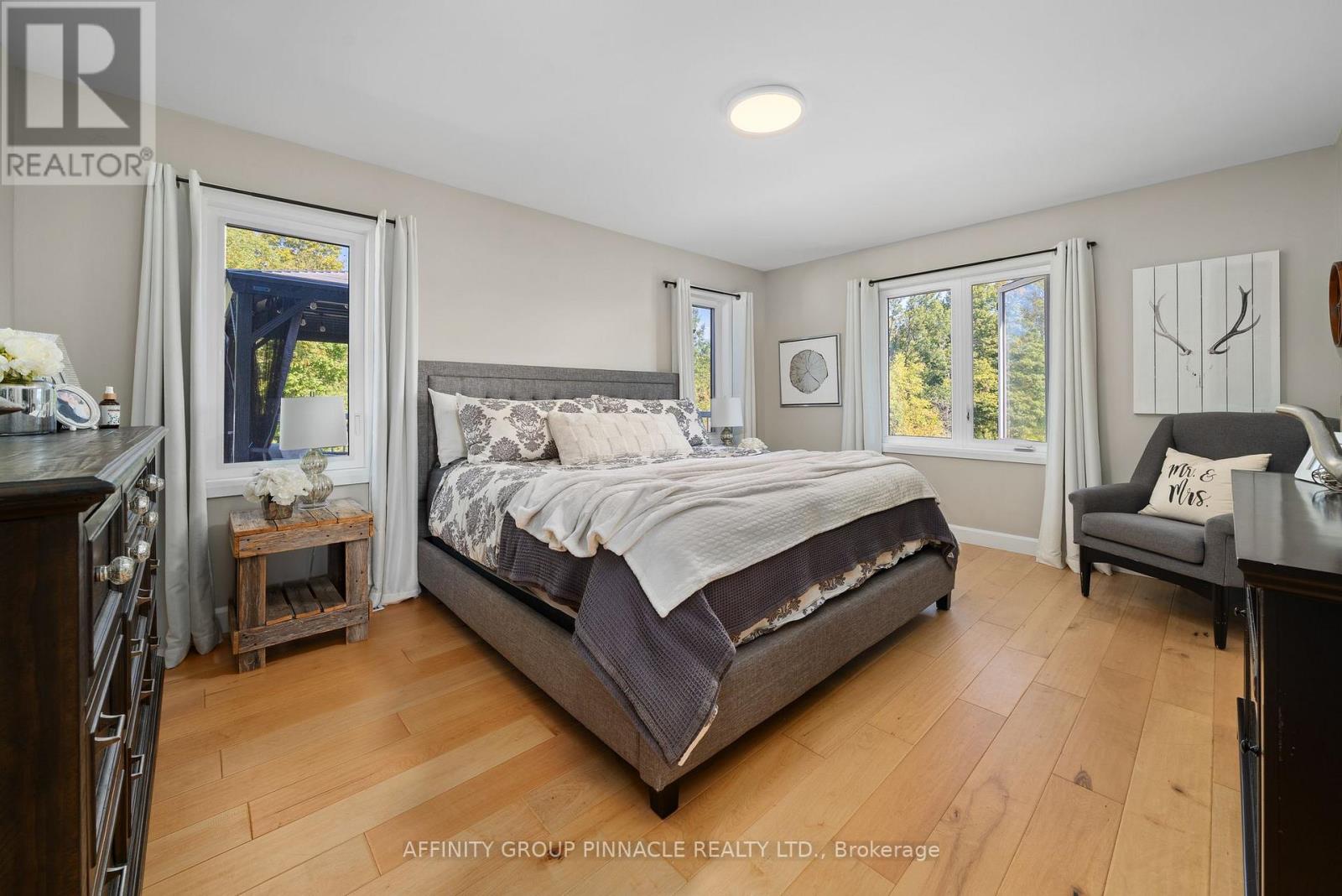 This 4 bedroom 3 bath 1756 square foot bungalow is over the top. Built in 2021 and situated on an amazing 15 acre property surrounded by fields and forest. From the moment you walk through the welcoming foyer into the huge open concept kitchen, dining and living room with vaulted ceiling and hardwood throughout. you' ll feel at home. Quartz counters, spacious island and stainless steel appliances. Walk out to a massive deck with a sitting and BBQ gazebo overlooking a lovely back yard complete with pool, chicken coop and fire pit area. Mainfloor has Laundry, 3 bedrooms, an ensuite and separate entrance to the double garage. The newly finished lower level boasts an incredible bright rec room an office, an exercise room and another bedroom, and an inviting wet bar area. Walkout to a covered patio and enjoy a quiet relaxing sitting area. This lovely home is still under Tarion warranty, and agreement with the farmer keeps taxes low. (id:51158)