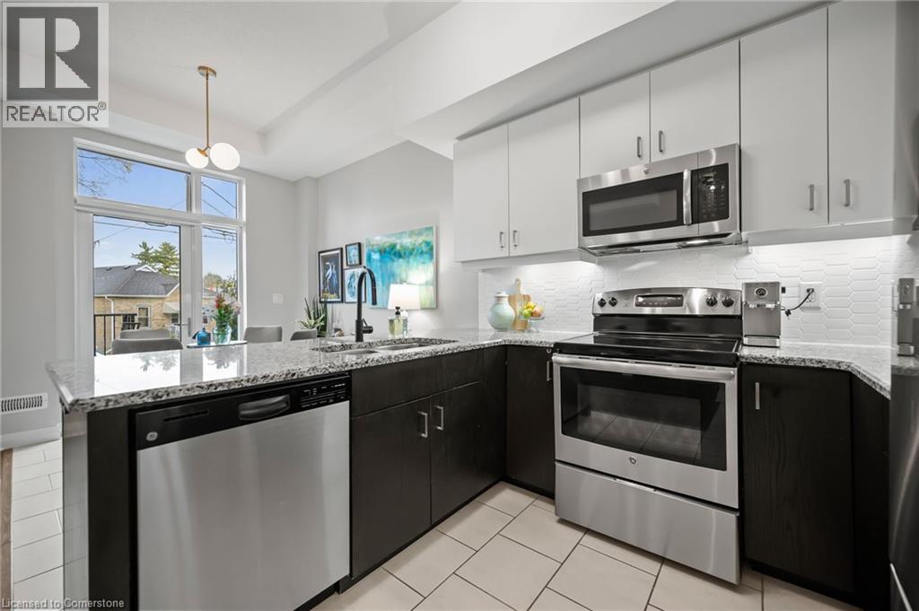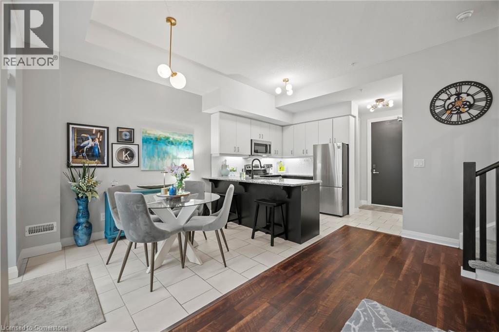 $786.12 MonthlyExperience Sophisticated Urban Living at the Metalworks! Welcome to this architecturally striking townhouse nestled in Guelph’s coveted Metalworks community—rare opportunity to enjoy maintenance-free living that includes your own private garden terrace. The expansive outdoor terrace acts as an extension of the home, perfect for hosting guests or unwinding in your own private oasis. Inside you’ll be greeted by soaring ceilings, fresh neutral colour palette (professionally painted throughout), upscale finishes & open-concept layout that blends contemporary elegance & comfort. Designer kitchen features 2-tone cabinetry, granite countertops, breakfast bar & S/S appliances. The dinning & living room is anchored by stunning natural stone feature wall framed by oversized windows that flood the space W/natural light. Stylish powder room W/quartz counters & W/I hall closet complete the main level. On the 2nd floor you’ll find a generous lounge/entertainment space, bright bedroom W/hardwood floors & modern well-appointed 4pc bathroom. The 3rd level is your private retreat—featuring oversized primary bedroom W/hardwood flooring, large windows & private balcony for peaceful morning coffee with sunrise or evening relaxation. Spa-like ensuite boasts deep soaker tub, glass-enclosed tiled shower, double quartz vanity & direct access to a spacious W/I closet. For added convenience, the full laundry room W/washer & dryer is located on this level. As part of the Metalworks community, you’ll enjoy access to impressive amenities including pet spa, speakeasy lounge, gym, guest suite & chef’s kitchen to name a few—all included in your condo fees as well as utilities including natural gas & water! Enjoy all that the Metalworks lifestyle offers with BBQ terraces, Copper Club library, Springmill Distillery, nearby trails along two rivers & a stones throw from vibrant downtown with boutiques, cafes, Riverrun Centre, Sleeman Centre, Farmers market & GO train making commutes to Toronto a breeze (id:51158)