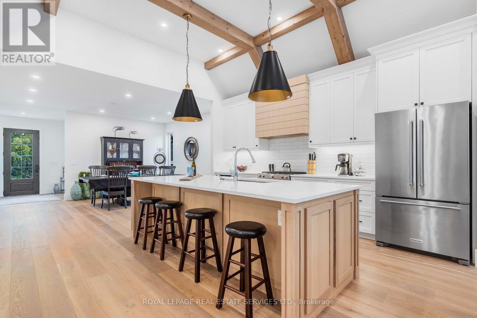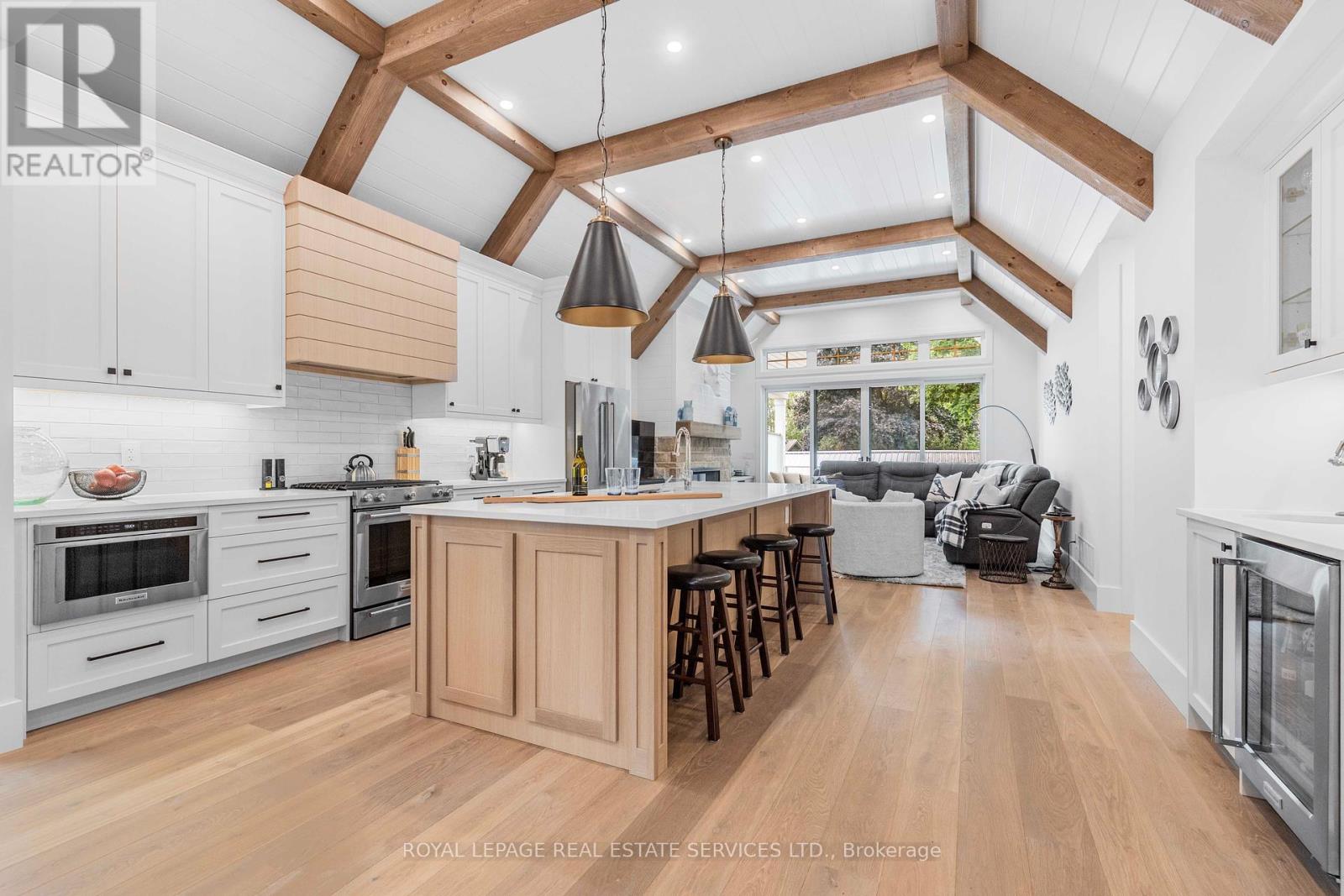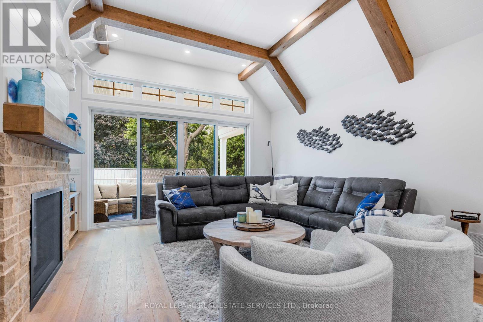 NEW PRICE & STEPS TO SUNSET POINT, GEORGIAN BAY - this custom Vandermeer-designed 5-bedroom home offers over 3,700 sq. ft. of beautifully finished living space, just steps from Georgian Bay and the trails at Sunset Point. Blending timeless craftsmanship with modern comforts, the main floor features soaring 12-ft cathedral ceilings with rustic beams, a chef-inspired kitchen, and a spacious family room with a cozy gas fireplace; perfect for entertaining or quiet evenings in. The main-floor primary suite includes a luxurious 5-piece ensuite, while a versatile upper-level loft with its own fireplace offers the perfect space for a home office or private retreat. The fully finished lower level adds even more functionality with a large rec room, wet bar, gas fireplace, two additional bedrooms, and a full bath; ideal for guests or extended family. Practical touches like a mudroom with garage access add to the home's everyday convenience including potential for in-law suite. Located minutes from Blue Mountain, ski resorts, golf, waterfront parks, and vibrant downtown Collingwood, this property delivers both luxury and lifestyle. A rare opportunity at a compelling price. (id:51158)