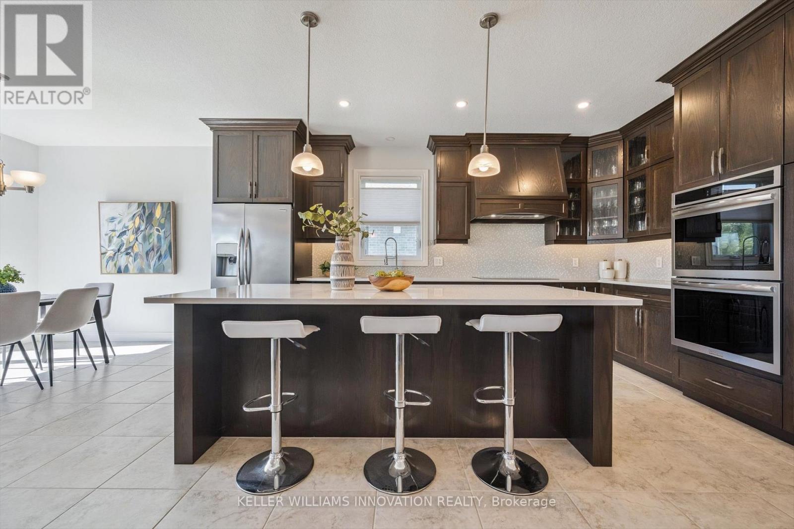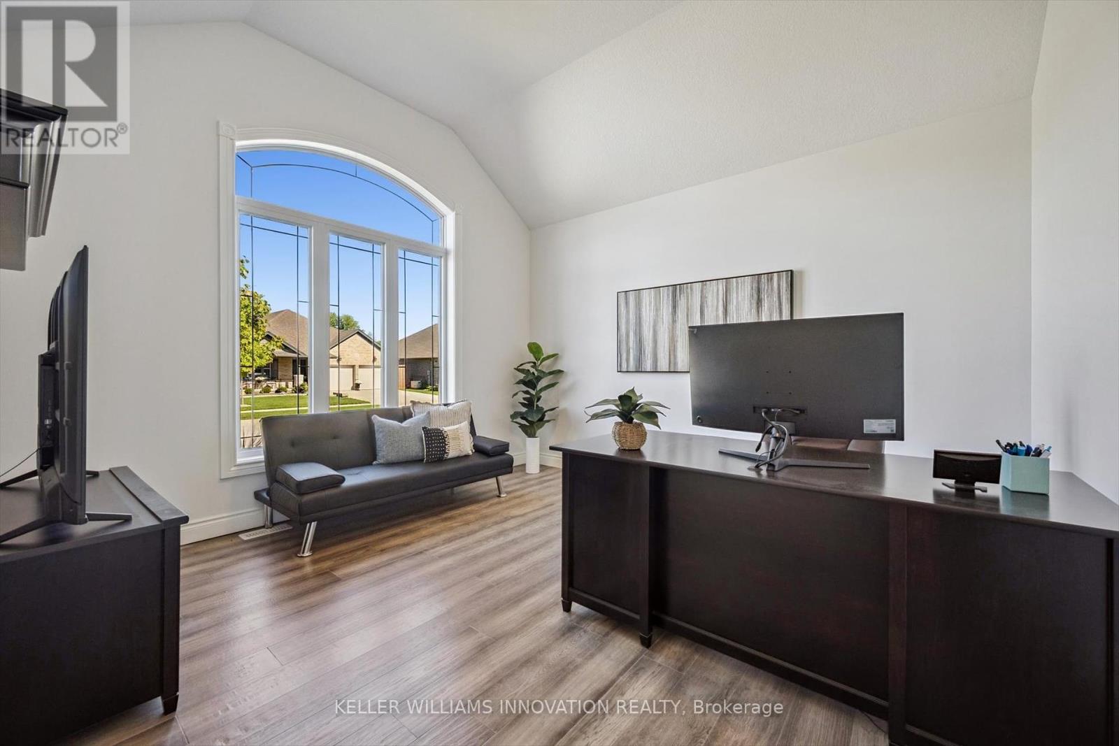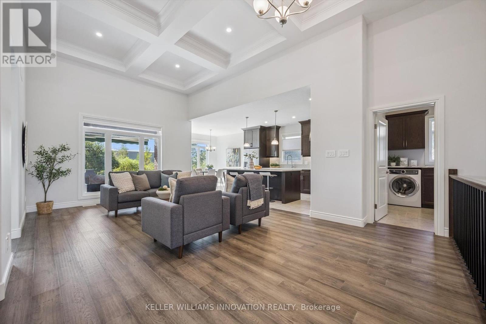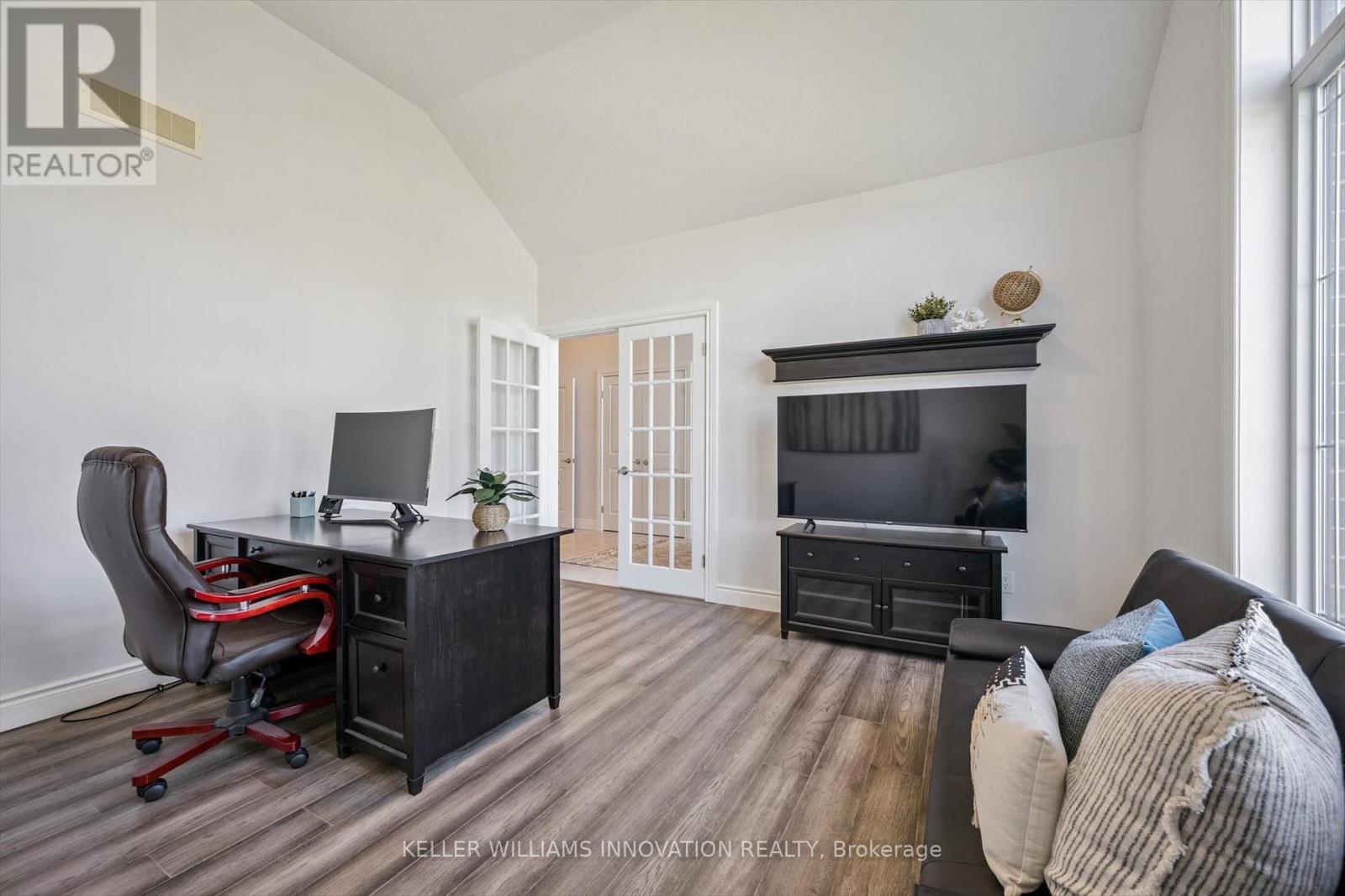 Executive bungalow located in the lovely town of Listowel. With over 1,900 sq ft of living space, this modern home has 3 bedrooms and 4 bathrooms - and is move in ready! Adjacent to the front foyer, double French doors lead into the bright front bedroom with big windows, perfect for a home office space or den. Walk past the 2 piece powder room into the open concept great room area. The large modern kitchen has stainless steel appliances and a large island, perfect for hosting guests while you cook. The dinette area has sliding glass doors and large windows looking out in the backyard. The great room has a coffered ceiling with pot lights and hardwood flooring. The spacious primary bedroom has a walk-in closet and a 5 piece bathroom with double sinks, a glass shower door and a freestanding tub. The additional bedroom found on this floor has its own 3 piece ensuite bathroom with walk-in shower. This floor even has a laundry room, no more dragging your clothes downstairs! The basement with extra large windows, is currently being used as an "at home spa" but the seller is agreeable to return the space to an unfinished basement area, ready to be renovated into a rec room, additional bedrooms or office space. The back covered porch is a perfect spot to watch a rain storm or enjoy the summer shade. The backyard backs out onto a pond, with a fence separating the backyard from the green space behind. Here's your opportunity to live on one of the nicest areas in Listowel, close to shopping, Kinsmen Trail and more! (id:51158)