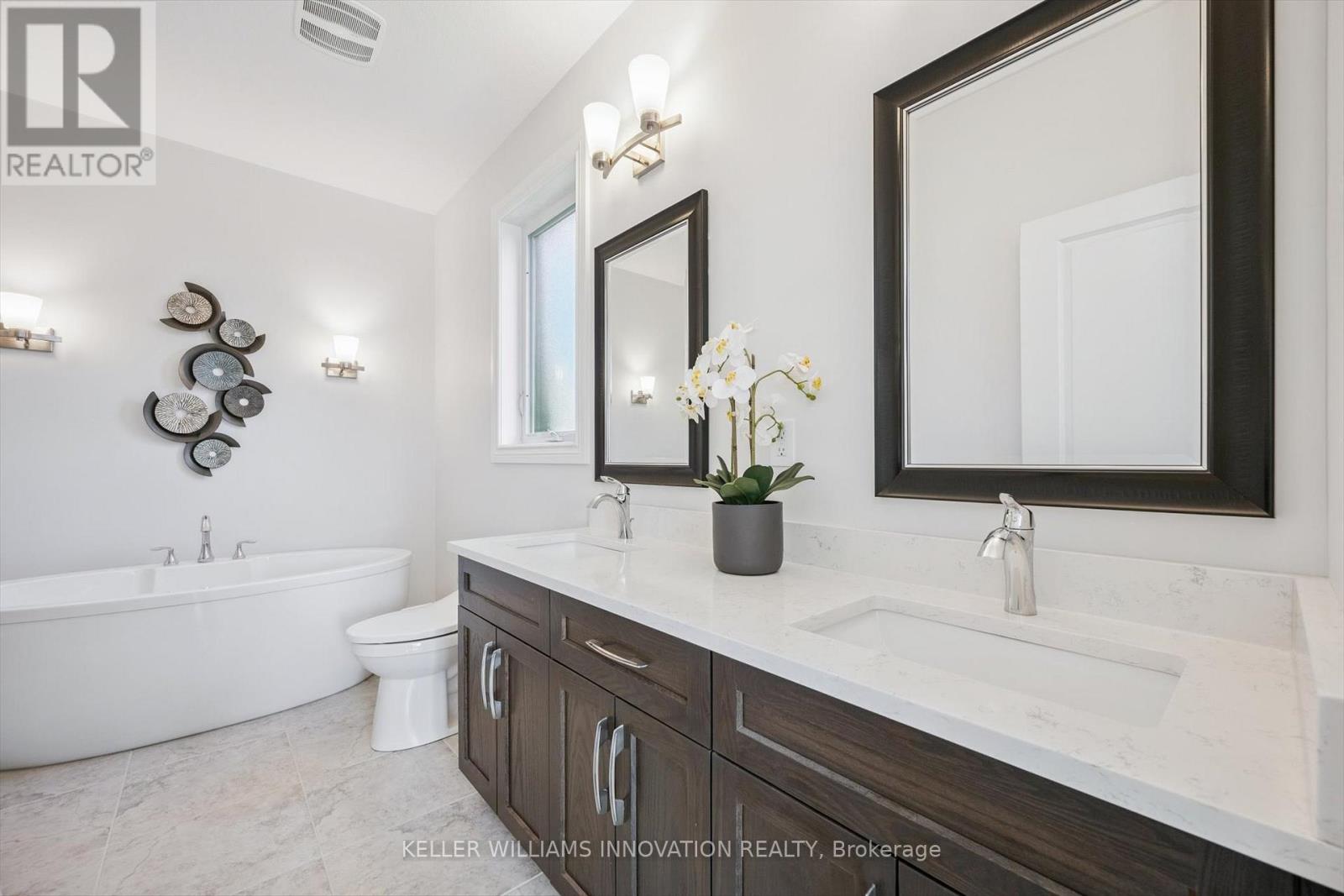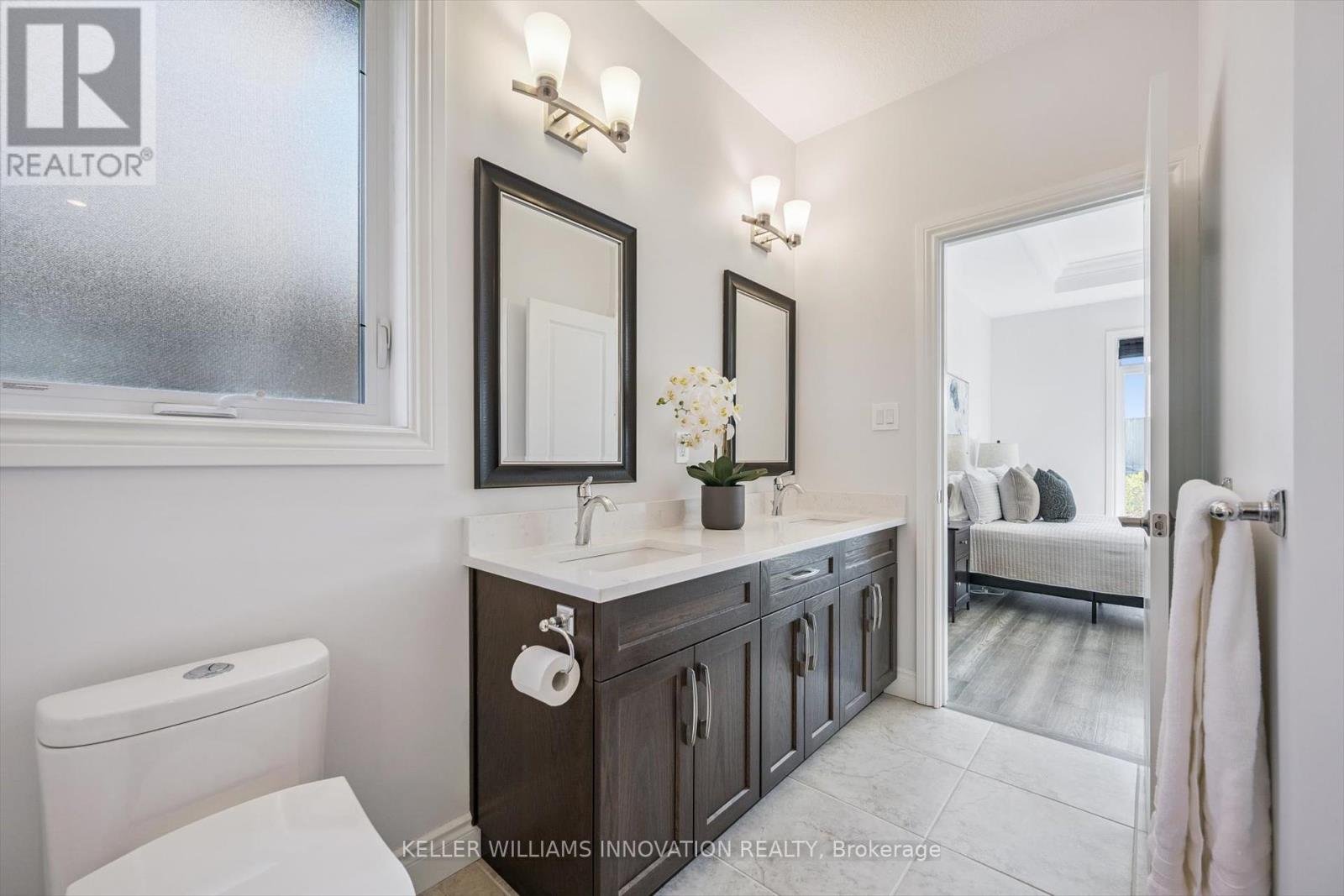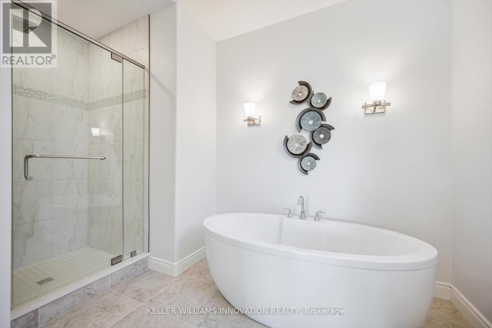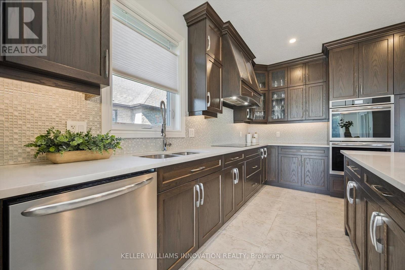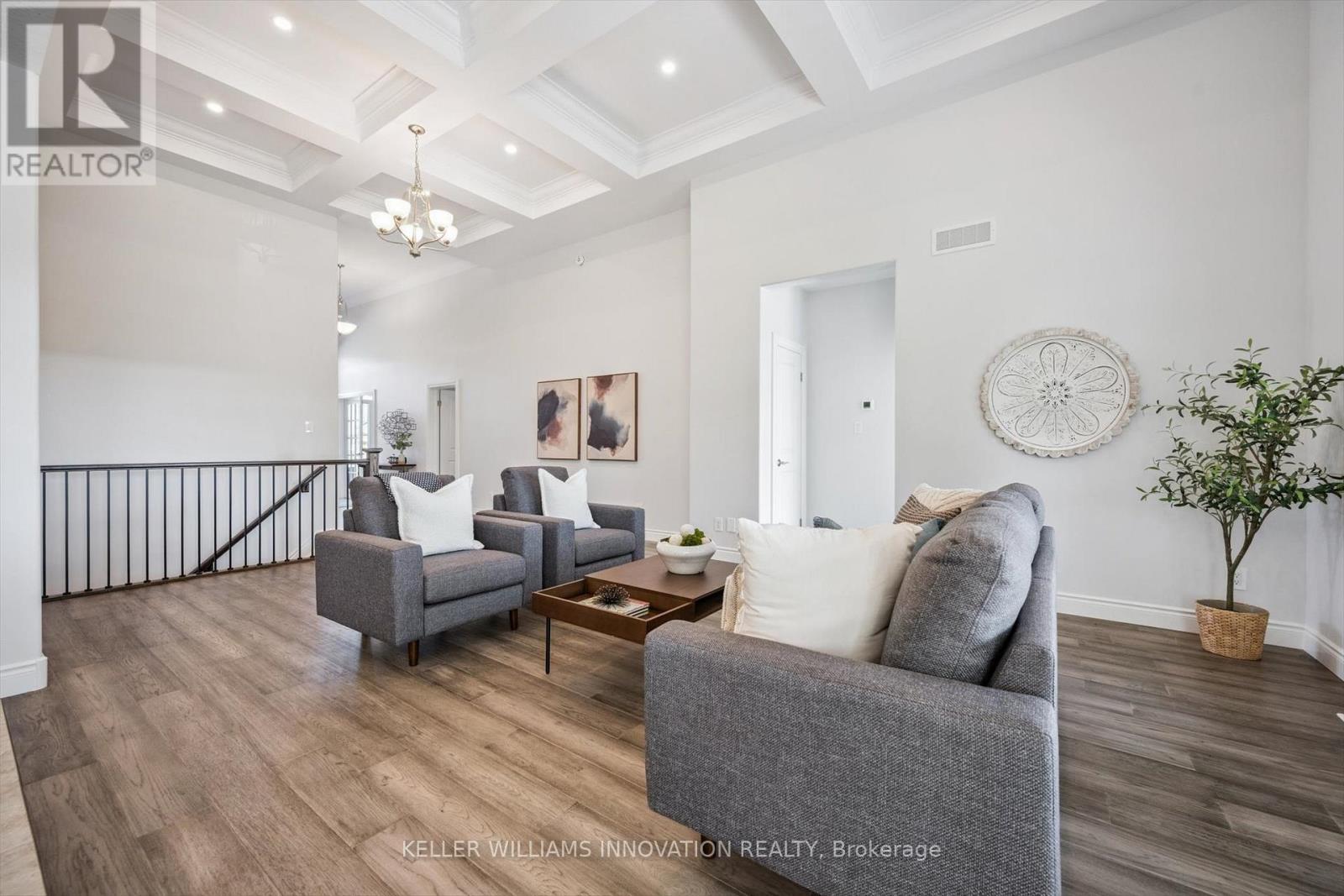 Executive bungalow located in the lovely town of Listowel. With over 1,900 sq ft of living space, this modern home has 3 bedrooms and 4 bathrooms - and is move in ready! Adjacent to the front foyer, double French doors lead into the bright front bedroom with big windows, perfect for a home office space or den. Walk past the 2 piece powder room into the open concept great room area. The large modern kitchen has stainless steel appliances and a large island, perfect for hosting guests while you cook. The dinette area has sliding glass doors and large windows looking out in the backyard. The great room has a coffered ceiling with pot lights and hardwood flooring. The spacious primary bedroom has a walk-in closet and a 5 piece bathroom with double sinks, a glass shower door and a freestanding tub. The additional bedroom found on this floor has its own 3 piece ensuite bathroom with walk-in shower. This floor even has a laundry room, no more dragging your clothes downstairs! The basement with extra large windows, is currently being used as an "at home spa" but the seller is agreeable to return the space to an unfinished basement area, ready to be renovated into a rec room, additional bedrooms or office space. The back covered porch is a perfect spot to watch a rain storm or enjoy the summer shade. The backyard backs out onto a pond, with a fence separating the backyard from the green space behind. Here's your opportunity to live on one of the nicest areas in Listowel, close to shopping, Kinsmen Trail and more! (id:51158)