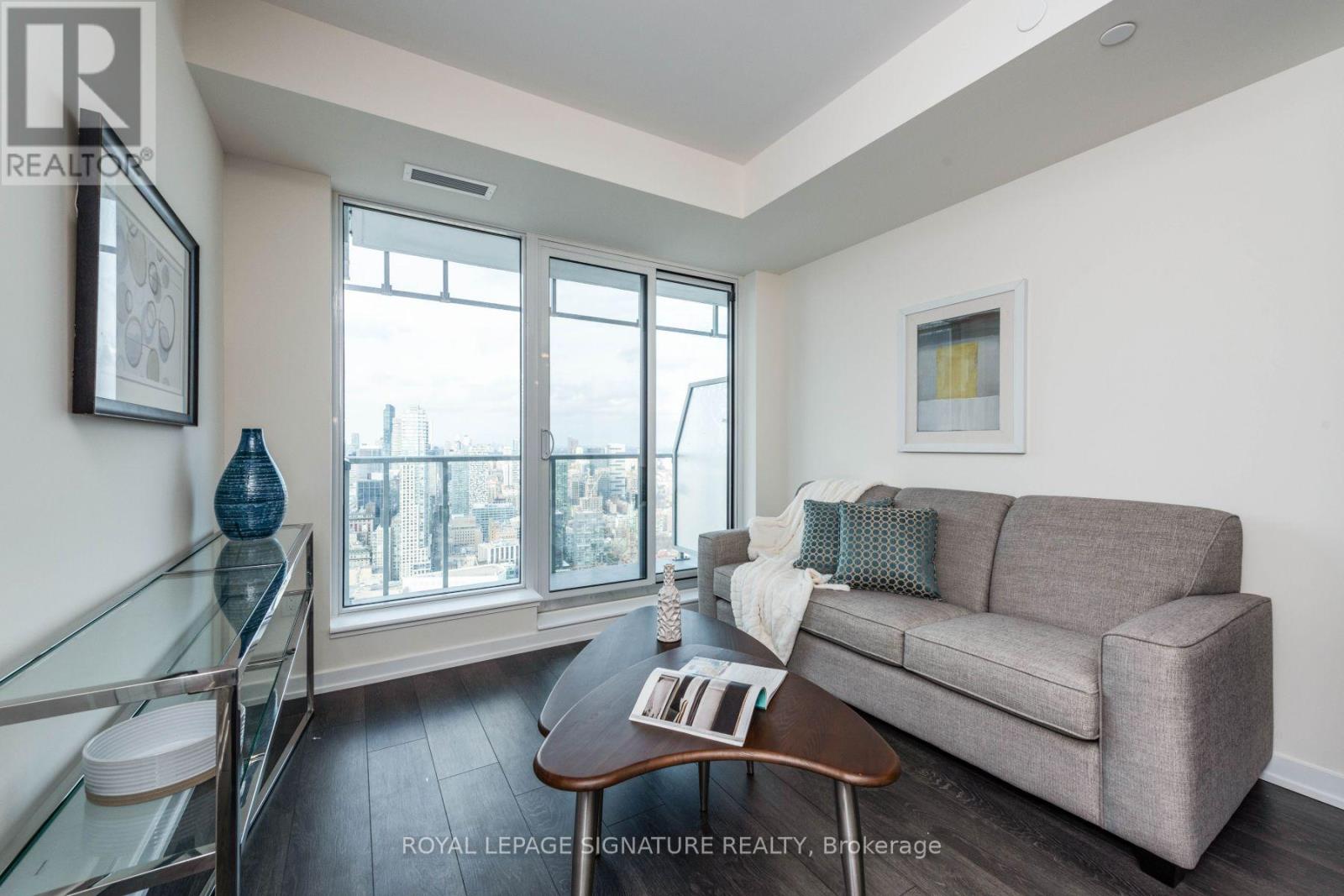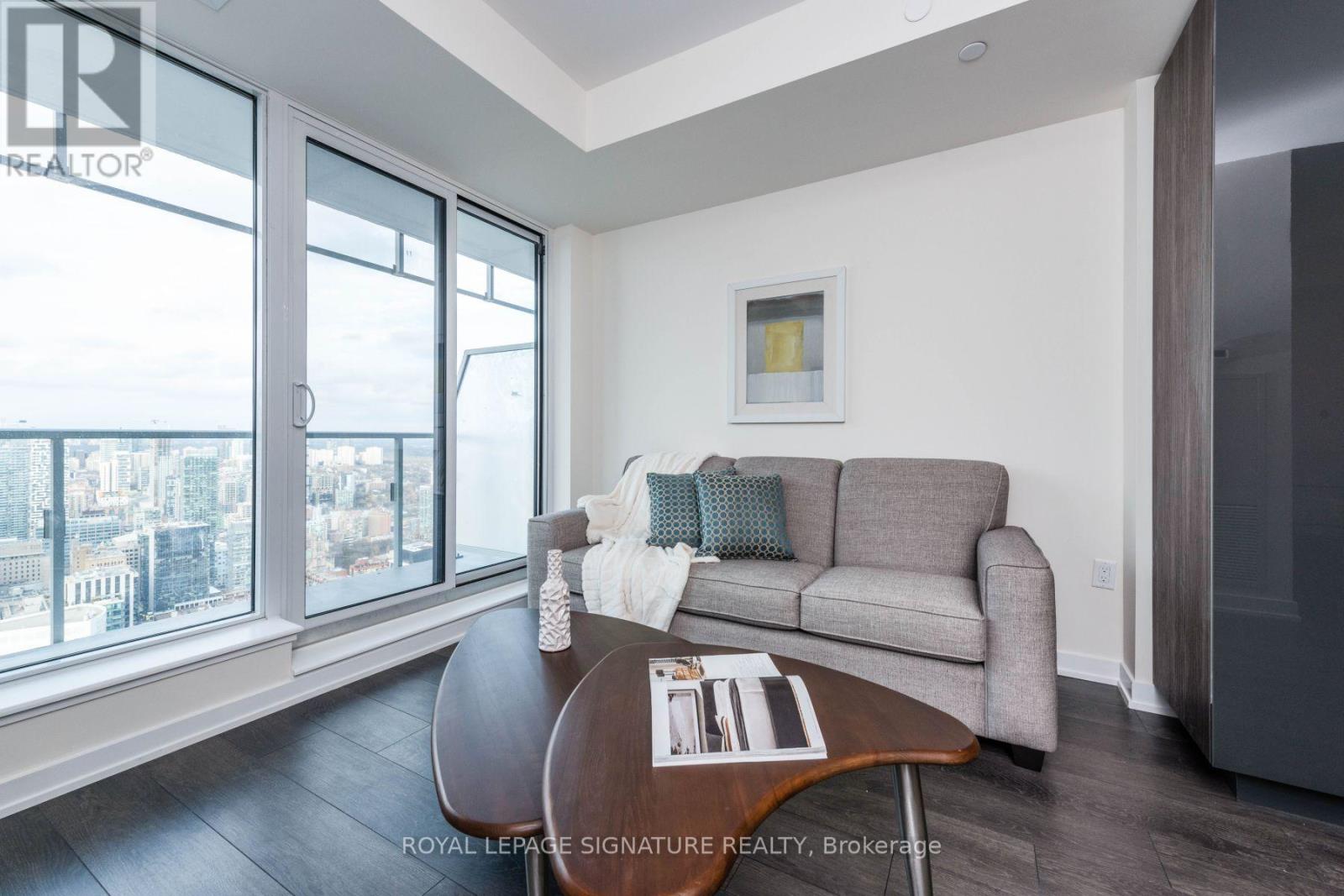 Fully Furnished Beautiful Luxury Condo By Pinnacle One Yonge. Beautiful Skyline with down town views, breathtaking views at night. Steps to lake, beaches, downtown, shopping, transit, grocery. Designed & Staged By Best Interior Designer, Comes With Luxury Modern & Contemporary Finishes And Top Of The Line Furniture, Linens And Decorations. Steps To Harbour Front, U Of T, Lake, Union Station, & Downtown. Den Is Fully Equipped With A queen size Sofa Bed. Den can also be used as office space. (id:51158)