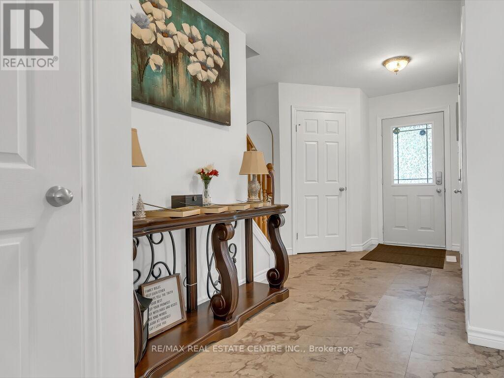 Situated in a desirable neighbourhood, this 2-storey home has everything you've been looking for. Upon arrival, you'll love the double-wide paved driveway. Good Size backyard, and covered front porch bringing you into the home. Bright and cheery home with a Welcoming main floor has an eat-in kitchen, Combined Living/Dining room with Electric Fireplace Concept Tiled Wall and sliding glass doors to private yard with a deck, and a convenient 2 pc bathroom, complete with access to an attached single garage. This home features a master bedroom with vaulted ceilings, walk-in closet and a 4 pc cheater ensuite, with 2 bedrooms completing the second storey. The fully developed basement is the perfect hang out space, with a 3 pc bathroom boasting a gorgeous tiled shower. Located close to the 401, this home is perfect for the commuter! Important Recent Updates: Living Room Window, 2nd & 3rd Bedroom Windows, Furnace & AC 2025, SS Appliances 2025 & Roof 2019. (id:51158)