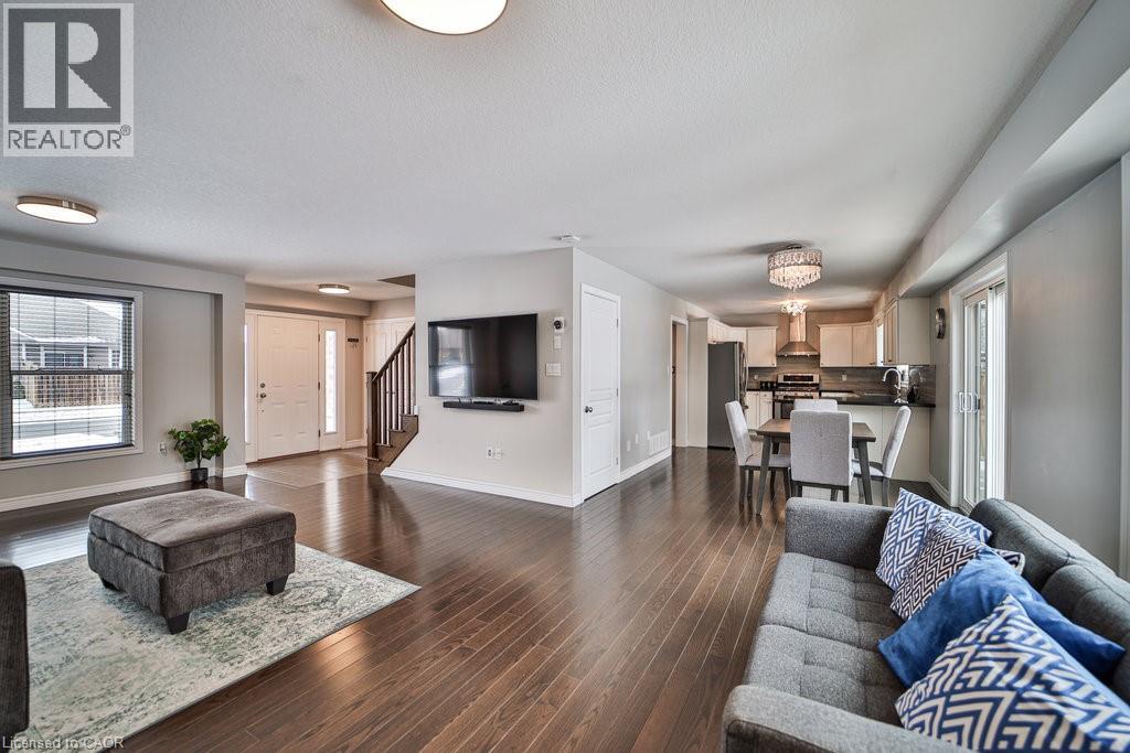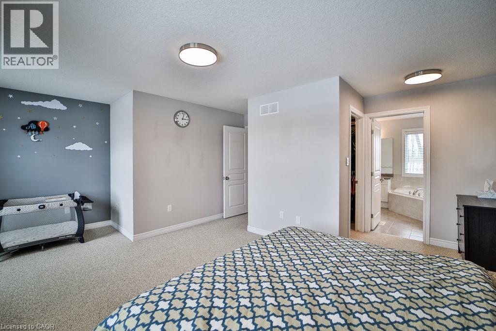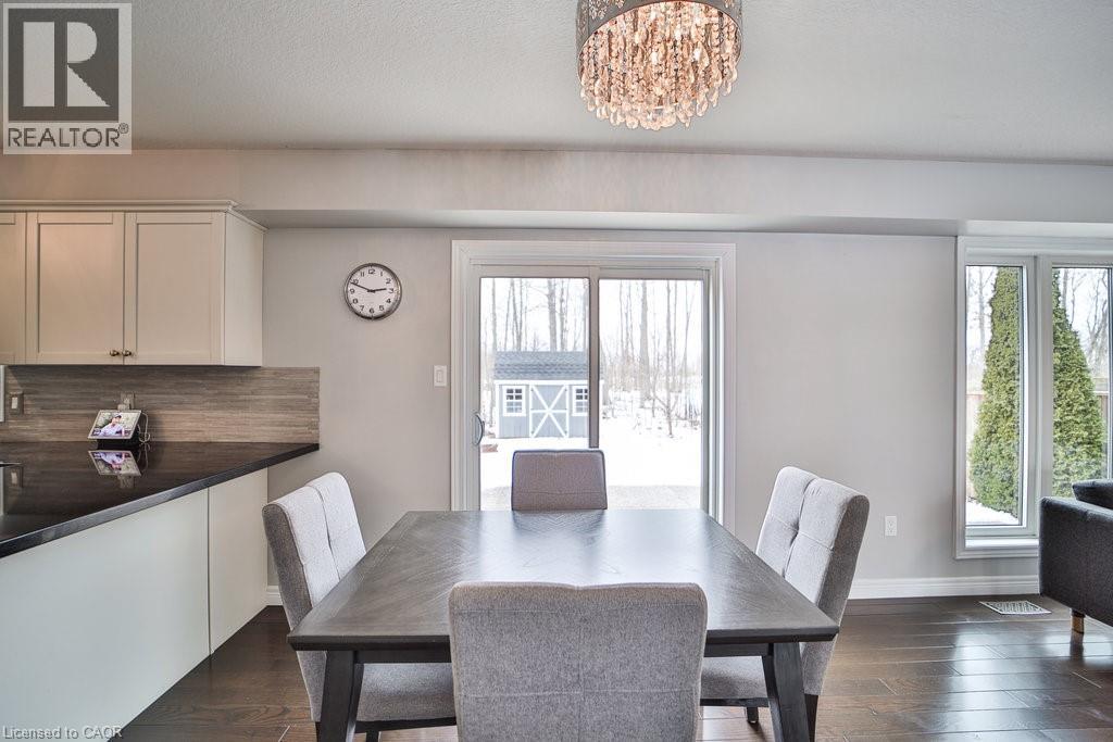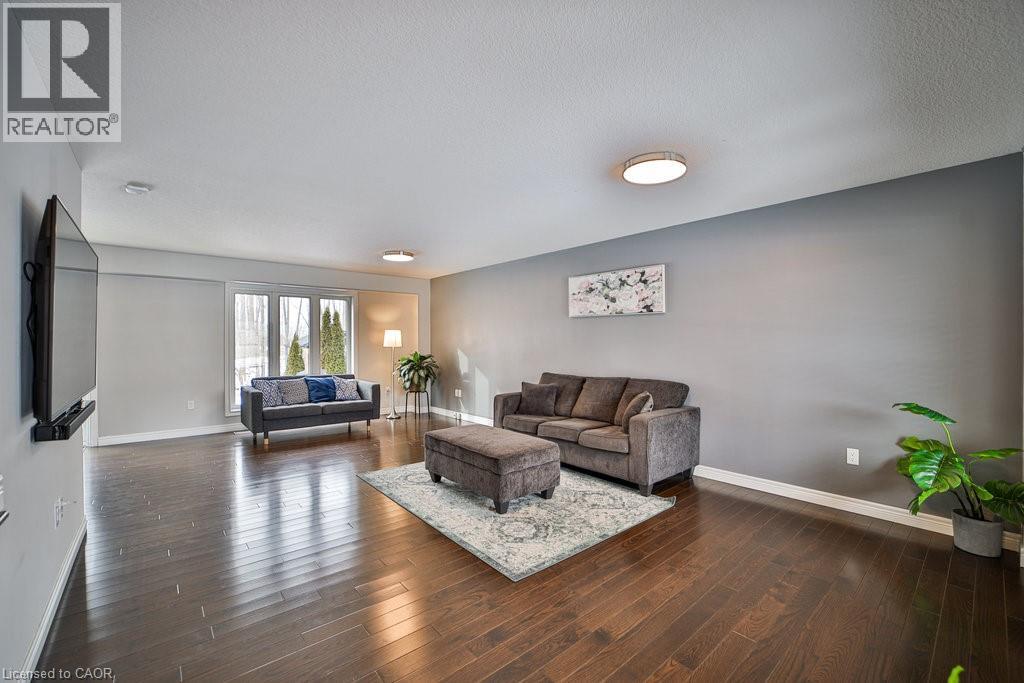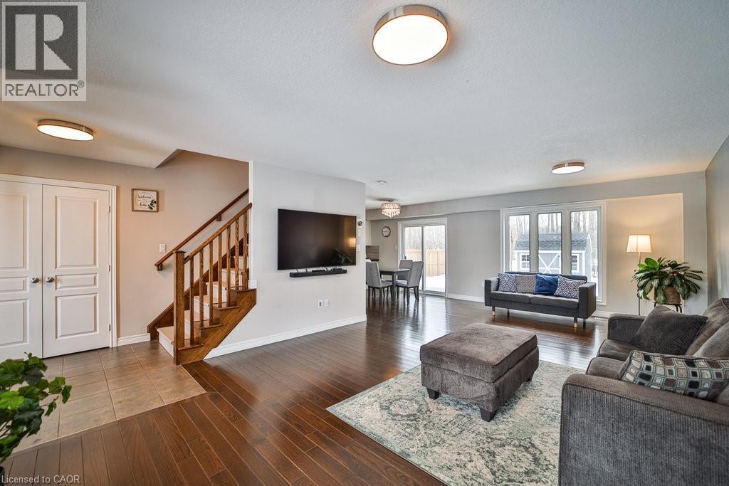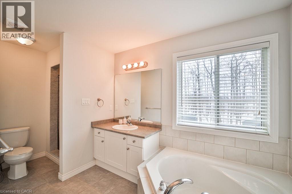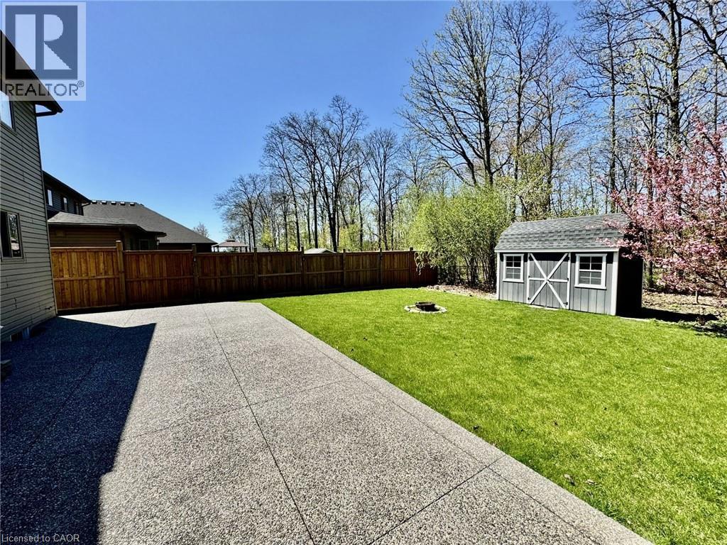 We are pleased to present an exceptional opportunity to acquire a residence in Harvest Heights, located on a premium wooded lot that offers a tranquil setting surrounded by lush greenery. This meticulously enhanced two-story home comprises three bedrooms and two and a half bathrooms within the highly desirable Harvest Heights community. Positioned on a prime tree-lined lot, this property exemplifies both serenity and sophistication. The main floor offers a bright, open-concept layout ideal for hosting. The kitchen features crisp white cabinets, sleek granite counters, a chic backsplash, breakfast bar, and sunlit dining area with patio doors leading to an expansive aggregate deck. From the kitchen sink, a large window frames a tranquil view of nature, a calming, soul soothing sight. The backyard offers rare privacy, surrounded by trees, and is perfect for entertaining or adding a large in ground pool. Living and dining rooms highlight rich 3/4 hardwood, stylish fixtures, and oversized windows that fill the space with light. A functional main floor laundry/mudroom with garage access adds convenience. Upstairs, the primary suite is a tranquil escape with walk-in closet and spa like ensuite offering a soaker tub, glass shower, and dual sinks. Two spacious bedrooms offer comfort for family or guests. The high ceilinged basement with bathroom rough-in awaits your custom vision. Just steps from Hamilton, yet nestled in a quiet, natural setting, this home delivers the best of both city and rural living. Make this model home yours today! (id:51158)