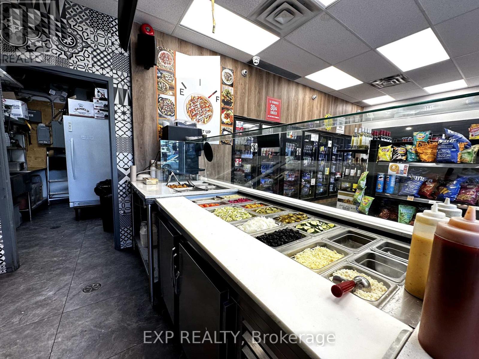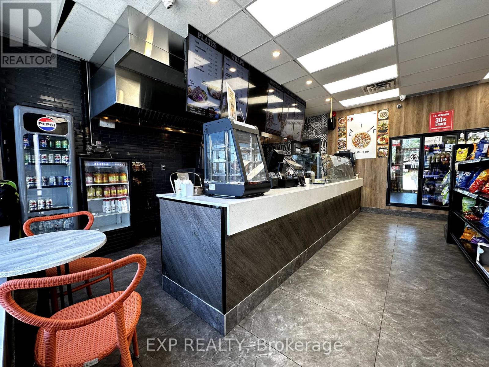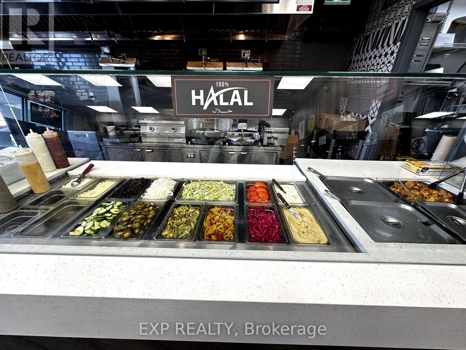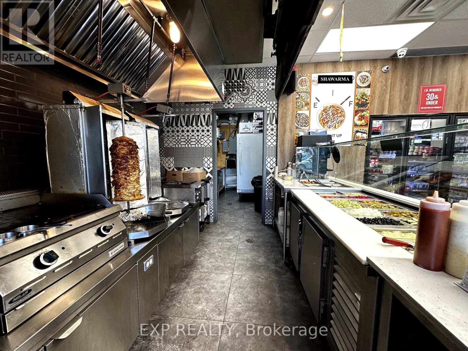 Prime opportunity to acquire a fully operational Franchise Shawarma located within a high-traffic commercial 24H operational Gas-station plaza surrounded by other established eateries and anchored by plenty of daily commuter footfall. This turnkey concept features genuine Middle Eastern-style shawarma, kebabs, wraps, salads, and fresh sauces prepared daily in a compact and efficient layout.With approximately 450 sq. ft. of clear dine-in/takeout space and street-level visibility, the store is ideal for inline traffic, takeout, delivery, and potential catering. Operates with minimal staffing (1-2 employees) and designed for low overhead, making it a robust option for a first-time owner or seasoned entrepreneur seeking a compact yet profitable venture.Steeles Avenue boasts excellent transit access via TTC routes (53/60 Steeles), YRT service, and proximity to PioneerVillage and York Region communities. The area benefits from a diverse customer base including local residents, shoppers, and commuters, especially during peak lunch hours.Current rent is exceptionally affordable at $2,500/month (TMI included). The space includes kitchen fixtures, equipments, prep counters and POS setup ready for immediate transition with minimal downtime. Seller is open to financing or transition support.This is a rare chance to take over a proven quick-service food business in a high-traffic arterial corridor with excellent ROI potential. (id:51158)