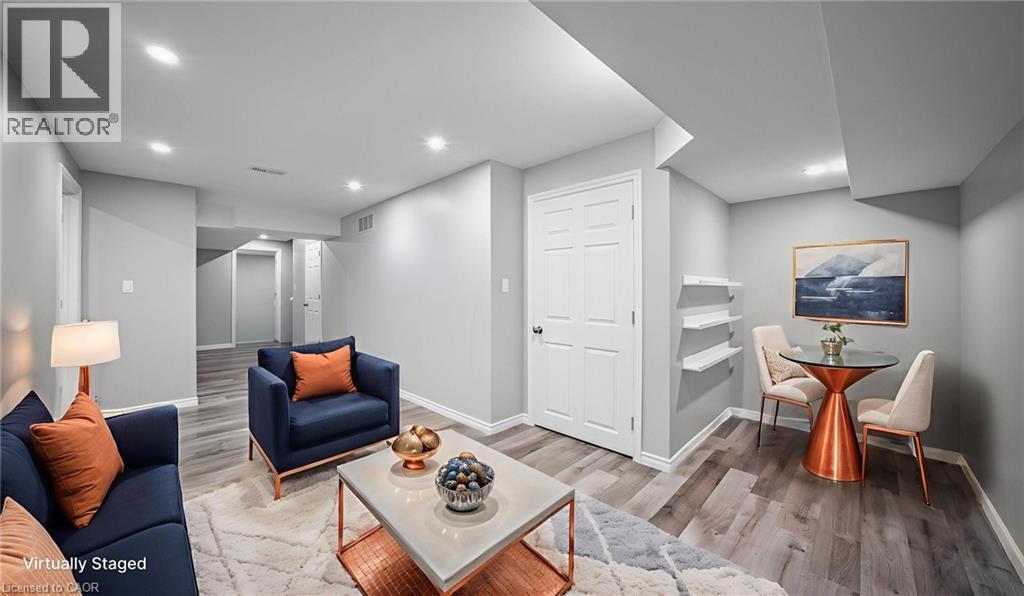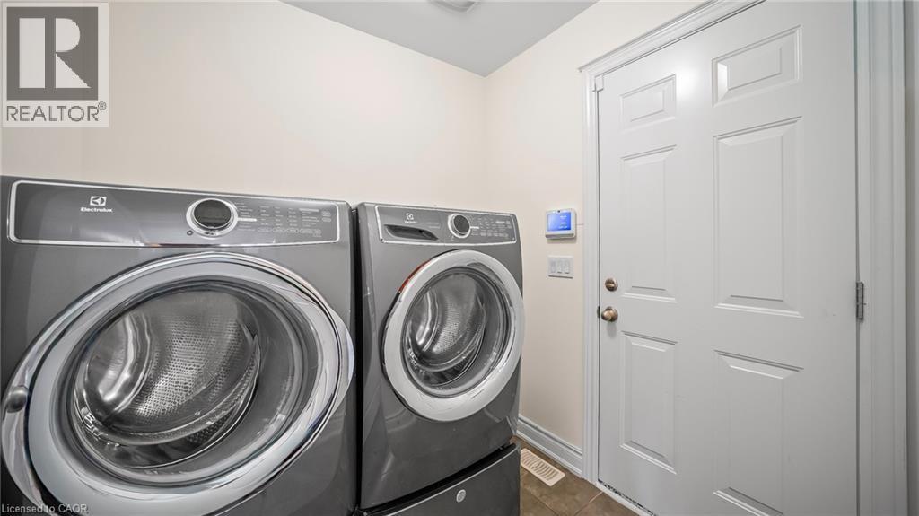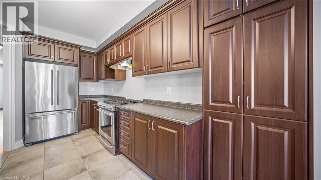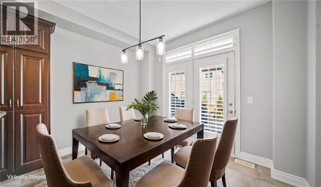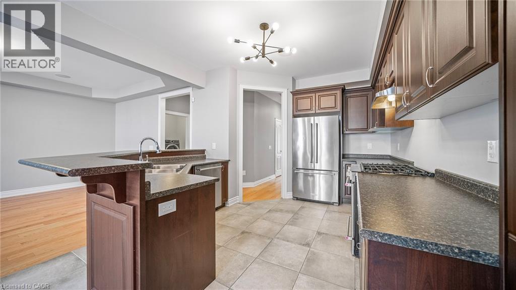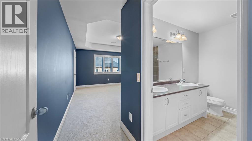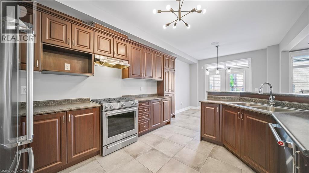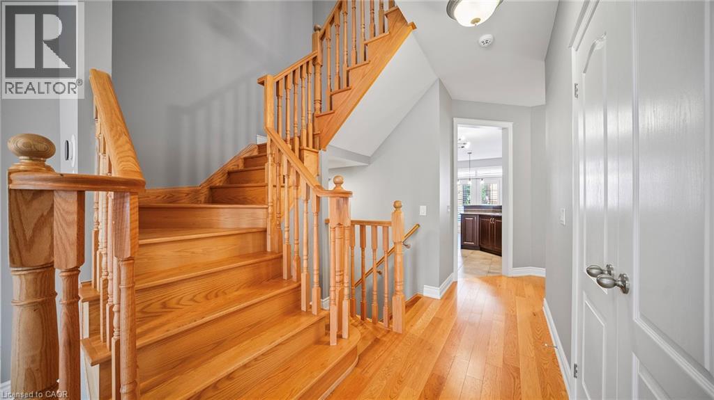 Sophisticated 4+1 bedroom, 3.5 bath freehold townhome by Rosehaven Homes, nestled in a prestigious North Oakville pocket. Tailored for todays lifestyle, the main floor showcases soaring 9-foot ceilings, wide-plank engineered hardwood, and an airy living space. The welcoming family room offers a coffered ceiling and a warm gas fireplace perfect for relaxing evenings. A well-planned laundry area provides inside entry to the garage for everyday convenience. The chefs kitchen is equipped with a pantry, raised breakfast bar, and stainless steel appliances, seamlessly connecting to the dining area with French door access to the deck ideal for enjoying a quiet morning coffee. Upstairs, the primary retreat impresses with a 9-foot coffered ceiling, walk-in closet, and a spa-like five-piece ensuite featuring double vanities and a deep soaker tub. Three additional bedrooms share a bright four-piece main bath. The professionally finished lower level adds valuable living space, complete with a recreation room, gym, laminate flooring, and a fifth bedroom with ensuite privilege to a sleek three-piece bathroom. Ample storage keeps everything neatly organized. Enhanced by thoughtful upgrades, the home boasts oversized windows, California shutters, upgraded trim and doors, in-ceiling speakers, oak staircases, exterior coach lights, and an rough-in for an EV charging unit. Located in a vibrant, family-oriented community, your are steps from Kings Christian Collegiate and minutes from Sixteen Mile Sports Complex, trails, parks, excellent schools, shopping, dining, the hospital, and key commuter routes. This home delivers both elegance and practicality in one remarkable package.**Virtually staged pictures** (id:51158)