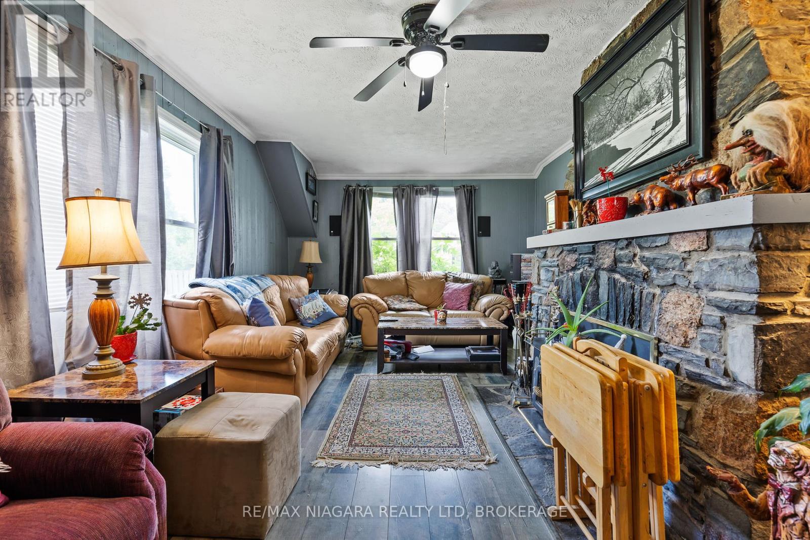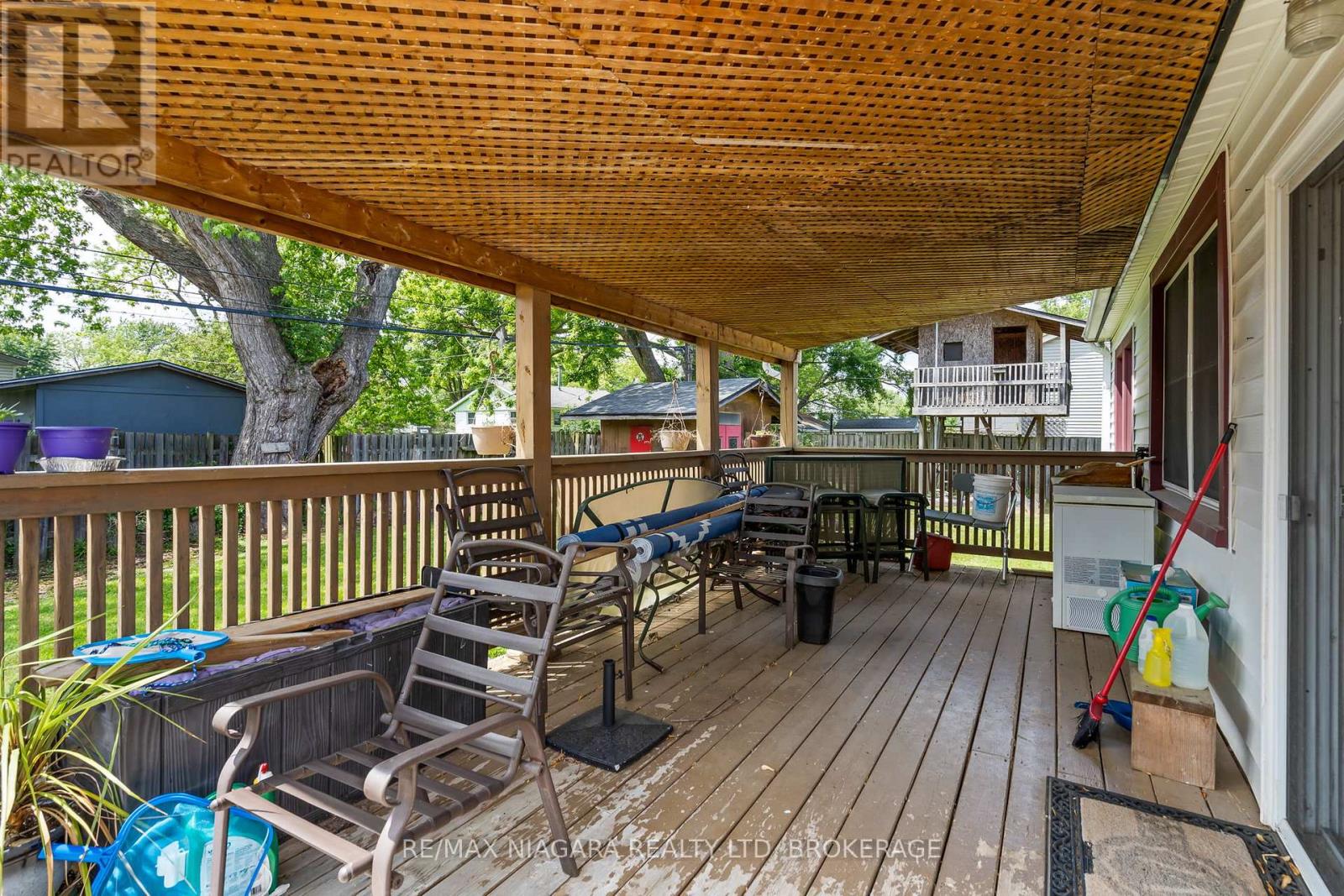 More Than Meets the Eye in Crescent Park. Set on an extra-wide lot in one of Fort Erie's most established and family-friendly neighbourhoods, this deceptively spacious bungalow offers flexible living and thoughtful design inside and out. With up to 5 potential bedrooms, this home easily adapts to changing family needs. The front room makes an ideal office, den, or guest space, while the finished attic loft is perfect as a bedroom with an added sitting area or playroom. The main level is bright and functional with a spacious dining room ready to host holiday gatherings, a two-sided fireplace connecting the living and dining spaces, and a kitchen with ample cabinetry and prep space. The primary bedroom, located just off the living room, is generously sized for a king bed and offers a quiet retreat surrounded by natural light. Two additional bedrooms and two full bathrooms complete the main floor layout. Step outside to a private backyard featuring interlocking brick, a covered deck, relaxing hot tub, two storage sheds, and enough space to park an RV, boat, or plan for a future garage. A newly installed boiler adds efficiency and comfort to this already well-rounded property. Ideally located near schools, parks, and the beach, this is a home with the space, flexibility, and location to grow with you. (id:51158)