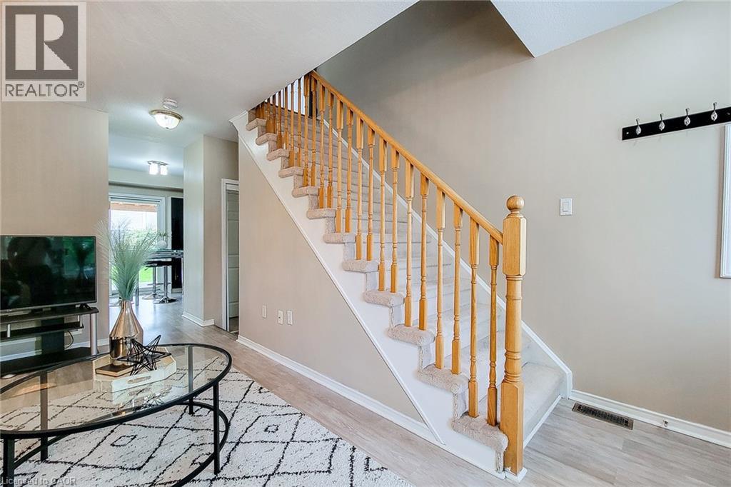WELCOME to this Charming 3-bedroom, 1.5-bath home nestled in the heart of beautiful Binbrook. Situated on a 30x86 ft lot, this well-maintained property has a thoughtful layout perfect for families or first-time buyers. The main floor features stylish light colored vinyl flooring throughout, a bright and airy living room, and a cozy family room—ideal for both relaxing and entertaining. The kitchen is a standout with stainless steel appliances, great lighting, and ample workspace. Upstairs, you’ll find three spacious bedrooms with plush carpet, a full bathroom, and generous closet space. The finished basement adds functionality with a convenient powder room and laundry setup. Outdoors, the concrete driveway fits up to three cars and extends along the side of the house into the backyard. A true haven for outdoor lovers, the backyard includes a covered gym area under a durable metal patio roof, allowing for workouts even in the rain. Fairgrounds community park, Binbrook conservation area, Serdox skatepark and Summerlea West park makes this neighborhood so desirable. St. Matthew Catholic elementary school, Bellmore elementary and the upcoming Catholic Secondary School adds convenience for families with kids. This is a home that combines comfort, style, and practicality in one of Binbrook’s most desirable neighborhoods. Brand new FRIDGE AND WASHER 2025. (id:51158)