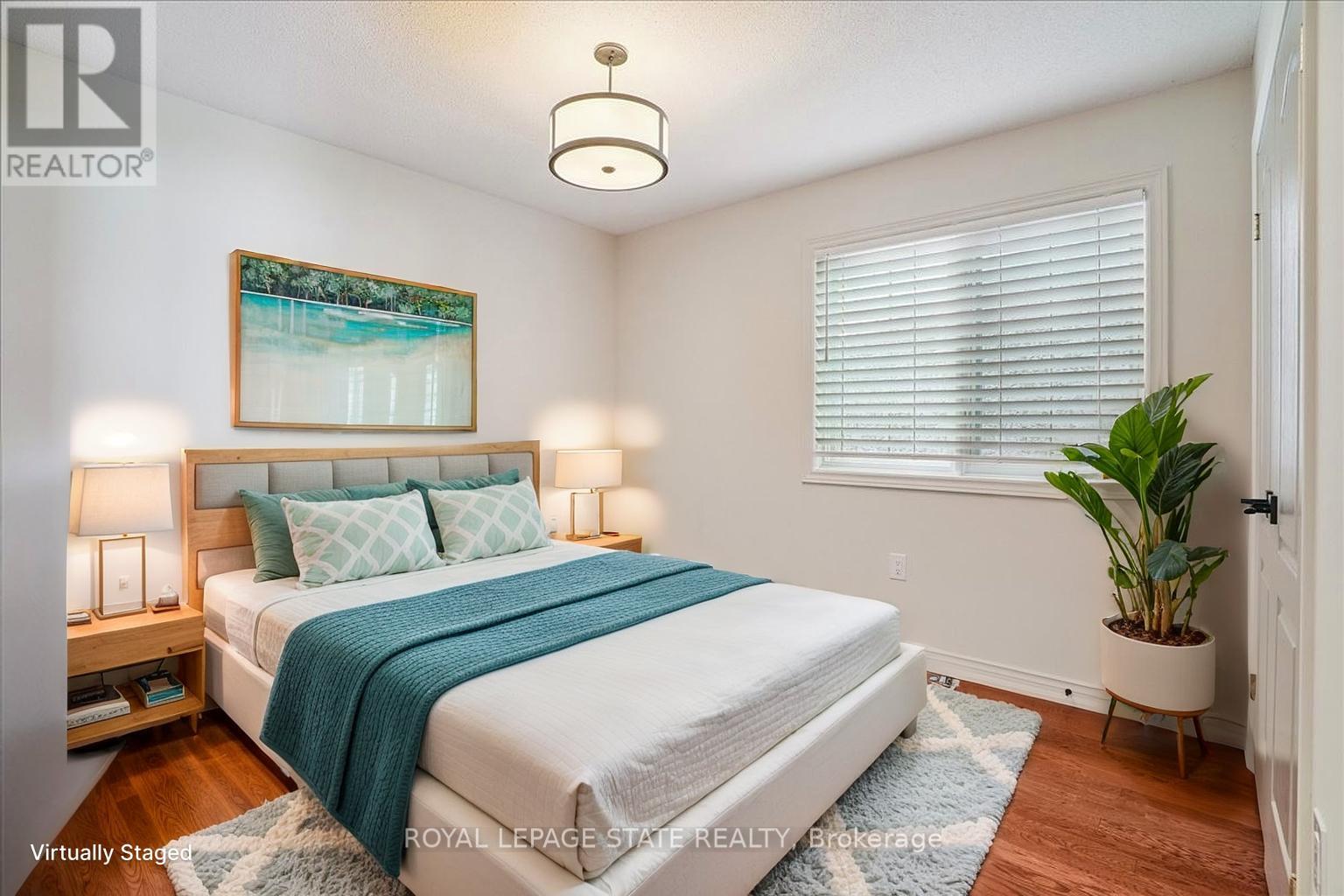 Experience unparalleled lakefront living with this exceptional property, offering breathtaking vistas from nearly every room. Perfectly positioned within the prestigious Newport Yacht Club community, this home provides the rare convenience of mooring a boat just steps from your front door, along with effortless QEW access for commuting. This "linked" townhome lives like a detached home, sharing no common walls and boasting parking for six vehicles, including a full double garage. The open-concept main level is a showcase of style and comfort, featuring an updated kitchen with new quartz counters, crown molding, gleaming hardwood floors, a gas fireplace, and a separate dining room. Step through sliding doors to an oversized patio that stretches across a meticulously landscaped 100-foot yard, leading to a private waterfront patio where you can watch the sun rise or set over Lake Ontario. Upstairs, you'll find three generous bedrooms plus a home office, bedroom-level laundry, second gas fireplace in primary suite and two fully updated bathrooms. The primary suite opens onto a balcony where the panoramic lake and Toronto skyline views are simply unforgettable. Notable updates include new counters, sinks, faucets, roof, furnace, AC, light fixtures, and window treatments. A finished lower level with a walk-up to the yard adds even more living space. Rarely available, this is a truly special opportunity to secure a piece of Lake Ontario's waterfront-an address where every day feels like a getaway. (id:51158)