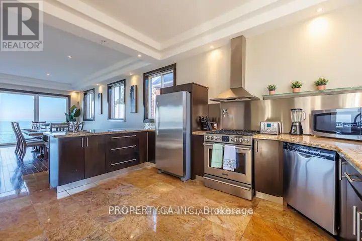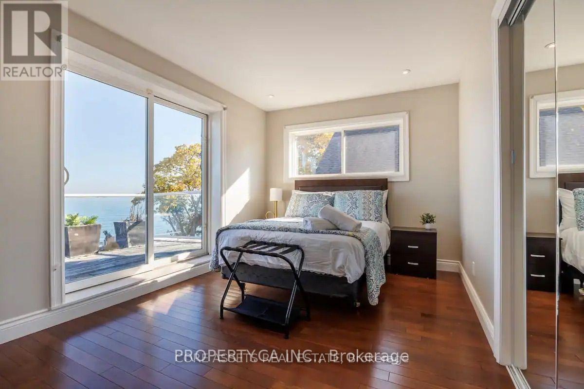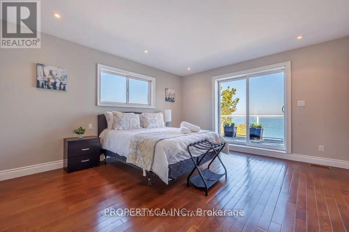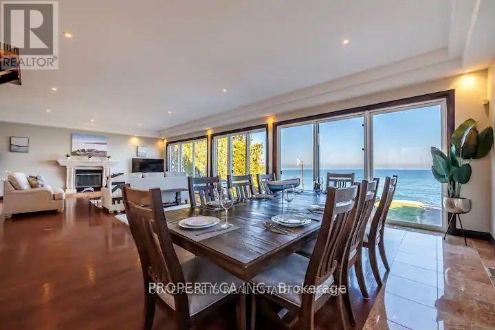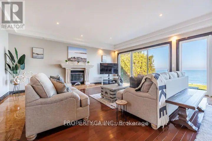 Gorgeous Lakefront Residence! This magnificent home showcases an inviting layout that backs onto Lake Ontario. The sprawling main floor presents awe-inspiring views of the lake from every angle. With soaring ten-foot ceilings, gleaming hardwood floors, a charming wood-burning fireplace, and numerous walkouts to the waterside patio, it's an entertainer's dream. Upstairs, three generously sized bedrooms await, two of which boast access to a balcony for enjoying the picturesque lakefront scenery. The master suite is a lavish sanctuary complete with a deluxe 5-piece spa-style bathroom. Recently renovated, the basement now offers an additional 3-piece bathroom, living area, and two extra bedrooms. Situated conveniently close to the highway, it provides effortless commuting to Hamilton or Toronto. (id:51158)