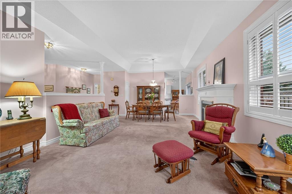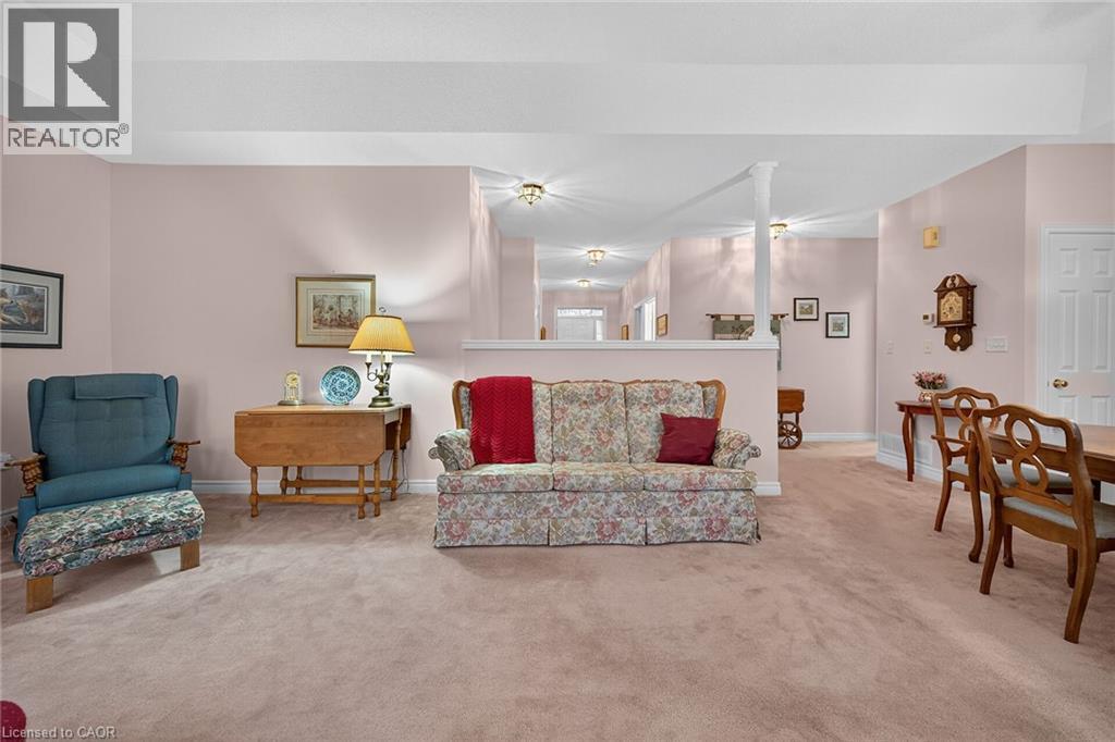 $703 MonthlyWELCOME TO TWENTY PLACE! One of Southern Ontario’s most sought-after adult-lifestyle communities. Enjoy low maintenance living in this friendly, active community! This spacious end unit bungalow features a double garage with a window, and a large, unfinished, unspoiled basement which awaits your finishing. There are 9 foot ceilings throughout the main floor, with the living room and dining room featuring a 10 foot coffered ceiling and a lovely gas fireplace. You’ll love the large, bright, eat-in kitchen, custom designed to provide great access to the laundry room. There is a 3 year new patio door in the kitchen leading to the private backyard, a side window offering lots of natural light, and ample cupboards including a pantry. The laundry room has inside entry from the double garage. Both bedrooms are a good size, with the primary featuring a lovely bay window, good closet space and a 4 piece ensuite bathroom with soaker tub and separate shower. Another 4 piece bathroom is conveniently located close to the second bedroom. All main floor windows were replaced about 2 years ago and the furnace and air conditioning unit are approximately 3 years old. You’re just steps away to the spectacular residents’ clubhouse which has indoor pool, sauna, whirlpool, fully equipped gym, large party room, games and craft rooms, tennis/pickle ball court, putting green, shuffleboard and more! This is turn-key living at its best! (id:51158)