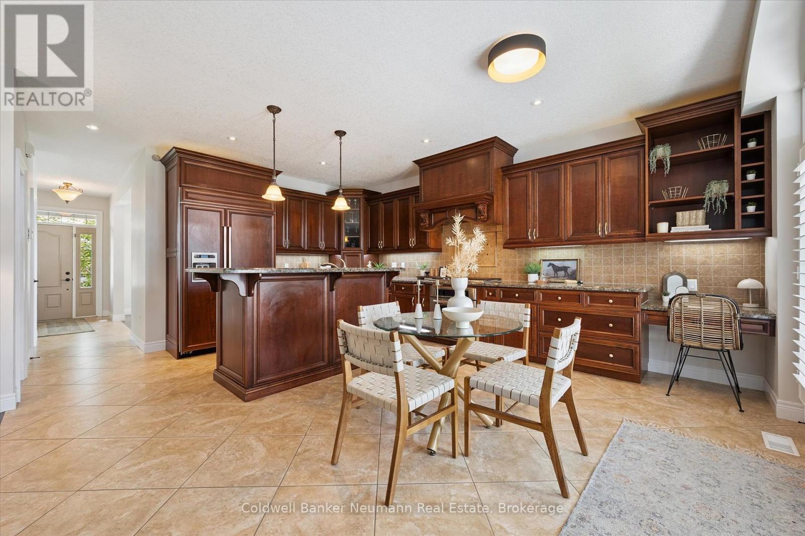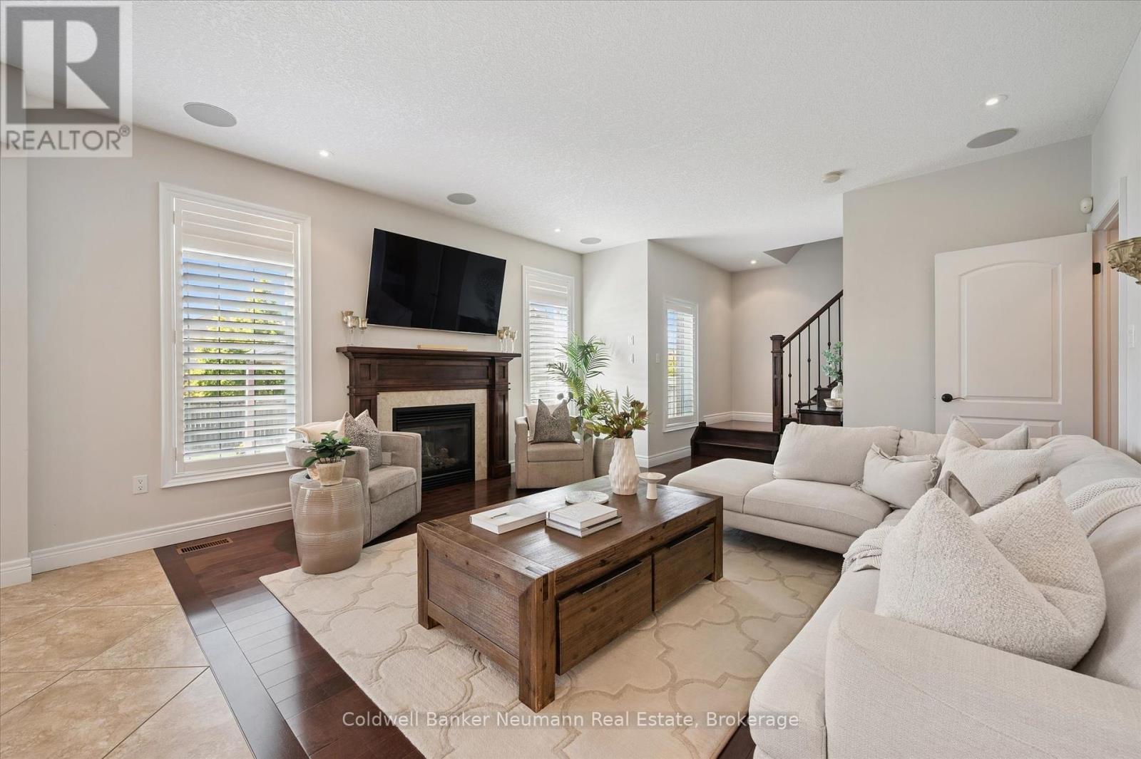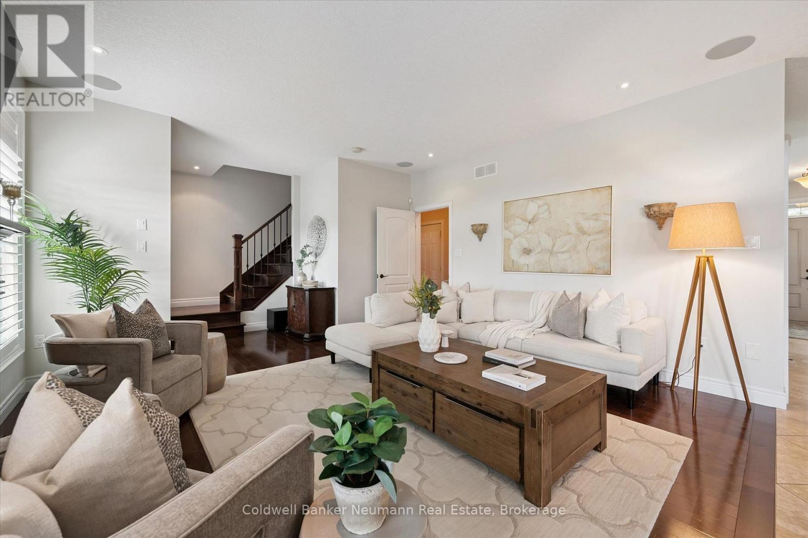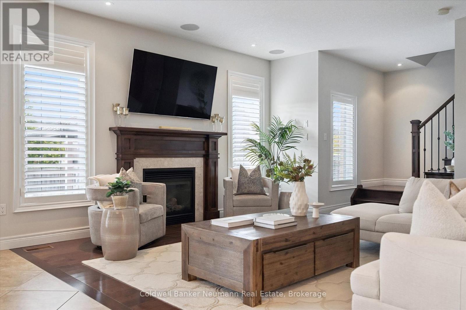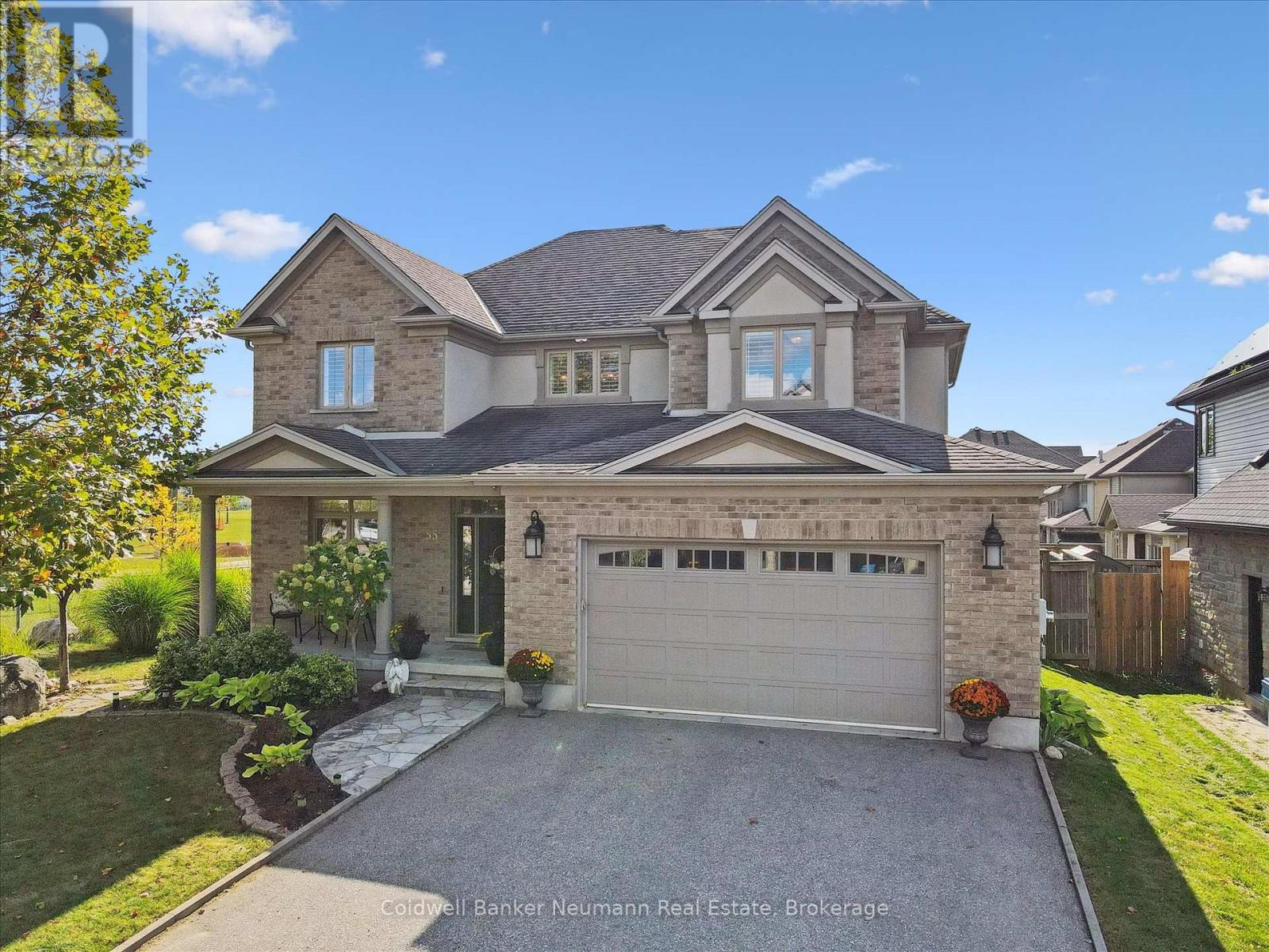 Welcome to 55 Zaduk Place, a beautifully appointed home in Guelph's desirable Kortright East neighbourhood, offering custom finishes, thoughtful upgrades, and exceptional family living. The main floor is bright and inviting, with soaring 9-foot ceilings and abundant natural light. A spacious formal dining room sets the stage for hosting family and friends, while the open-concept kitchen and living areas provide the perfect balance of style and function. The custom Barzotti kitchen features premium cabinetry, panelled appliances, Kohler faucets, custom millwork, and extensive storage. A large island with seating and additional cabinetry completes the space. The living room is cozy yet refined, w/ a gas fireplace and flush-mount speakers. Upstairs, you'll find four generously sized bedrooms, including a well-appointed primary suite with a private 4-piece ensuite. The additional 3 bedrooms are equally spacious and are complemented by an impressive 5-piece main bath with double sinks and a soaker tub. The fully finished basement is a true highlight of the home. With a magazine-worthy aesthetic that balances contemporary design with warmth, it features an expansive rec room anchored by a striking gas fireplace set against a bold black backdrop with custom built-ins and an integrated entertainment system. A designer-inspired bathroom and fully equipped laundry room complete the lower level. Outdoors, enjoy a private retreat with a new above-ground pool (2025), a pergola (2023), flagstone patio, covered deck with gas line and built-in speakers, a shed, and even a flourishing plum tree. Perfectly situated beside a park with tennis and pickleball courts, play areas, and the highly sought-after French school Arbor Vista, this home offers the ideal combination of lifestyle, location, and luxury in one of Guelphs most coveted communities. (id:51158)
