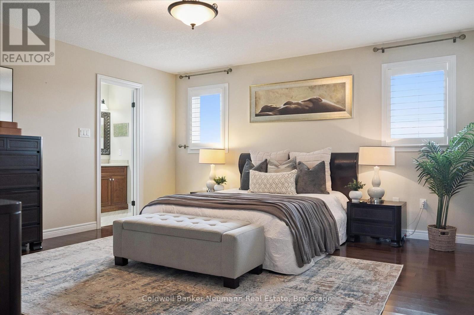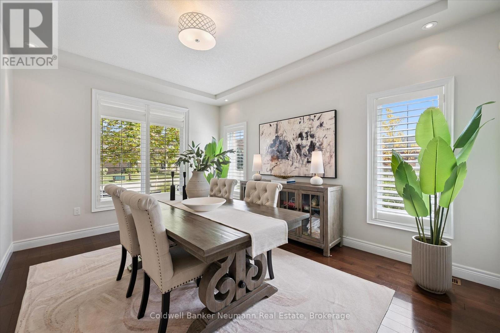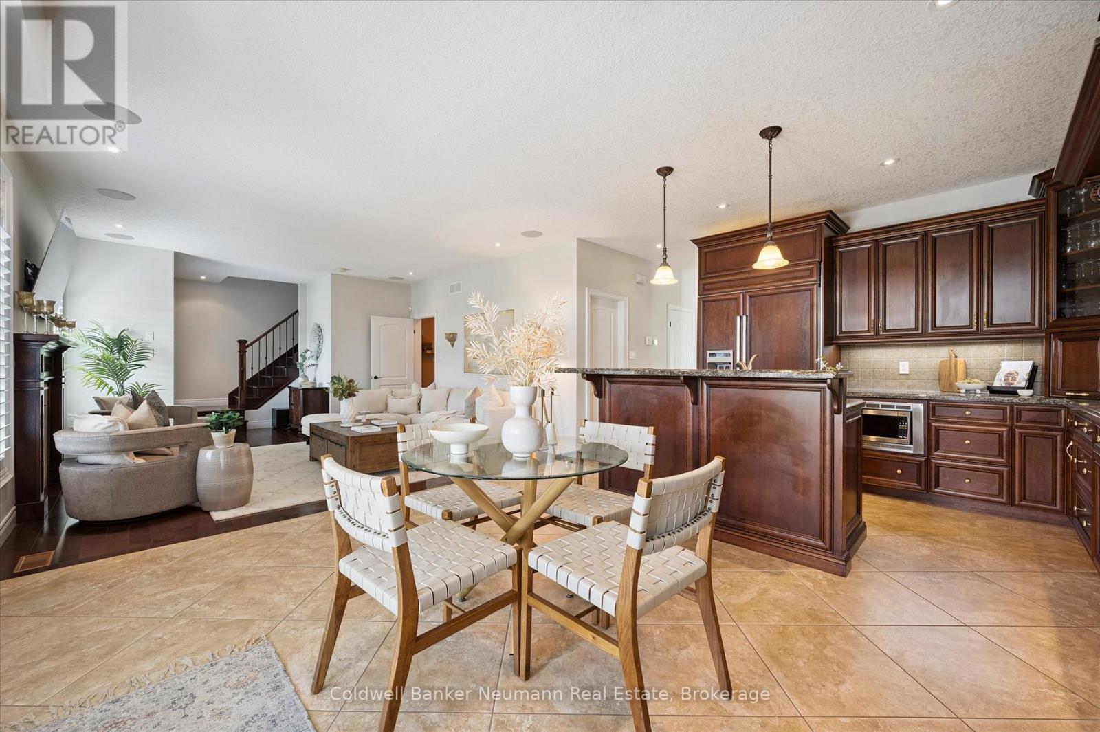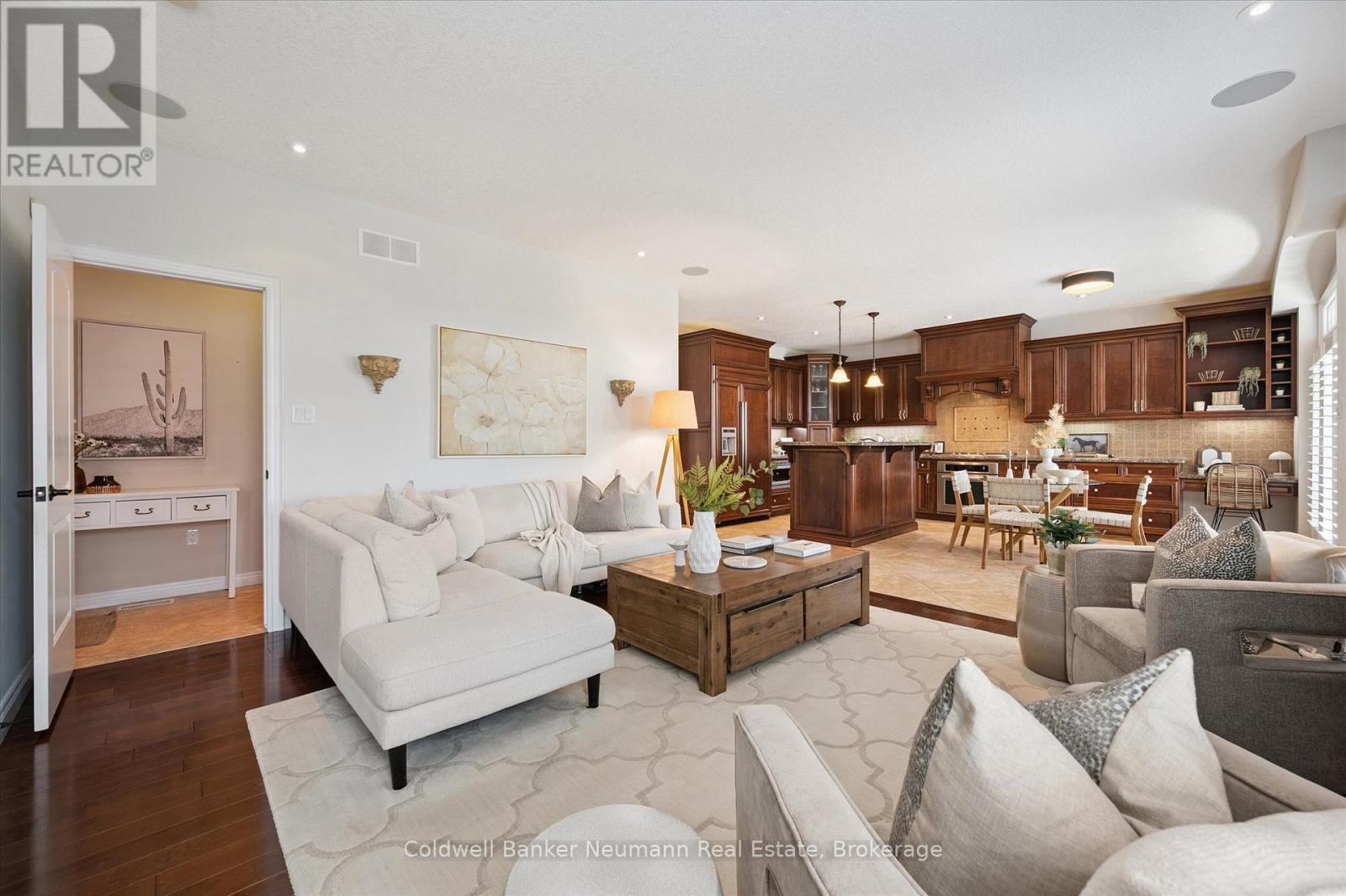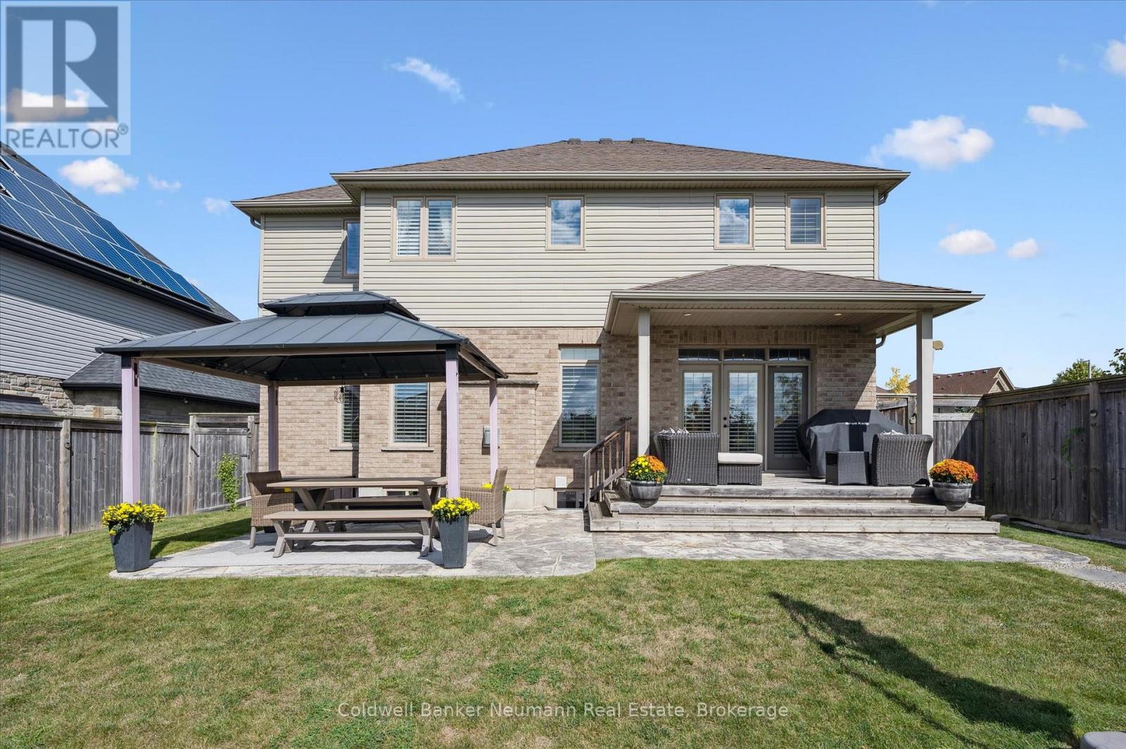 Welcome to 55 Zaduk Place, a beautifully appointed home in Guelph's desirable Kortright East neighbourhood, offering custom finishes, thoughtful upgrades, and exceptional family living. The main floor is bright and inviting, with soaring 9-foot ceilings and abundant natural light. A spacious formal dining room sets the stage for hosting family and friends, while the open-concept kitchen and living areas provide the perfect balance of style and function. The custom Barzotti kitchen features premium cabinetry, panelled appliances, Kohler faucets, custom millwork, and extensive storage. A large island with seating and additional cabinetry completes the space. The living room is cozy yet refined, w/ a gas fireplace and flush-mount speakers. Upstairs, you'll find four generously sized bedrooms, including a well-appointed primary suite with a private 4-piece ensuite. The additional 3 bedrooms are equally spacious and are complemented by an impressive 5-piece main bath with double sinks and a soaker tub. The fully finished basement is a true highlight of the home. With a magazine-worthy aesthetic that balances contemporary design with warmth, it features an expansive rec room anchored by a striking gas fireplace set against a bold black backdrop with custom built-ins and an integrated entertainment system. A designer-inspired bathroom and fully equipped laundry room complete the lower level. Outdoors, enjoy a private retreat with a new above-ground pool (2025), a pergola (2023), flagstone patio, covered deck with gas line and built-in speakers, a shed, and even a flourishing plum tree. Perfectly situated beside a park with tennis and pickleball courts, play areas, and the highly sought-after French school Arbor Vista, this home offers the ideal combination of lifestyle, location, and luxury in one of Guelphs most coveted communities. (id:51158)