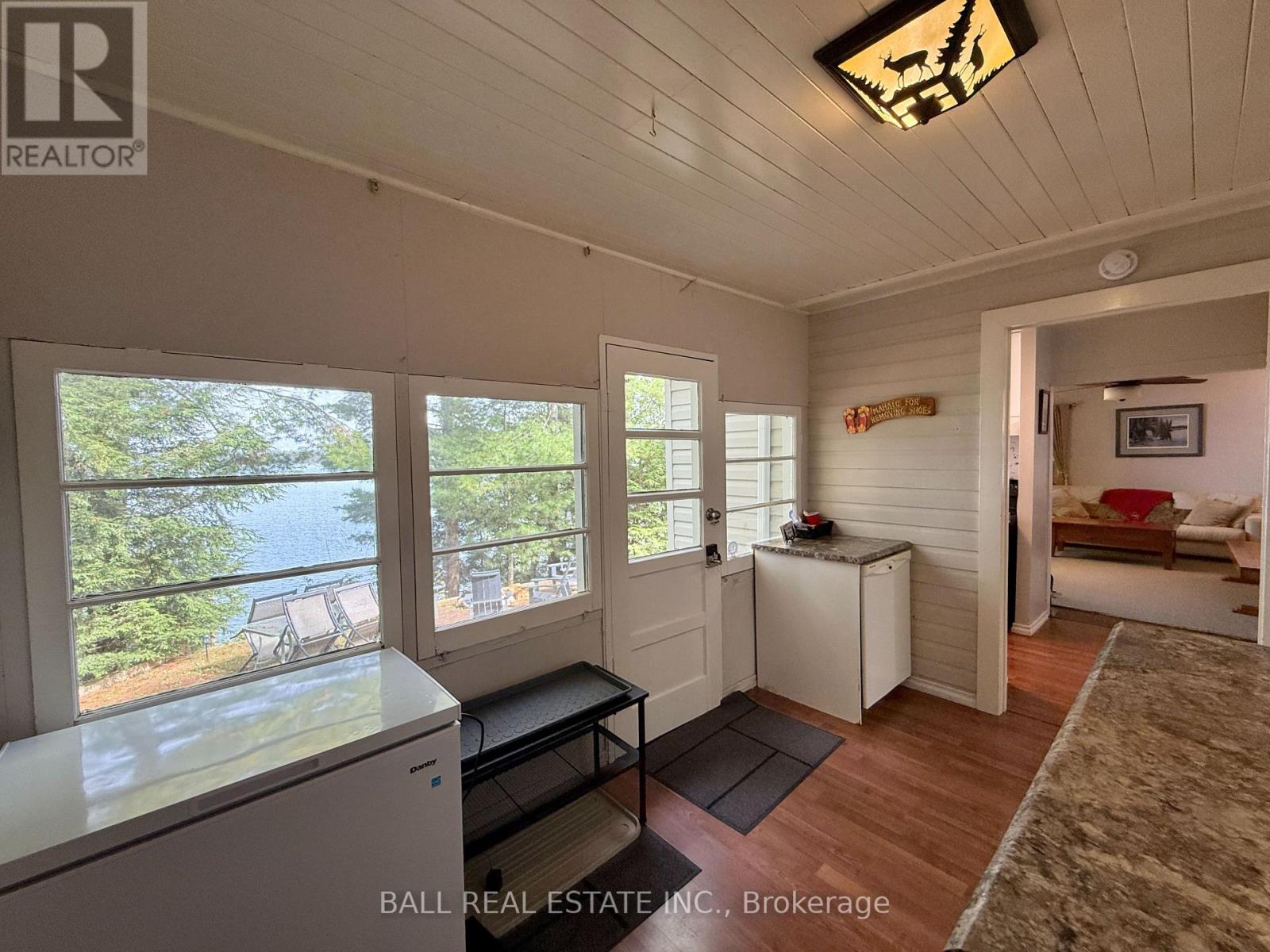 Charming Chandos Lake Cottage! 210ft of prime waterfront with rippling sandy beach frontage that wades into deep, clean water for great swimming, fishing and boating. 1.124 acres of wooded privacy with cottage and dry boathouse tucked in the trees near the water's edge for ultimate privacy. This adorable 3 season cottage offers 3 bedrooms and 2 full bathrooms, including a 3-piece ensuite in the primary bedroom, plus a screened-in porch and a cozy woodstove in the open-concept, lakeview living room. Watch the sunrise off the dock & lakeside decks, and watch the sunset light up the lake from your private wooded point along the peninsula of South Bay. Excellent privacy off the long, wooded driveway set on a year-round municipally maintained road with curbside collection, just 15 mins to amenities of Apsley. Enjoy true cottage serenity on Chandos Lake! (id:51158)