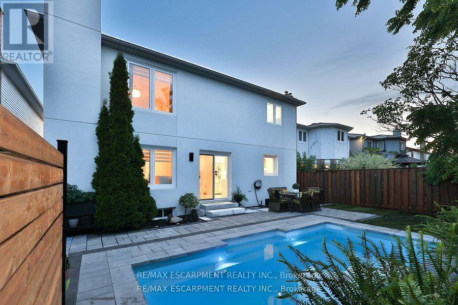 A home that commands attention-inside and out. With over 4,000 sq ft of total living space, this property delivers thoughtful design, premium updates, and a backyard that steals the show. The main floor layout is both functional and elegant: formal living and dining, a separate family room with fireplace, bright breakfast area, powder room, main floor laundry, and a versatile room perfect as an office or playroom. Upstairs, the oversized primary suite features a walk-in closet, glass shower, and deep soaker tub, plus three more spacious bedrooms and a full 5-piece bath. The finished basement adds even more: large rec room, bonus room, guest bedroom, 3-piece bath, and dedicated storage. Outside has a professionally landscaped, low-maintenance backyard with a stunning new pool (2023), epoxy floor in garage, clean lines, manicured gardens, and a sleek stone patio designed for effortless entertaining. Zero compromises. (id:51158)