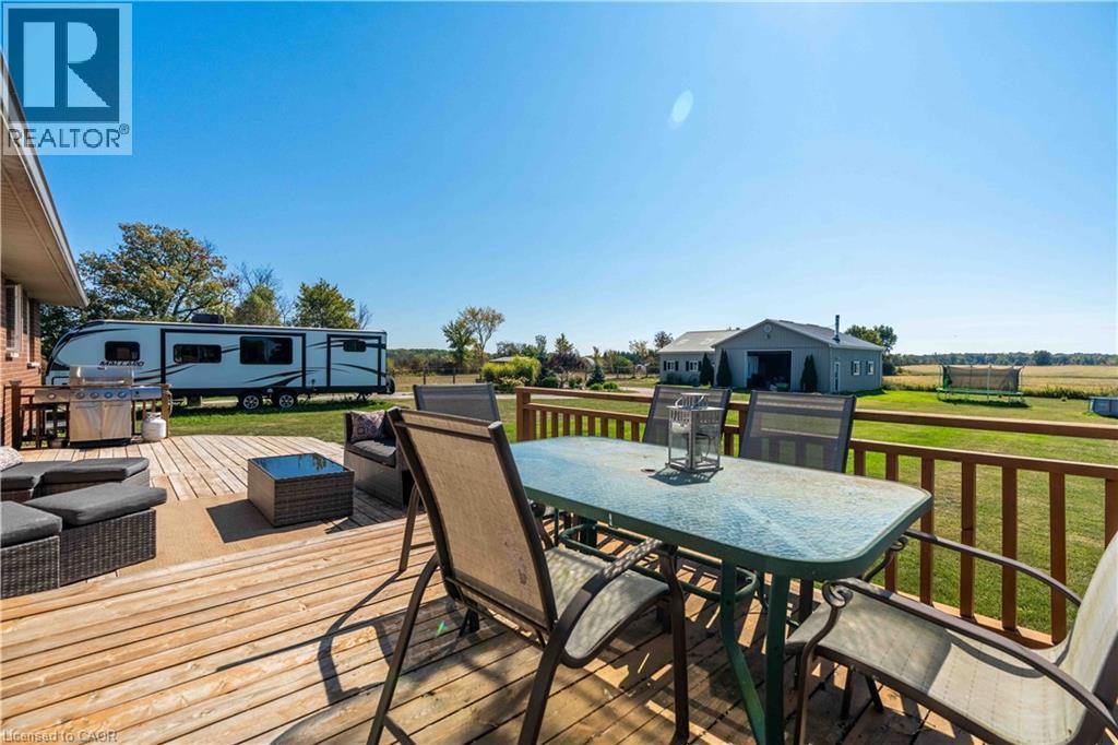 Welcome to the Country! 558 Indiana Road East presents a beautifully renovated brick bungalow (built 1985) on 1.2 acre, boasting 151 feet of frontage and 352 ft depth) an a private country lot making solitude and tranquility and the love of nature positively real! 4 spacious bedrooms, 3 baths, open concept principal rooms. Kitchen features built in appliances, granite counters and lots of cabinetry. The covered front porch and sprawling rear deck overlooking peaceful country fields. Full recently finished basement which could be easily adapted as multi-generational unit. Features include Family Room with elegant corner propane fireplace, bedroom, den, full bath, laundry, cold room and plenty of storage. Single car attached garage completely finished with epoxy floor, drywalled, painted with inside access to home. Chicken coop can become a garden shed, 4 stall animal barn and lots of added storage. Extra long gravel driveway at home and second driveway with turnaround area leading directly to barn area. Geo-Thermal heating with Ecobee thermostat system recently installed in front yard for heating/cooling energy efficiency. Cistern (cleaned 2022) with UV and double filtration system at kitchen sink. Septic system pumped 2023. Additional buildings include a huge shop (built 2007) complete with mechanic hoisting equipment - a hobbyist's dream come true(30’ X40’), (2007) horse barn with non-skid rubber matting floors for 4 horses (24’ x30”) plus lean-to structure for storage (16’ X 24’). Woodburning stove to heat. All in all a perfect country estate to call your own - just minutes to Binbrook and Cayuga, close to commuter routes. (id:51158)