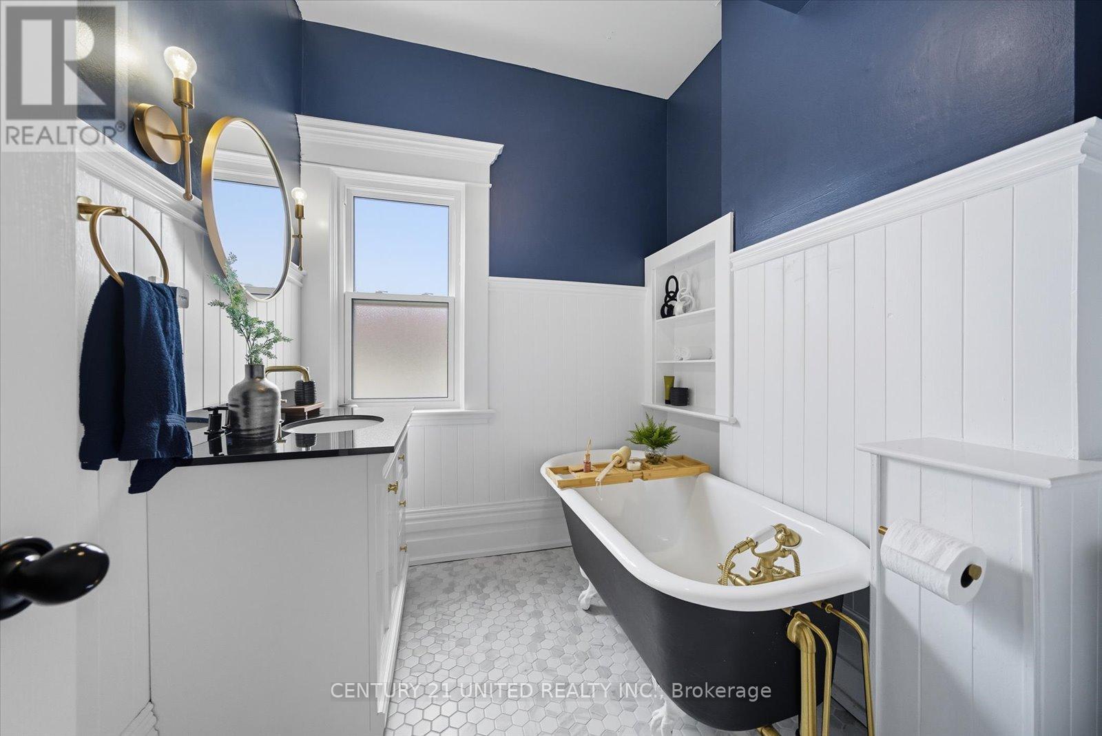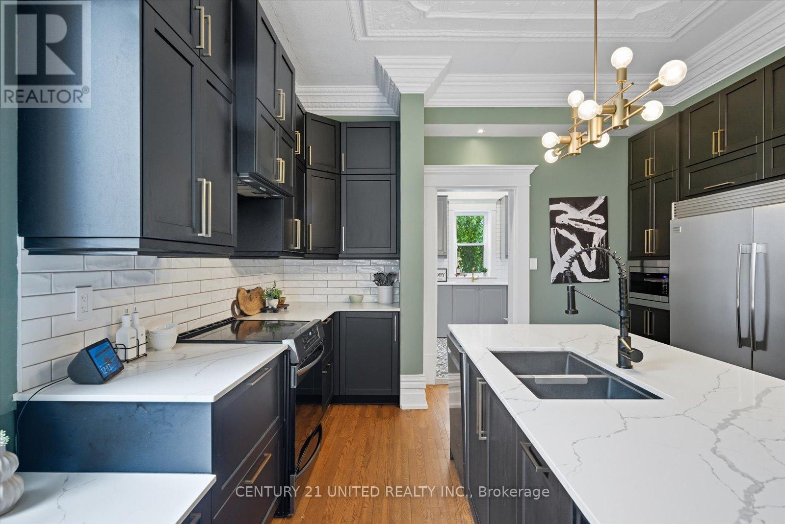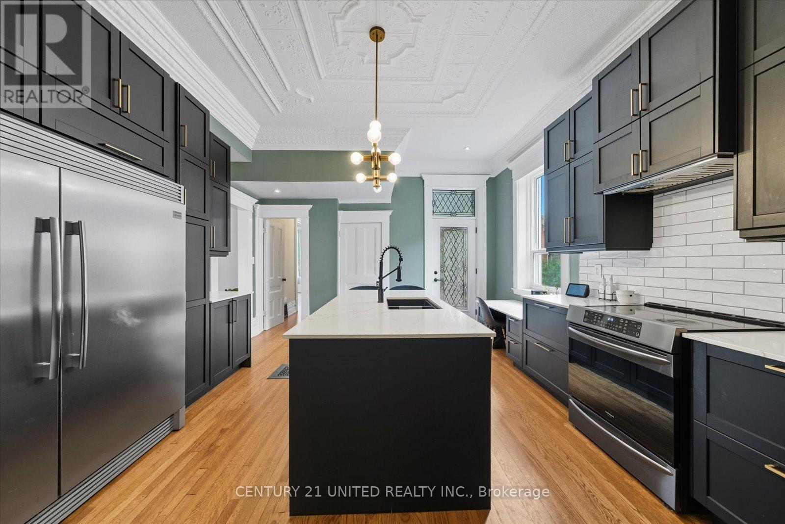Step into history reimagined at 559 Downie. Grand Victorian craftsmanship with a modern twist, all in one extraordinary triplex. Built in 1890, this picturesque Queen Anne style residence in Peterborough is a rare LEGAL triplex. Once home to prominent families, this grand Victorian showcases 10"2 ceilings, intricate craftsmanship, restored hardwood floors, and an original marble fireplace now converted to gas. The main two-storey residence features 3 beds + office, 2 bathrooms and a fenced in yard. Showcasing a luxury kitchen with high-end finishes, maximized storage, and a commercial-sized fridge and freezer, as well as a mudroom and laundry with built-in cabinetry. Ascend the Victorian style staircase and you'll find a restored clawfoot tub, and a primary suite with a dressing room. Multiple upgrades and restorations have been thoughtfully completed, including brand-new windows and doors throughout, ensuring peace of mind, comfort, and efficiency. In addition to the main residence, the property includes a completely private lower 2-bedroom, 1-bath apartment and an upper 2-bedroom, 1-bath apartment, each with access to shared on-site laundry. With four private parking spots and complete separation between units, this property offers the rare opportunity to generate additional income without sacrificing living space, or the option to maximize its potential as a full investment property. A wrap around porch, a steeply pitched roof, and striking Victorian details create a commanding presence. Combining history, comfort, and future-proof flexibility, this is a truly unique opportunity in the heart of Peterborough that no one will want to miss. **Income Projection Charts, list of upgrades available** (id:51158)