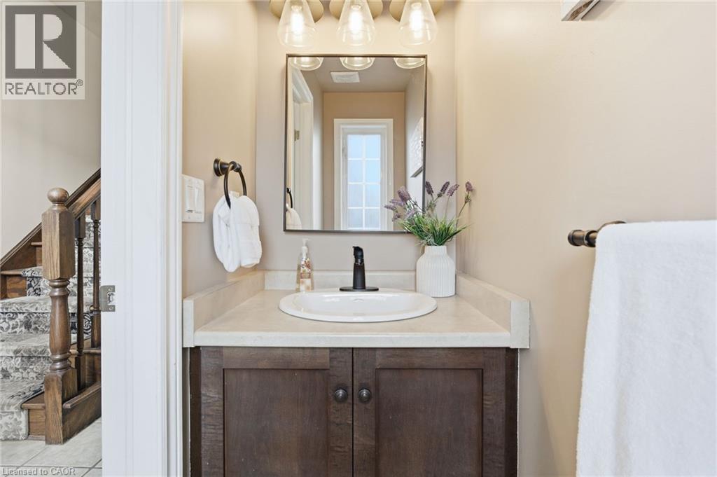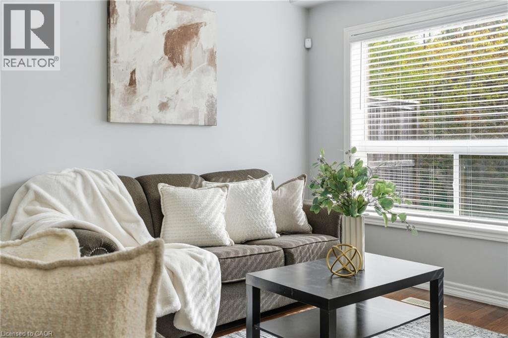 $332.28 MonthlyDesigned for busy lifestyles, this 3-bedroom, 4-bath townhome offers the perfect balance of comfort and convenience. The main floor is open and bright, featuring 9-foot ceilings, large windows, and a gas fireplace for cozy winter nights. Step out to your private deck overlooking greenspace — with no backyard neighbours and minimal upkeep. Upstairs, enjoy bedroom-level laundry, a flexible loft area, and a spacious primary suite with an ensuite bathroom and walk in closet. The finished basement with a 2-piece bath is ideal for a huge rec room, guest space, or kids’ play zone. Low maintenance fees cover snow removal and lawn care, so weekends are yours to enjoy. Walkable to shops, restaurants, and essentials, plus quick highway connections, this home fits seamlessly into a busy schedule. Move-in ready and built for real life — this is low maintenance Ancaster living. RSA (id:51158)