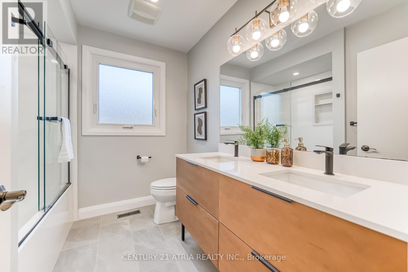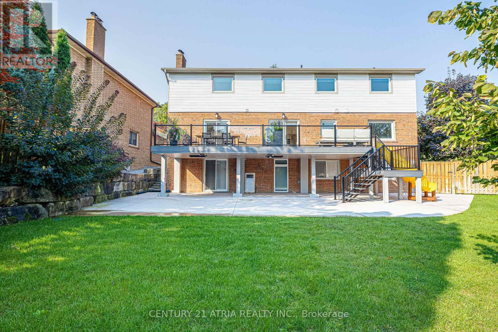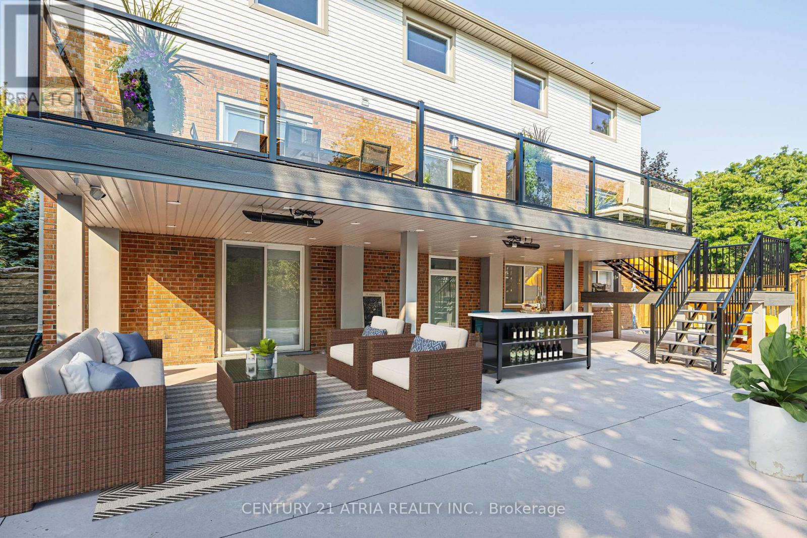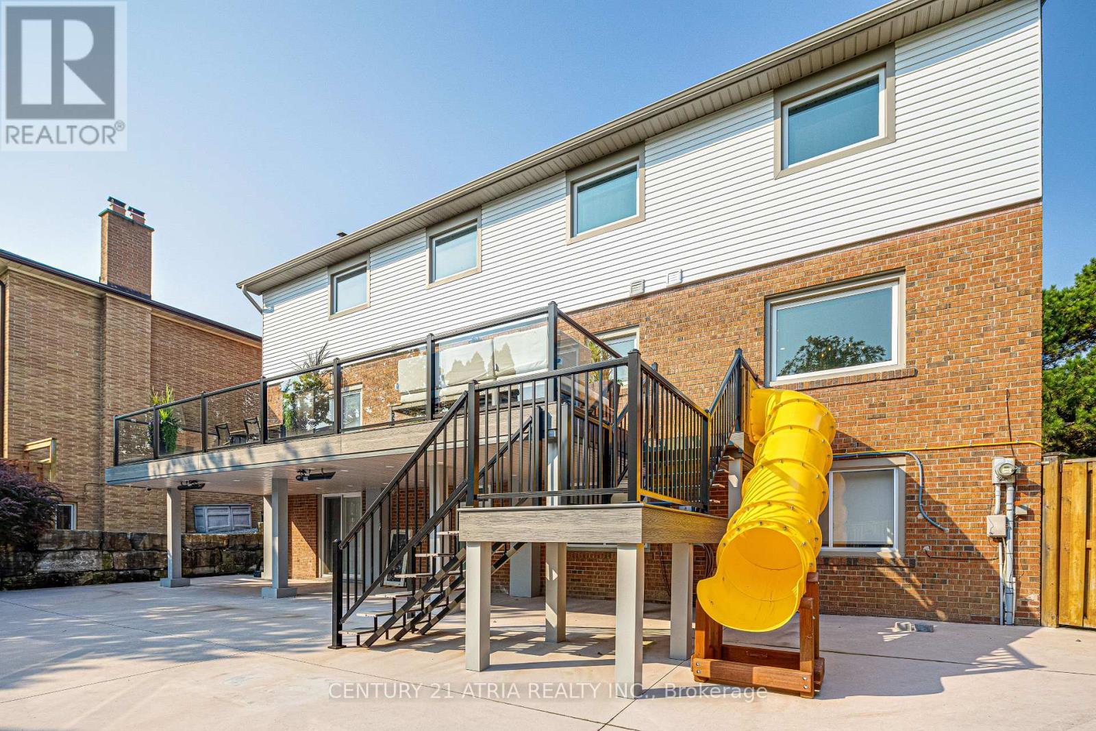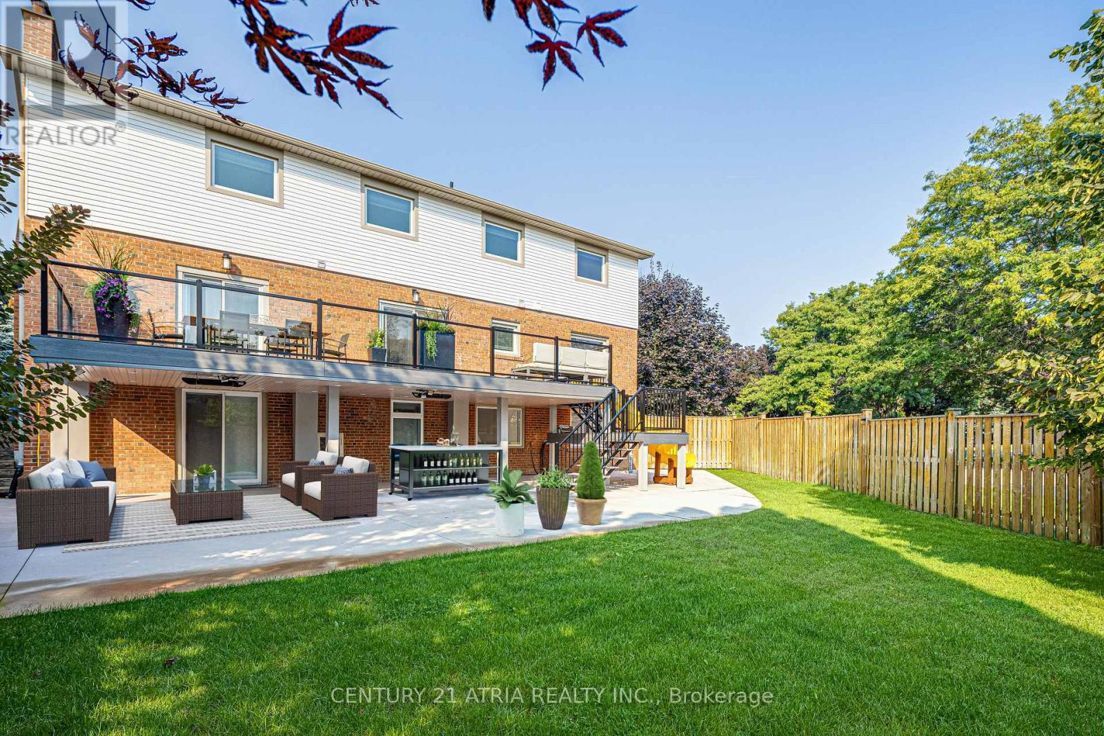 Discover this exquisite residence featuring a beautifully designed open-concept kitchen, a spacious dining room, living room and a cozy family room. The basement, transformed by an award-winning designer with over $150K in renovations, is a standout feature that must be seen to be fully appreciated. Step outside to enjoy the impressive backyard, which boasts two large terraces, a playful yellow slide, and a meticulously manicured garden. Ideally located close to highly-rated schools, Hwy 401, restaurants, and parks. Brand new HVAC (2024), complete basement renovations and second floor bathroom (2023), Backyard renovations (2022), Brand new drive way interlock (2021), Windows and front door replaced (2019) and many more upgrades. The main floor, second floor and both staircases have been newly renovated in July 2025 with luxurious white oak. Heated floors in the whole basement, infrared heaters in the downstairs patio to enjoy all year long, stylish and luxurious bar in the basement to amaze all your guests and so much more. Schedule your visit today to experience this exceptional home in person and see all that it has to offer! (id:51158)