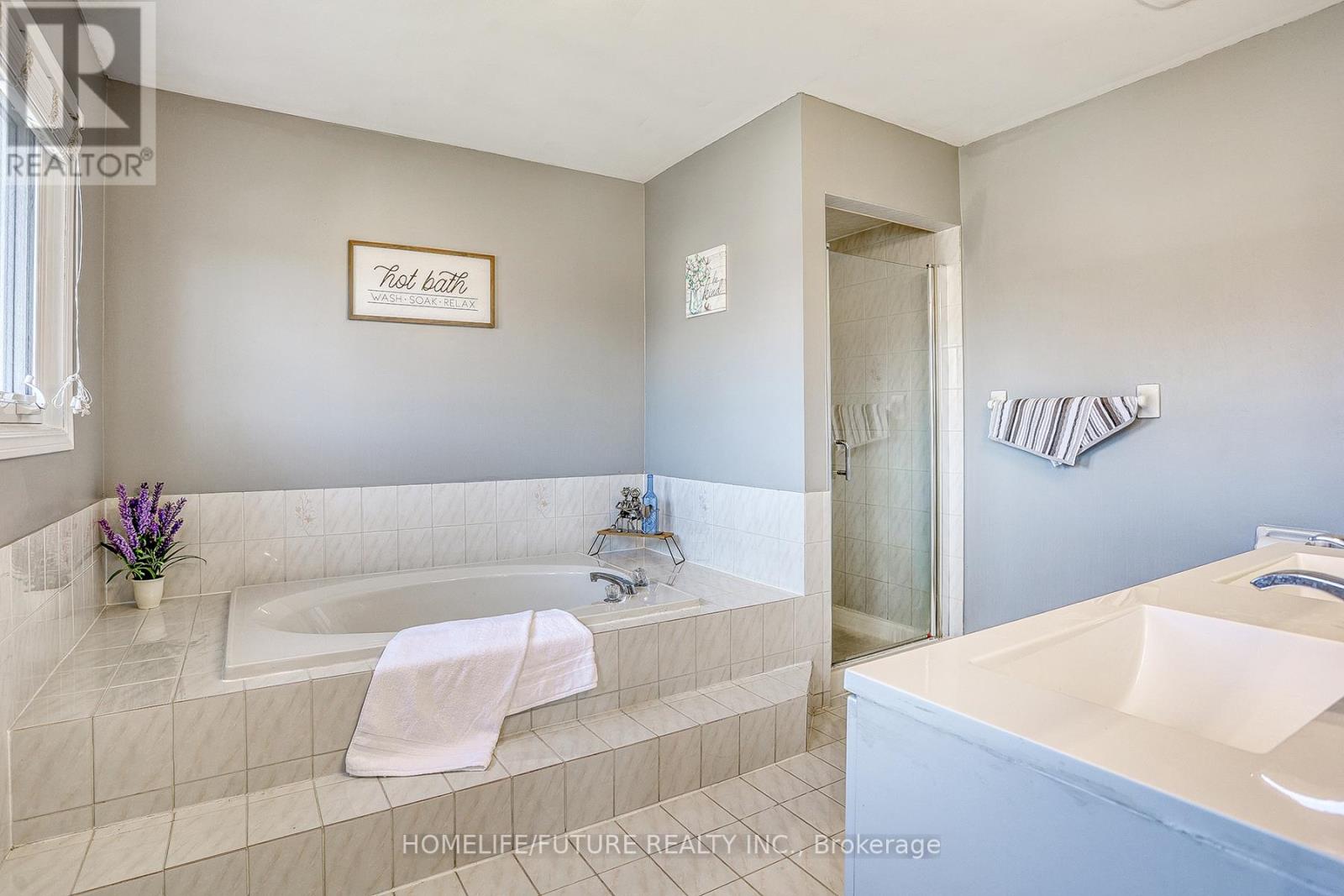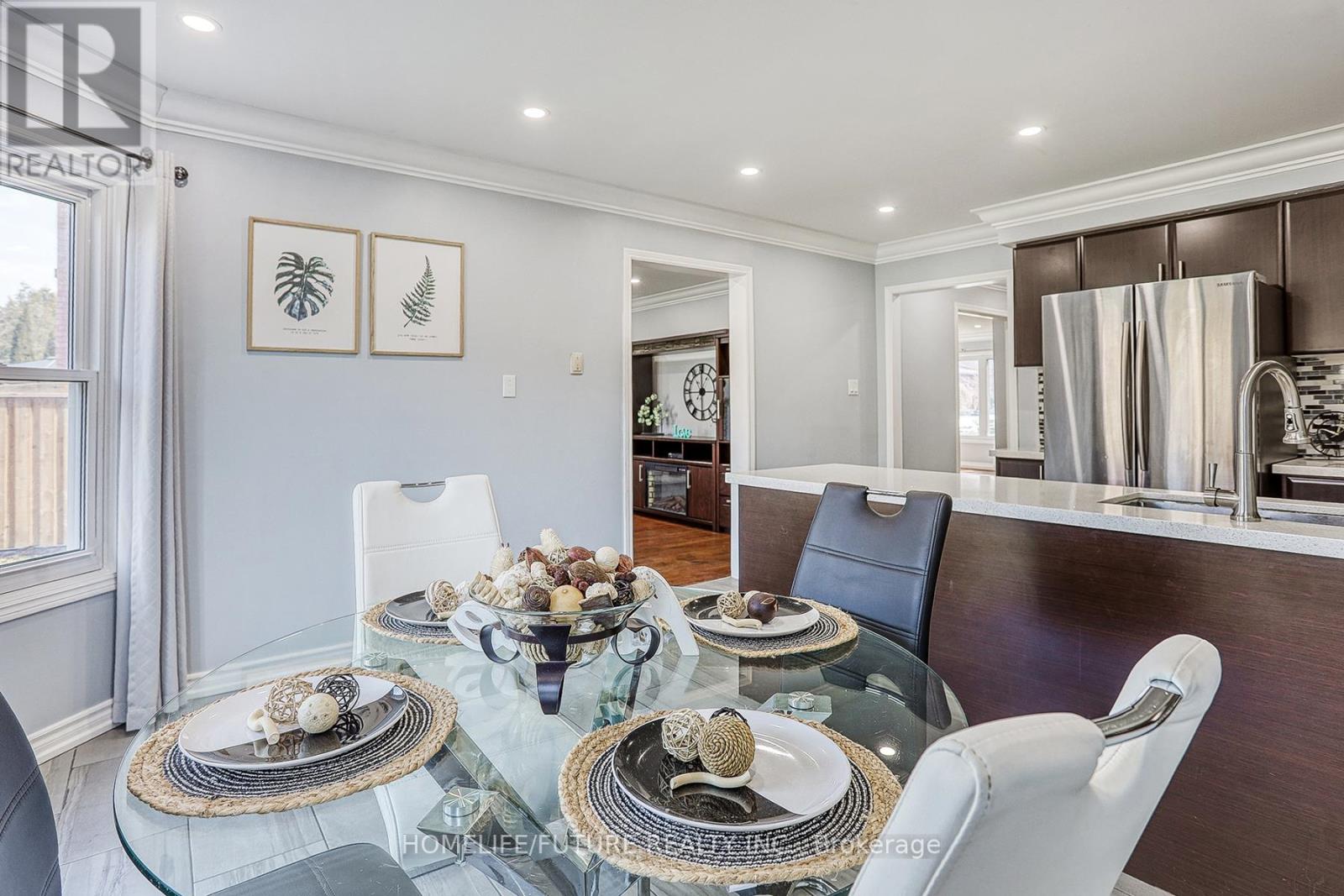 Beautiful Move-In-Ready Home In One Of Whitby's Most Sought-After Rolling Acres Neighborhood.This Home Offers Over 2,500 Sq Ft + Finished Basement With More Living Space. Step Through The Enclosed Front Porch & Into A Large Foyer, Where You'll Find A Convenient Aundry Room W/Garage Access. A Separate Living & Dining Room Offers Spaces For Entertaining Family And Friends. Fully Updated Kitchen With Adjoining Eat-In Area Opens Via Sliding Doors To A Private Fenced Backyard. Large Great Room With A Fireplace And Large Windows Overlooking The Backyard. Hardwood Stairs And Flooring On Main Floor, With Engineered Hardwood Flooring Throughout Upstairs And 4 Large Bedrooms, Including A Primary Bedroom With A 5-Piece Ensuite And A Walk-In Closet. Three Other Bedrooms Offer Lots Of Space For The Whole Family. The Finished Basement Provides An Extra Living Area, Recreation Space, Cold Room & Kids Play Area. Interlocking In Front And Back Yard With A New Driveway, & No Side Walk To Provide Up To 6 Car Parking. Located Minutes From, Hwy 401, Schools, Parks & Shops/Restaurants. Upgrades (Interlock Front/Back, New Driveway, Side Fences, Gutter, Windows, Exterior Doors, A/C) (id:51158)