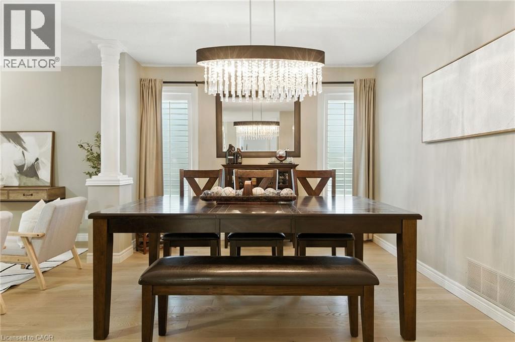 Elegant and timeless, welcome to 56 Sonoma Lane, an executive 3 bedroom, 2.5 bathroom home nestled on a 40 x 115-ft lot in a sought-after neighbourhood in Stoney Creek! Elevated curb appeal, landscaped garden beds, and mature greenery surround the exterior of this great home, complemented by an aggregate concrete driveway. You'll be impressed from the moment you step inside, with abundant natural light, tall ceilings, hardwood flooring, California shutters, and stylish tones throughout. Thoughtfully designed, the formal living room, which overlooks the front of the home, opens into the large dining room with a stunning chandelier, the perfect setting for hosting family gatherings. The eat-in kitchen offers ample cabinetry and counterspace, a peninsula, stainless steel appliances, and a lovely breakfast area with bow windows and a walk-out to the beautiful backyard. The sophisticated great room with soaring ceilings and a gas fireplace is the home’s focal point. Completing the main floor is a powder room and a laundry room with inside access from the double garage. Upstairs, you will find the large primary bedroom, a retreat of its own, with a walk-in closet and a 4-piece ensuite bathroom. Two additional spacious bedrooms with ample closet space and a 4-piece bathroom complete the second floor. The basement offers abundant storage, a cold cellar, and endless opportunities to custom-design your dream recreation space. Step outside to your serene outdoor oasis, complete with a spacious patio, open green space, lush gardens, and beautiful greenery! This quiet, family-friendly location is close to schools, trails, and parks, including Winona Park, home of the annual Winona Peach Festival, the Lake Ontario waterfront, the marina and beach at Fifty Point, wineries, the Winona Crossing Plaza with all amenities, easy highway access, and more. Seize the moment and make this beautifully refined home and property yours! (id:51158)