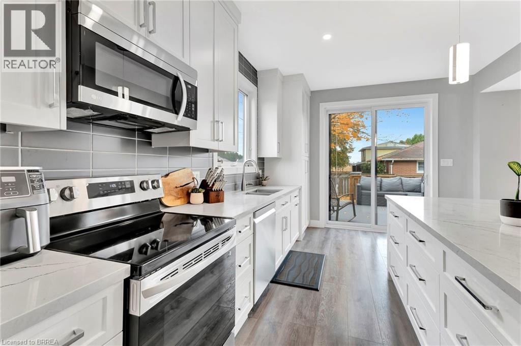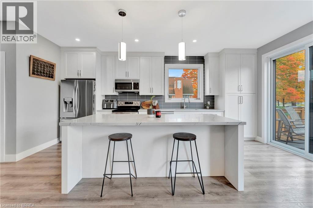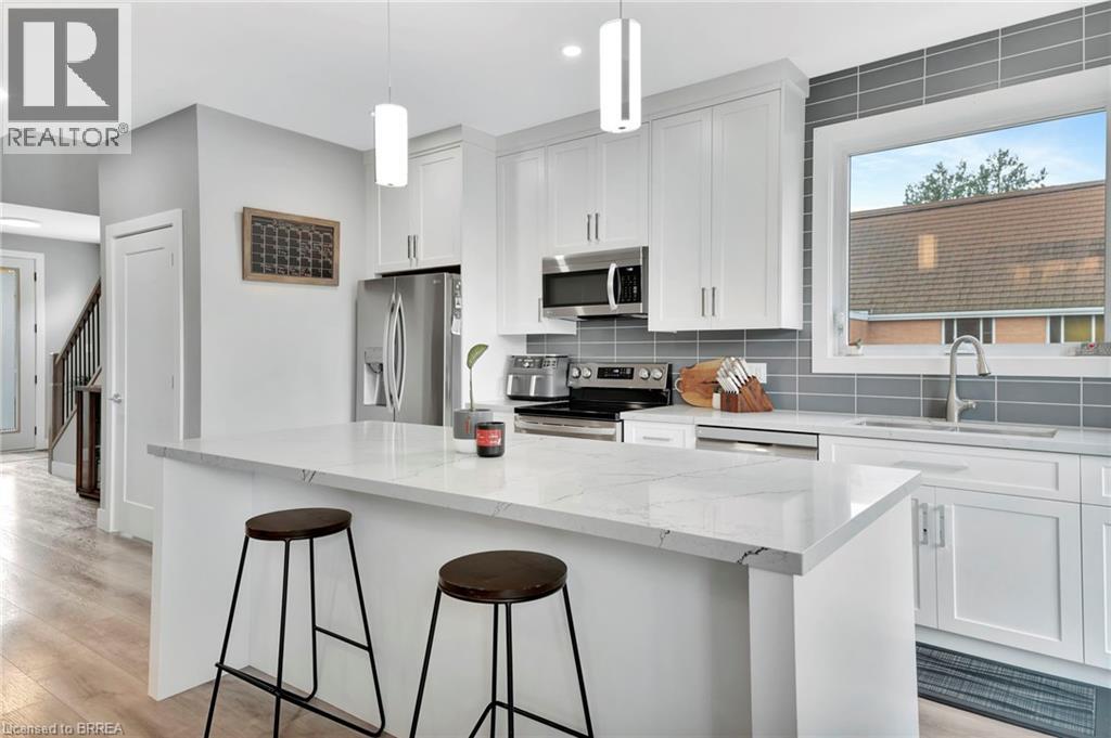 MLS# 40687552 – FOR SALE : 56282 Heritage Line Straffordville – 3 Beds, 3 Baths Semi-detached House ** Welcome to 56282 Heritage Line—a striking semi-detached home in Straffordville, designed with a California-inspired aesthetic that offers incredible flexibility. This unique property can be easily adapted into two separate units, featuring upper and lower levels with independent entrances and dedicated hydro panels. Sleek black-trimmed windows and a full-length glass door open into a stylish foyer that sets the tone for modern sophistication. Inside, the main living areas boast durable vinyl plank flooring, creating a seamless flow in the open-concept layout. The family room connects effortlessly to the dining space and chic kitchen, which showcases floor-to-ceiling white cabinetry, quartz countertops, a tasteful grey subway-tile backsplash, and a spacious island with pendant lighting perfect for breakfast bar seating. The kitchen also opens onto a raised deck, an ideal spot for outdoor gatherings and relaxation. The upper level offers three generously sized bedrooms with plush, luxurious carpeting, a 4-piece bathroom, and a convenient laundry room. The primary bedroom serves as a true retreat, featuring a large window, a walk-in closet, and ensuite bathroom. Additionally, the unfinished basement presents an exciting opportunity to create a fully separate living space its own entrance and already separated hydro panels Outside, enjoy a raised deck overlooking a spacious, fully fenced yard—a blank slate for your landscaping ideas. Explore the endless possibilities this versatile property offers! (id:51158) ** 56282 Heritage Line Straffordville **