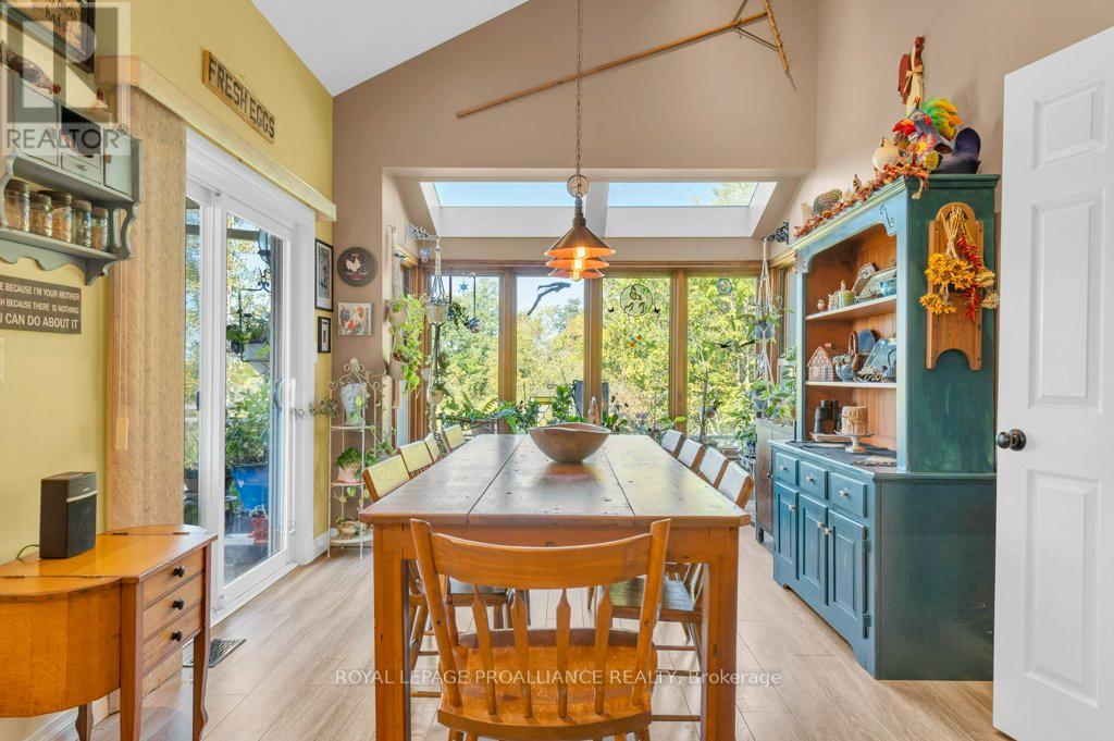 Welcome to Flying Club Road, an exceptional property set on 2.4 acres where sunsets over the Oak Hills creates a breath taking backdrop for everyday living. With a private pond, magazine-worthy perennial gardens, and an expansive yard designed for outdoor enjoyment, this custom-built home embodies the beauty of country living with modern comfort. Offering 3764 sqft of living space - five bedrooms, four bathrooms, and a walkout basement with a full apartment and separate entrance, it is perfect for extended or merging families. The main floor features a spacious foyer, a dining room with patio doors, and a newer granite kitchen overlooking the gardens and backyard, complemented by a stunning custom glass shower in the main bath. Upstairs, the luxurious primary suite includes a cozy sitting area, a five-piece ensuite with glass shower, and an oversized closet. The lower level boasts a phenomenal workshop/sewing shop, wood fireplace, and versatile living space. Natural light streams through large windows, highlighting the open countryside and serene perennial gardens. Additional features include a double-car garage with a paved driveway, appliances, and a heat pump with AC. Just minutes to Belleville, Trenton, highway 401, and the Trent River, this property is the perfect blend of elegance, natural beauty, and modern convenience. (id:51158)