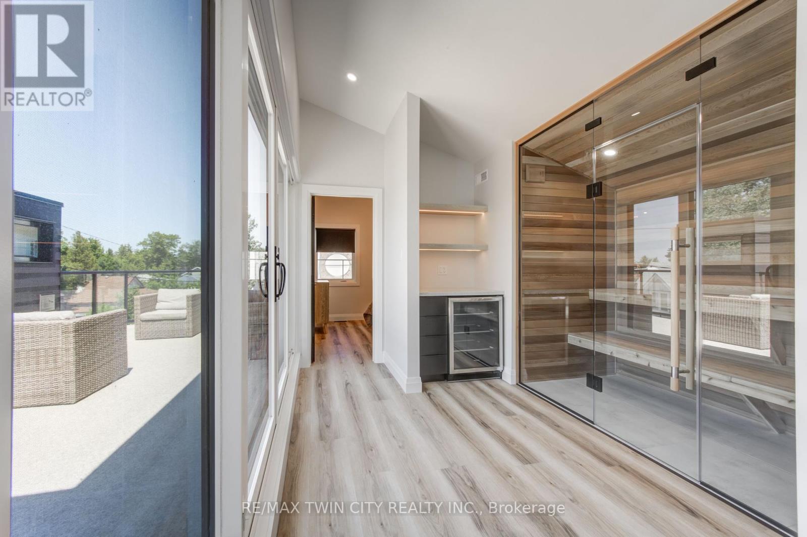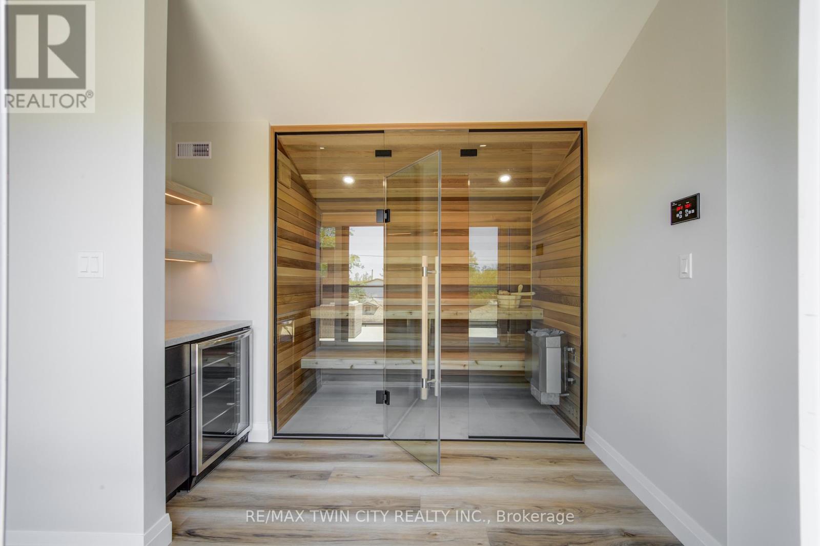 IN-LAW SUITE!! LAKE VIEW!! This exceptional 3-storey residence, ideally located just steps from Grand Bend's renowned Main Beach, seamlessly combines contemporary design with unparalleled luxury. The open concept main floor features a chef's kitchen with quartz countertops, a bright and airy 2-storey living room, dining area, and a 2-piece powder room. On the second floor, the spacious primary suite offers a serene retreat with a spa-like 4-piece ensuite and walk-in closet, while a second generously sized bedroom, a 3-piece bath, and a convenient laundry room complete this level. The third floor is a spectacular haven for both relaxation and entertaining, boasting two additional bedrooms, a beautifully appointed 4-piece bath, bar, sauna with glass doors and sliders leading to a breathtaking rooftop deck. Enjoy the warmth of the double-sided outdoor gas fireplace while taking in beautiful lake views and unforgettable sunsets. The lower level features a private fully finished in-law suite with its own entrance, kitchen, cozy living room, bedroom, and a 4-piece bath - connected to the main house yet offering a separate entrance for added privacy and versatility. Outside, an interlock driveway (parking for 5), inviting backyard patio, and low-maintenance landscaping complete this exquisite property. With its perfect blend of luxury, functionality, and proximity to the Main Beach, this exceptional home offers an unparalleled lifestyle in the heart of Grand Bend. Your DREAM HOME awaits! (id:51158)