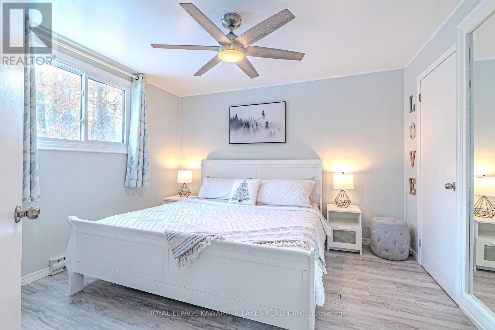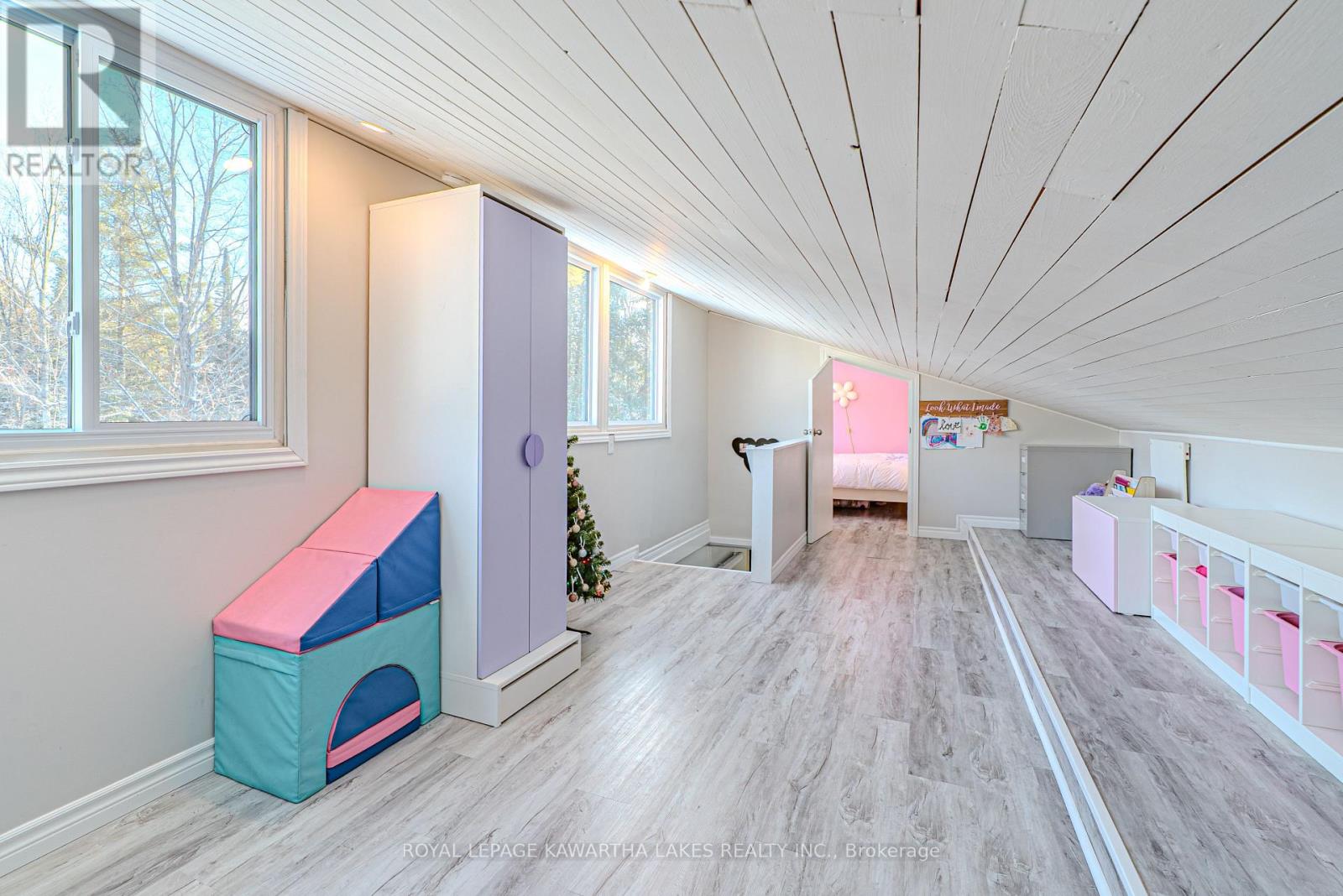 Clean and cozy 4 bedroom bungalow on 10.25 acres. Nestled on a dead-end road just minutes from Coboconk and biking distance to Balsam Lake Provincial Park, this peaceful, tastefully decorated home is the perfect location to enjoy nature and outdoor life. The main floor features a bright, eat-in kitchen with pantry, a foyer with walkouts to the deck, open living room, a 4 pc bath, and 3 bedrooms. The upstairs loft area has a fourth bedroom as well as a large open space, perfect for an office, home gym, playroom...the possibilities are endless! The home boasts many upgrades including newer windows (2024) throughout and a metal roof. The home is close to snowmobile and ATV trails as well as 200 acres of crown land across the road. Property includes a detached garage/workshop (24'x24') fully insulated with woodstove and propane wall furnace. This is a must see...simply move in and enjoy! (id:51158)