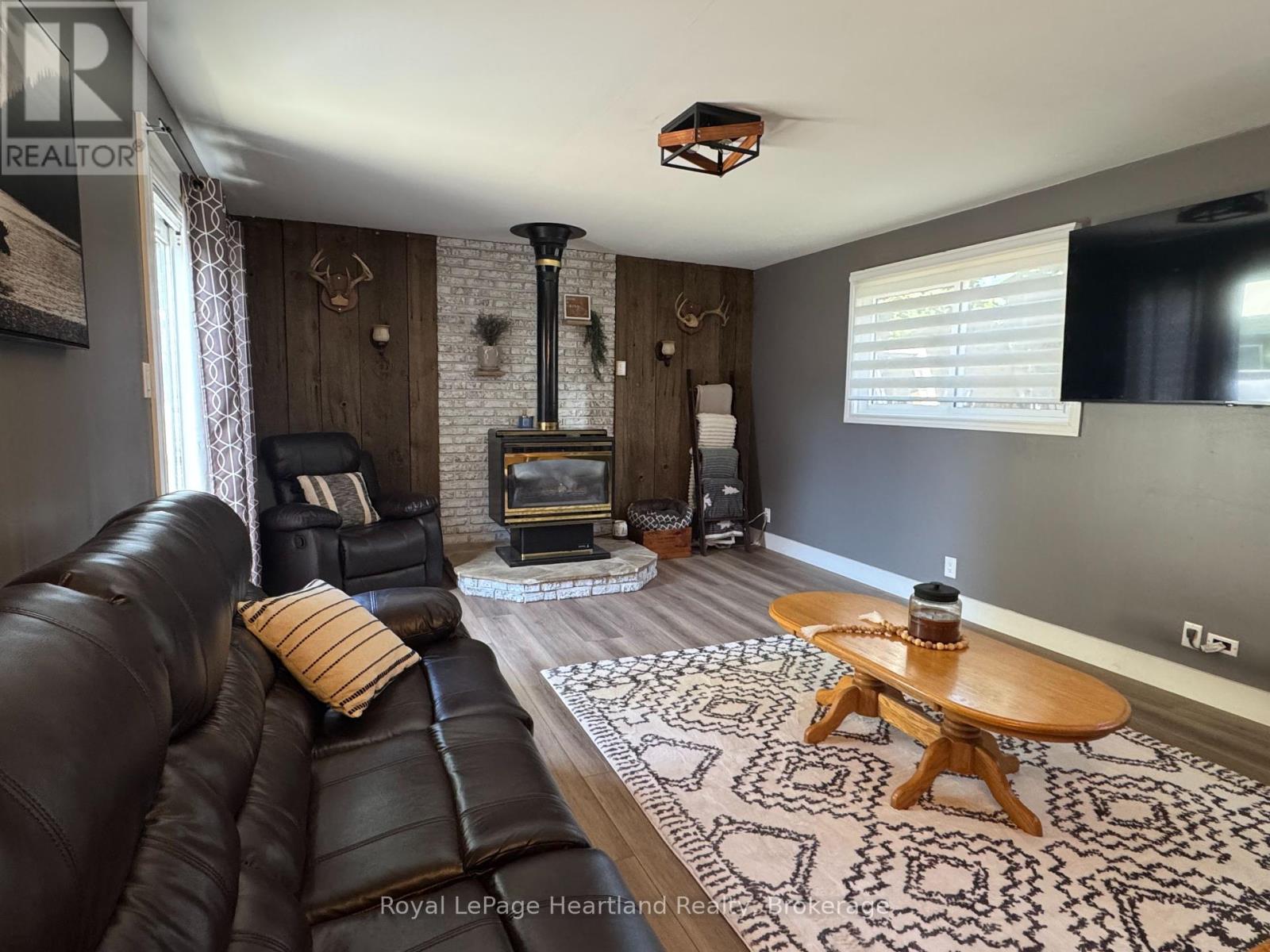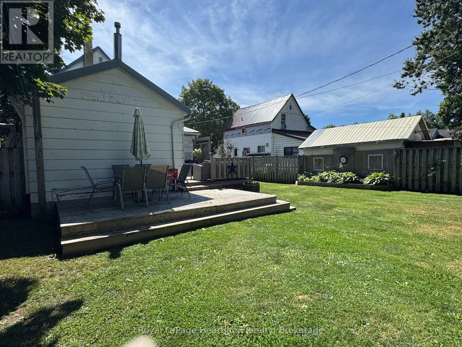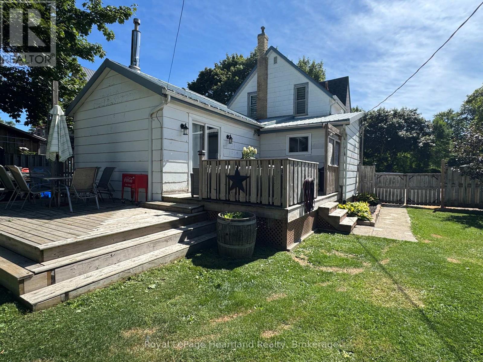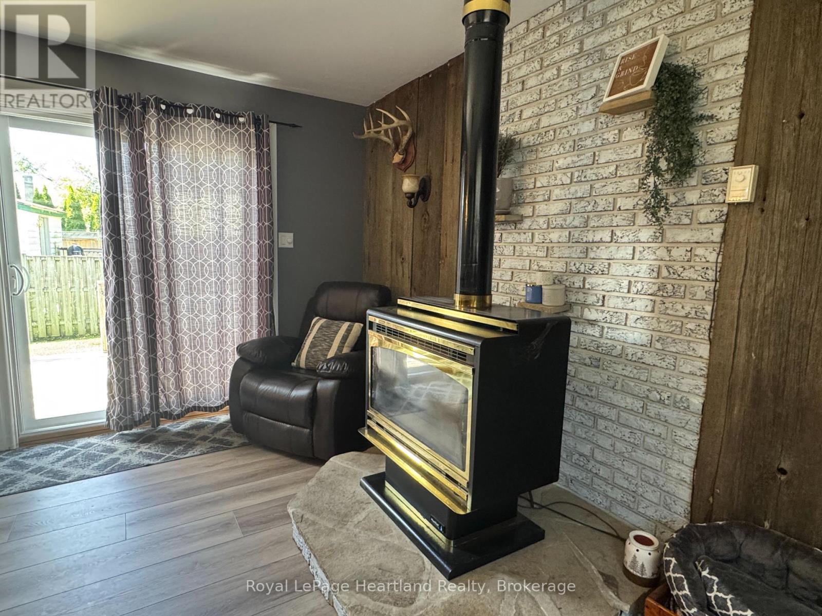 Welcome to this delightful 1.5 storey home offering 2 bedrooms with the potential of a 3rd on the main by converting the living room by closing it and adding a closet. The main floor features a spacious kitchen with ample cupboard space, a cozy family room with a gas fireplace, and patio doors leading to a tiered deck that overlooks the large, fully fenced yard perfect for entertaining, children or pets and let's not forget about the small storage shed that completes the backyard. Convenient main floor laundry adds to the ease of everyday living along with a 2pc bathroom. Upstairs, you'll find comfortable sized bedrooms, a 4pc bath and flexible space to suit your needs, while the basement provides plenty of storage. A welcoming front porch makes the perfect spot to relax and enjoy your morning coffee. Some updated flooring, drywall and paint gives this home a fresh touch. Ideally located just a few blocks from Main St, the arena, local churches and the school, this property combines small-town charm with the easy access to everyday amenities. Water Heater(2025). Seller's have purchased dark grey siding and a small garden shed frame, neither of which will be installed or assembled prior to closing however both items will be left with the property for the buyer if desired. (id:51158)