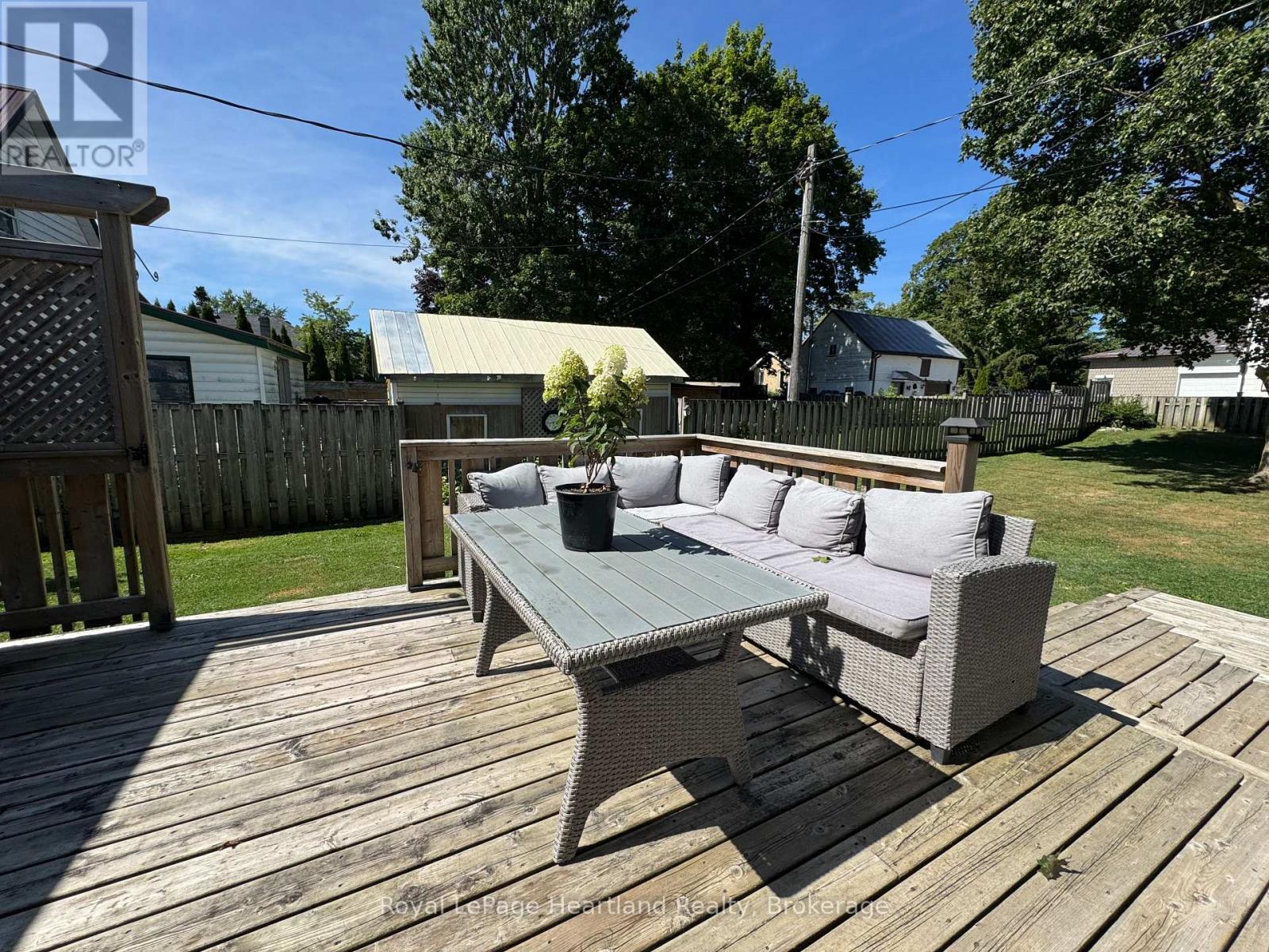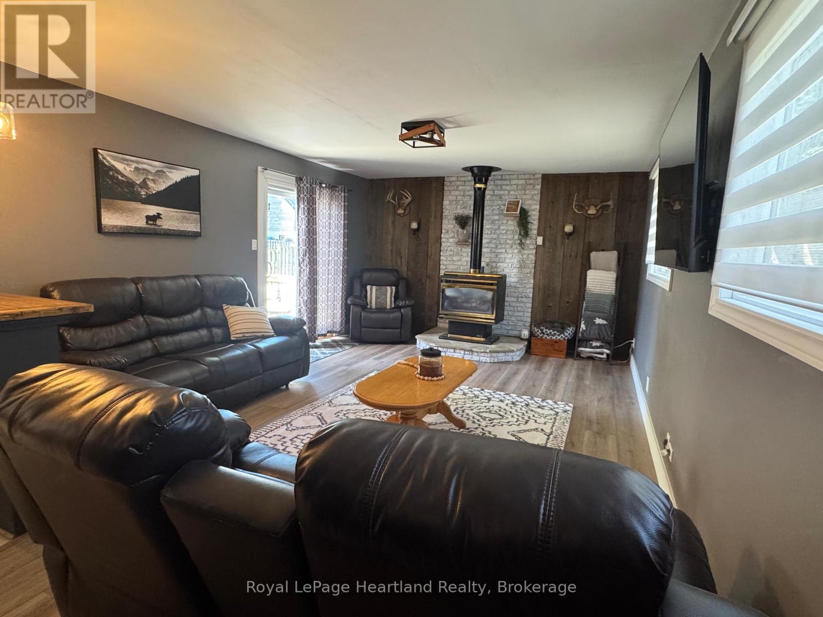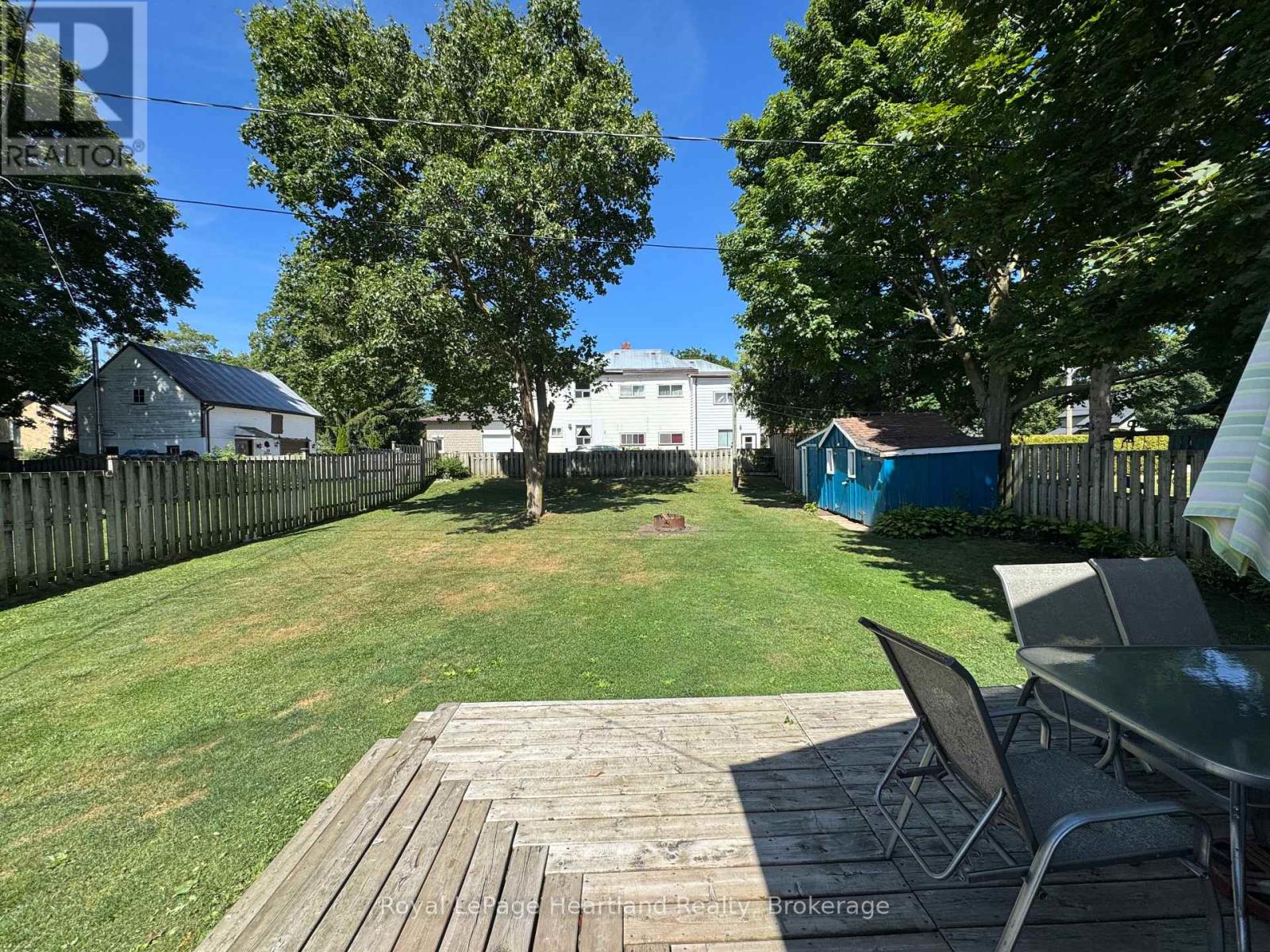Welcome to this delightful 1.5 storey home offering 2 bedrooms with the potential of a 3rd on the main by converting the living room by closing it and adding a closet. The main floor features a spacious kitchen with ample cupboard space, a cozy family room with a gas fireplace, and patio doors leading to a tiered deck that overlooks the large, fully fenced yard perfect for entertaining, children or pets and let's not forget about the small storage shed that completes the backyard. Convenient main floor laundry adds to the ease of everyday living along with a 2pc bathroom. Upstairs, you'll find comfortable sized bedrooms, a 4pc bath and flexible space to suit your needs, while the basement provides plenty of storage. A welcoming front porch makes the perfect spot to relax and enjoy your morning coffee. Some updated flooring, drywall and paint gives this home a fresh touch. Ideally located just a few blocks from Main St, the arena, local churches and the school, this property combines small-town charm with the easy access to everyday amenities. Water Heater(2025). Seller's have purchased dark grey siding and a small garden shed frame, neither of which will be installed or assembled prior to closing however both items will be left with the property for the buyer if desired. (id:51158)
