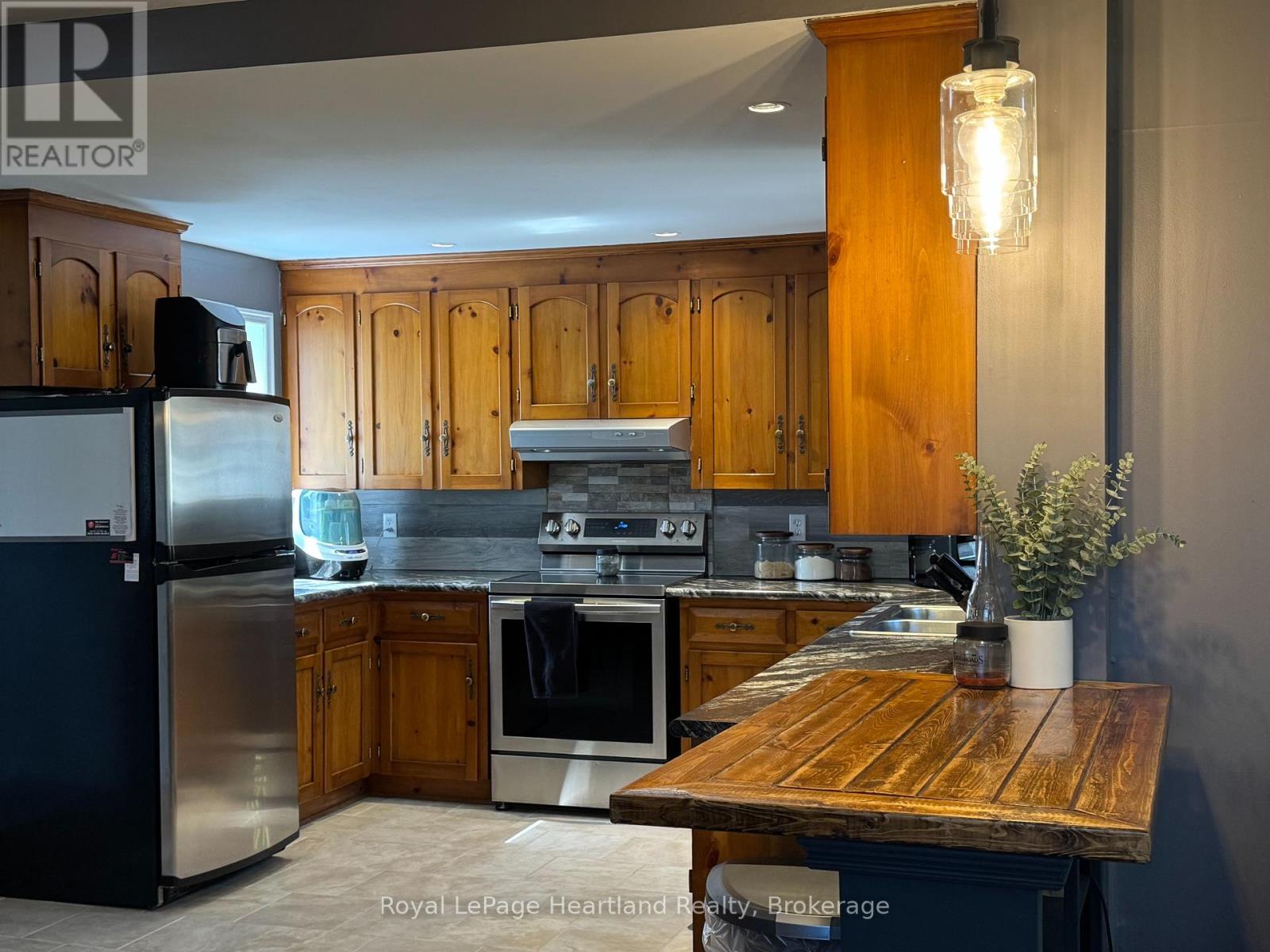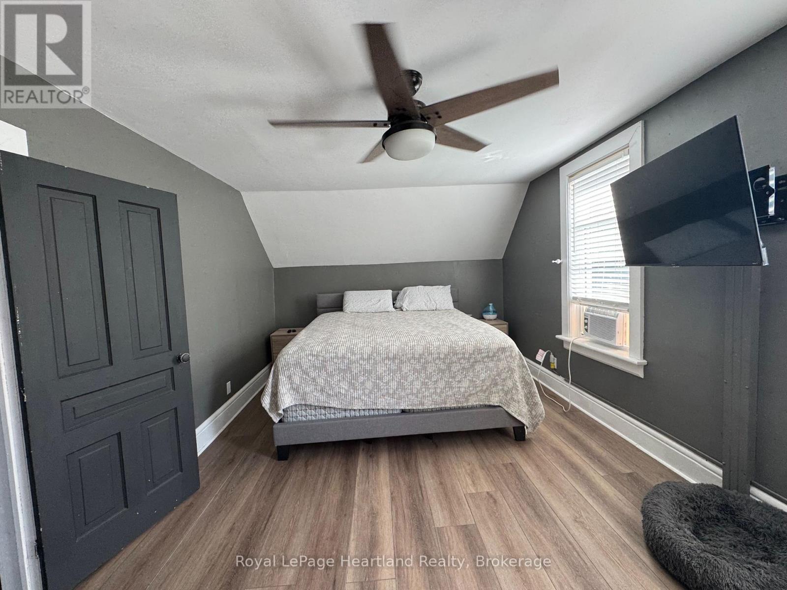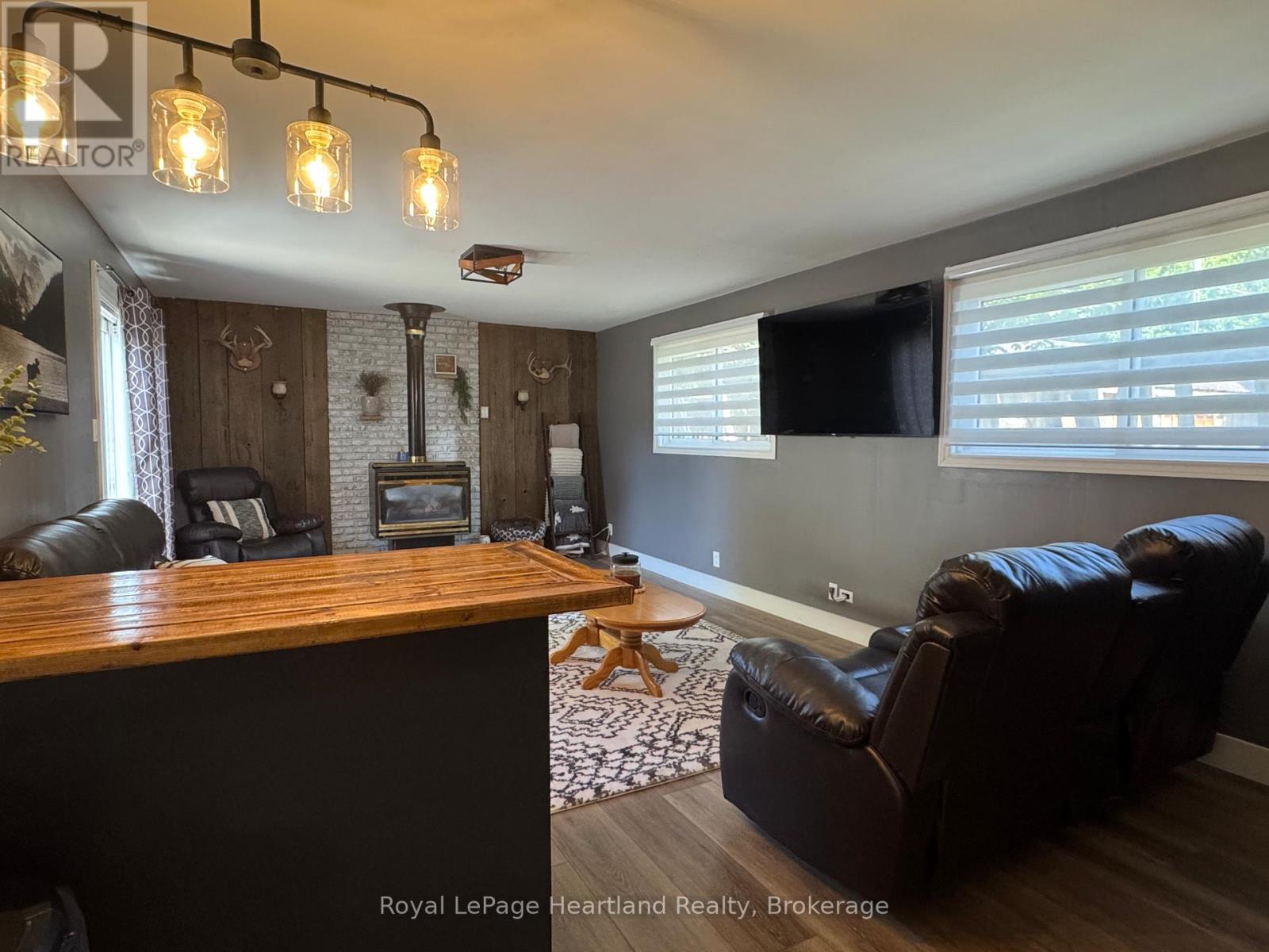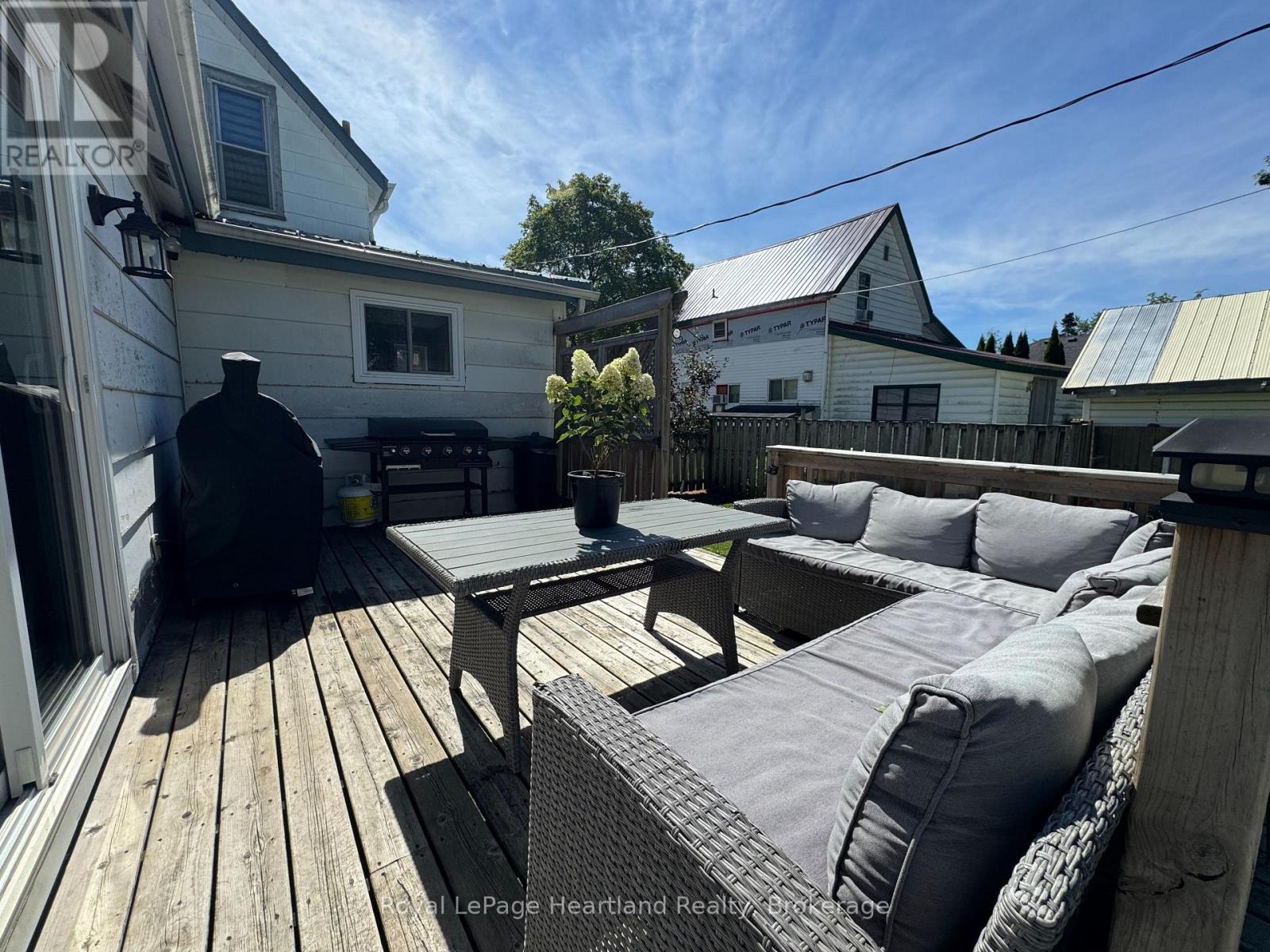 Welcome to this delightful 1.5 storey home offering 2 bedrooms with the potential of a 3rd on the main by converting the living room by closing it and adding a closet. The main floor features a spacious kitchen with ample cupboard space, a cozy family room with a gas fireplace, and patio doors leading to a tiered deck that overlooks the large, fully fenced yard perfect for entertaining, children or pets and let's not forget about the small storage shed that completes the backyard. Convenient main floor laundry adds to the ease of everyday living along with a 2pc bathroom. Upstairs, you'll find comfortable sized bedrooms, a 4pc bath and flexible space to suit your needs, while the basement provides plenty of storage. A welcoming front porch makes the perfect spot to relax and enjoy your morning coffee. Some updated flooring, drywall and paint gives this home a fresh touch. Ideally located just a few blocks from Main St, the arena, local churches and the school, this property combines small-town charm with the easy access to everyday amenities. Water Heater(2025). Seller's have purchased dark grey siding and a small garden shed frame, neither of which will be installed or assembled prior to closing however both items will be left with the property for the buyer if desired. (id:51158)