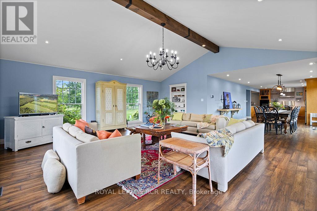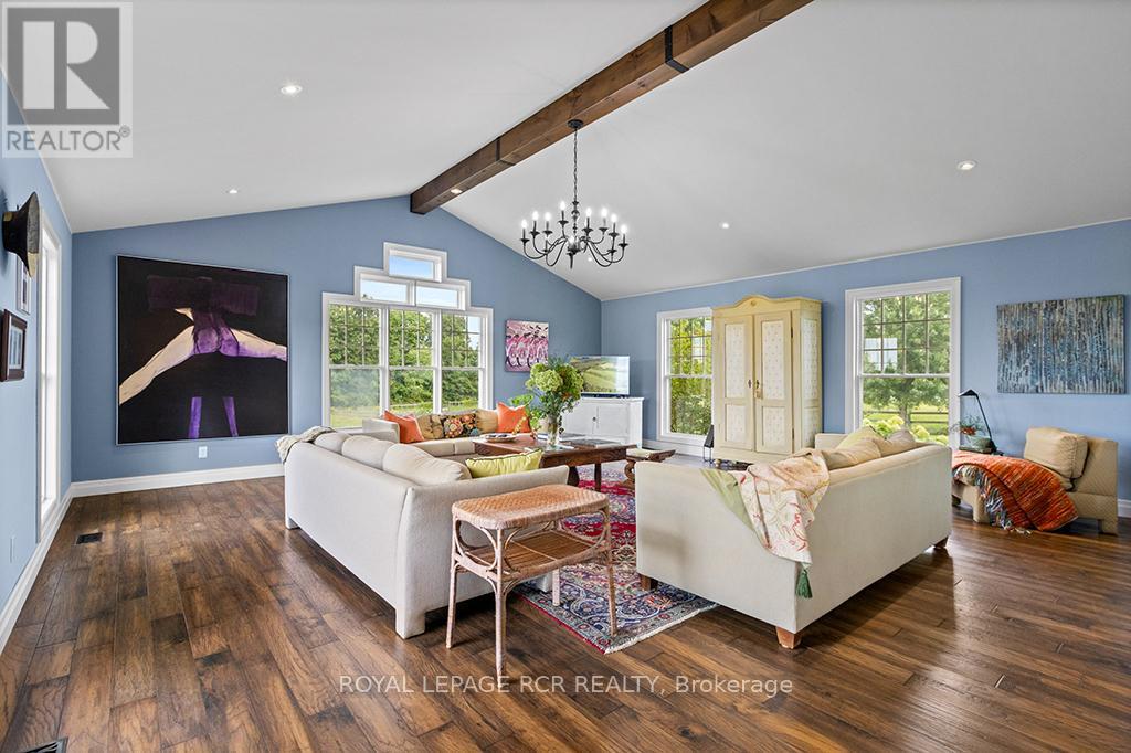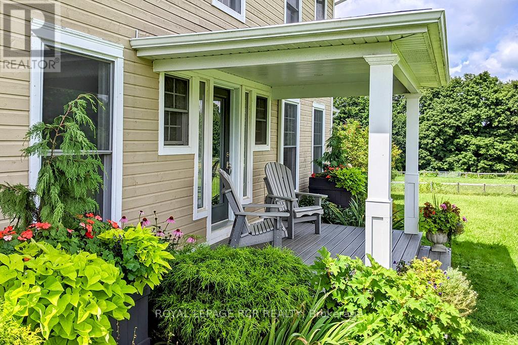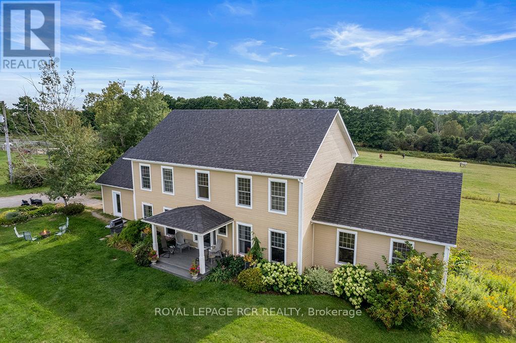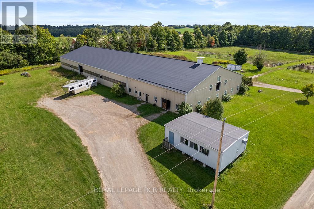 Turnkey 49-Acre Equestrian Facility - Ready for an experienced horse professional to take the reins! Currently operating as a pleasure riding & eventing facility, this property is fully equipped for boarding or training in any discipline, featuring 10 lush paddocks with frost-free hydrants and power for heated troughs, an insulated 20-stall barn with tack room (3-piece bath), feed room, wash stall, and hay loft. Train year-round in the attached 76' x 160' indoor arena with operable windows and premium Whoa Dust footing, or take advantage of the outdoor jumping field, 150' x 200' sand ring, and grass dressage field. Two productive hayfields add income potential or self-sufficiency, while a 23' x 30' heated portable with hydro can serve as an office, guest quarters, or studio. The 2,877 sq. ft. home (1997) offers a sophisticated, comfortable base of operations. Wide-plank, hand-scraped hickory hardwood and cathedral ceilings set the tone, while the chefs kitchen with Wolf cooktop and leathered granite counters flows into the dining area and Great Room with beamed cathedral ceiling. Flexible accommodation includes a main-floor bedroom with ensuite and three additional bedrooms upstairs, plus renovated bathrooms with heated floors and towel warmers. The primary retreat features a dressing room, walk-in closet with organizers, and a spa-inspired ensuite. An unspoiled walk out lower level offers even more possibilities. Updates designed for efficiency and peace of mind include a 2024 cold-climate heat pump with propane backup, a Generac generator to power farm essentials, and durable Goodfellow siding. The Pella windows are also energy efficient. Located minutes from Angelstone, Meadowlarke North, and Palgrave, this property is an entrepreneurs dream for a fully operational equestrian boarding or training business. (id:51158)