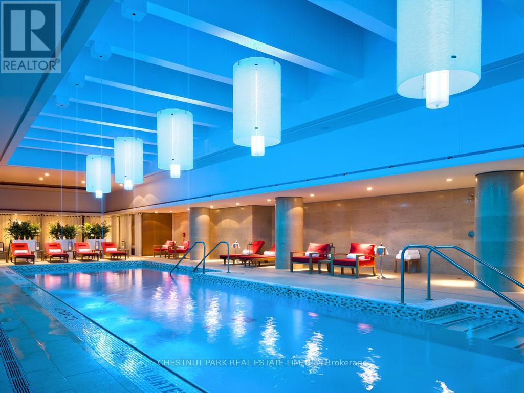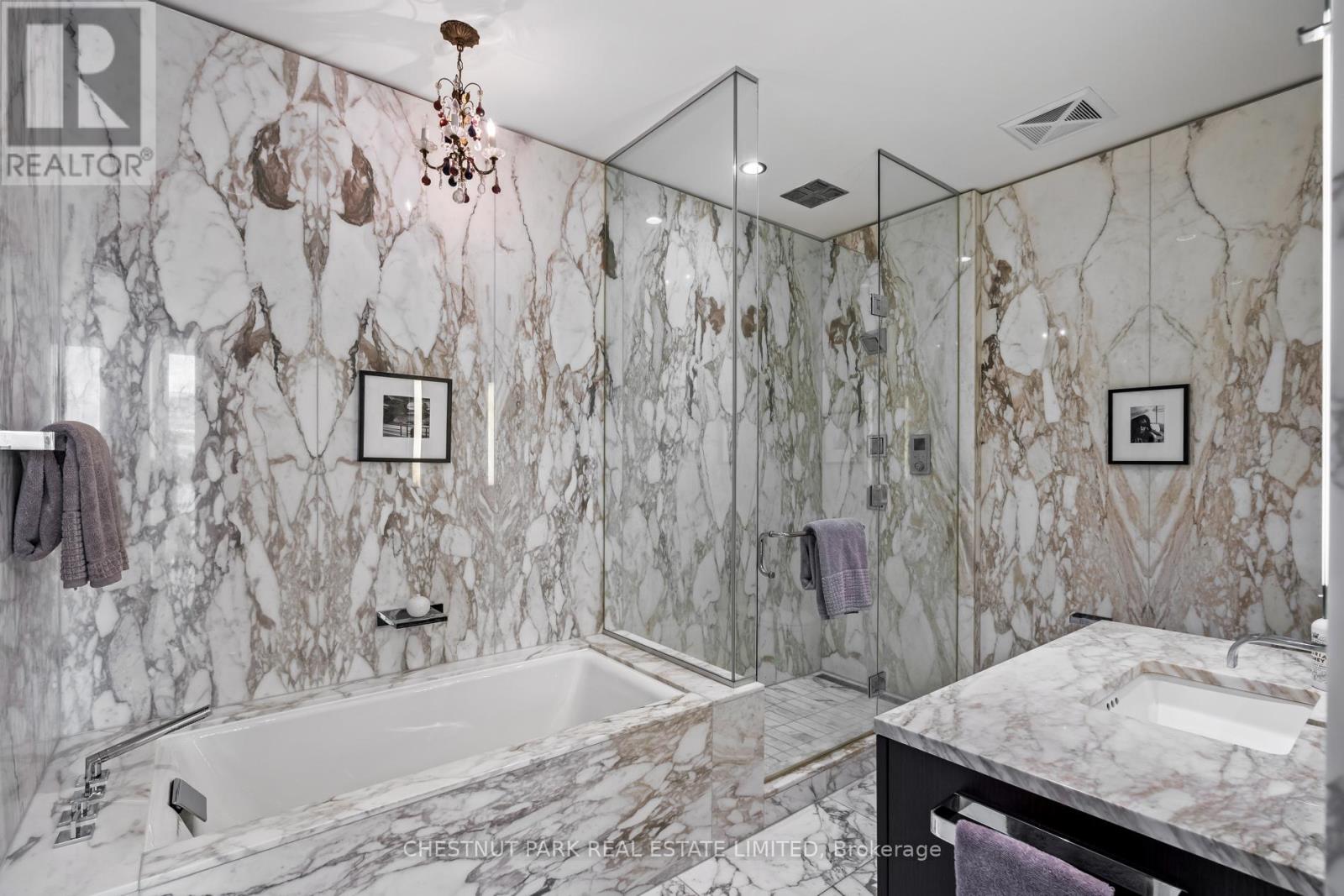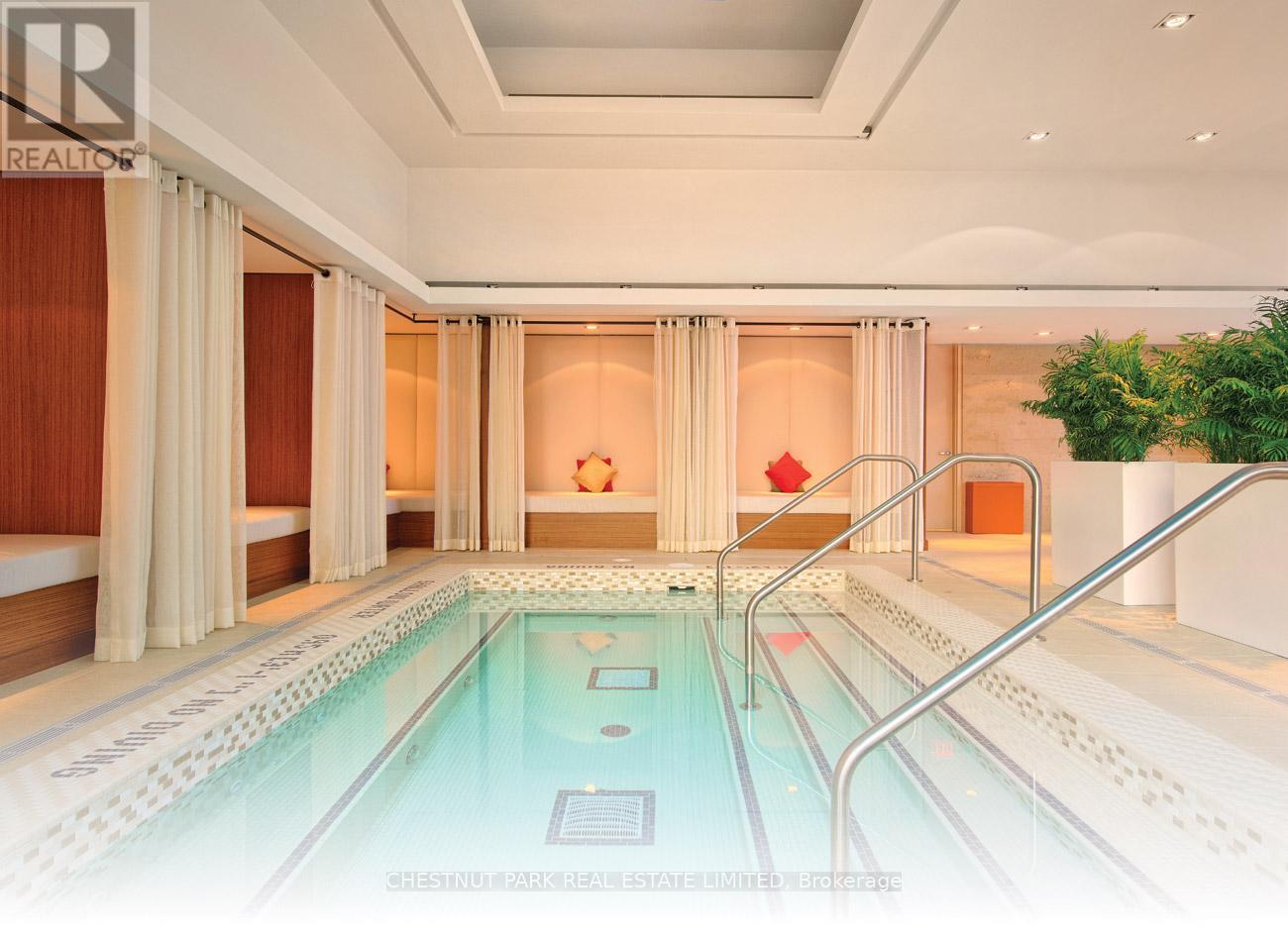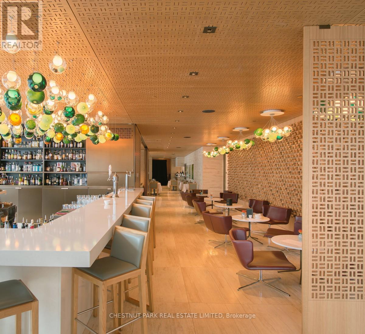 $1,221.62 MonthlySuite 5707 is a distinguished one-bedroom Private Estate suite above the Shangri-La Toronto, where panoramic skyline and lake views shift effortlessly from sunlit horizons to a dazzling nighttime city glow. With 10-ft ceilings (only for floors 50 and higher), herringbone hardwood floors, and a Boffi Italian kitchen featuring Miele and Sub-Zero appliances, the home combines elegance and functionality. Motorized shades are featured throughout, while custom Poliform closets in both the foyer and bedroom add boutique-inspired refinement. The marble-clad four-piece ensuite is a spa-like retreat with a deep soaker tub, heated floors, and seven-head Kohler DTV digital shower. One parking stall with valet service and a large private locker room adjacent complete this unique offering. Residents enjoy access to world-class hotel amenities and services including 24-hour concierge and security, a fitness centre, indoor pool, sauna and steam rooms, and valet parking (available only to Private Estate floors) all in the heart of Toronto's Entertainment and Financial Districts. (id:51158)