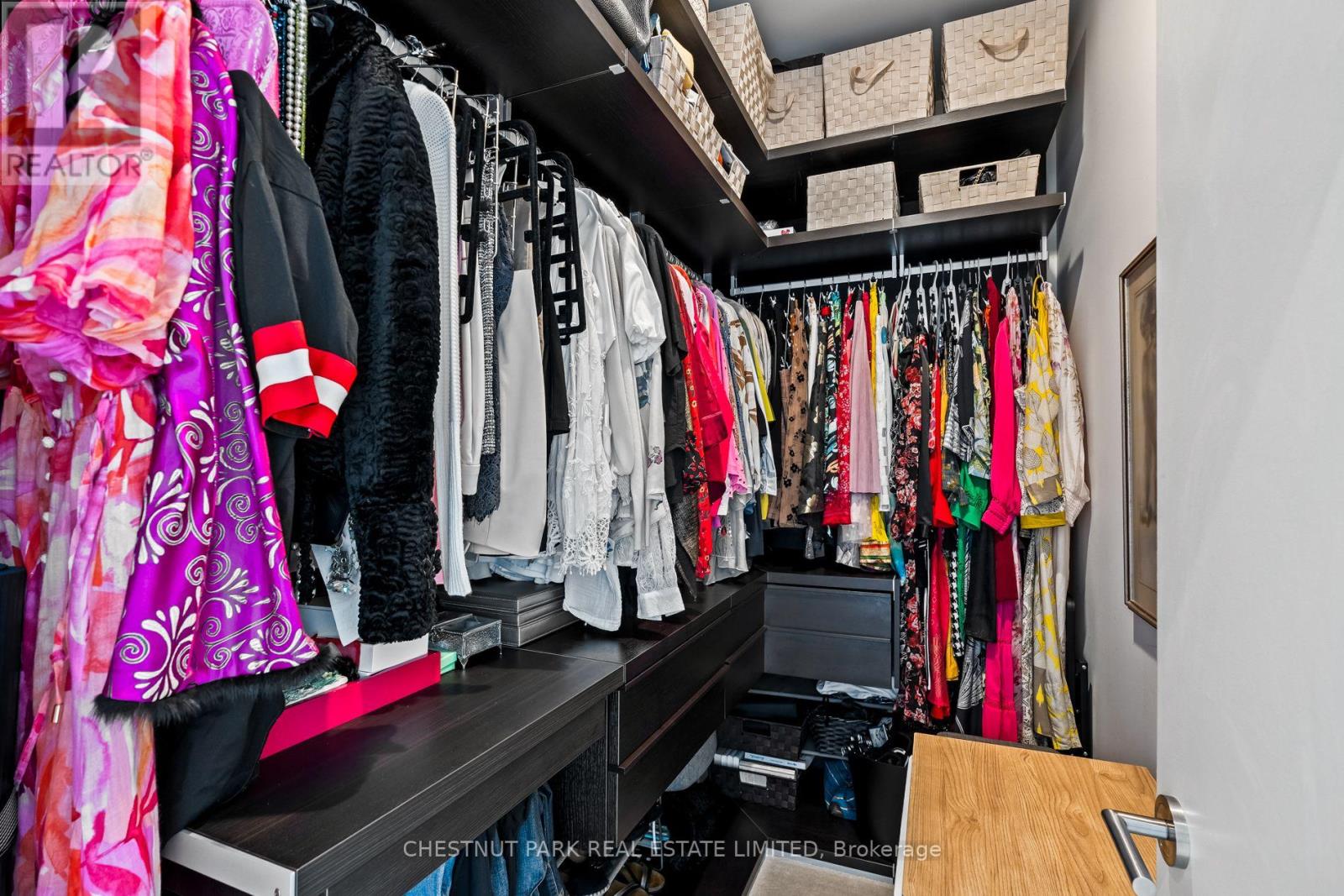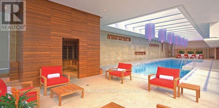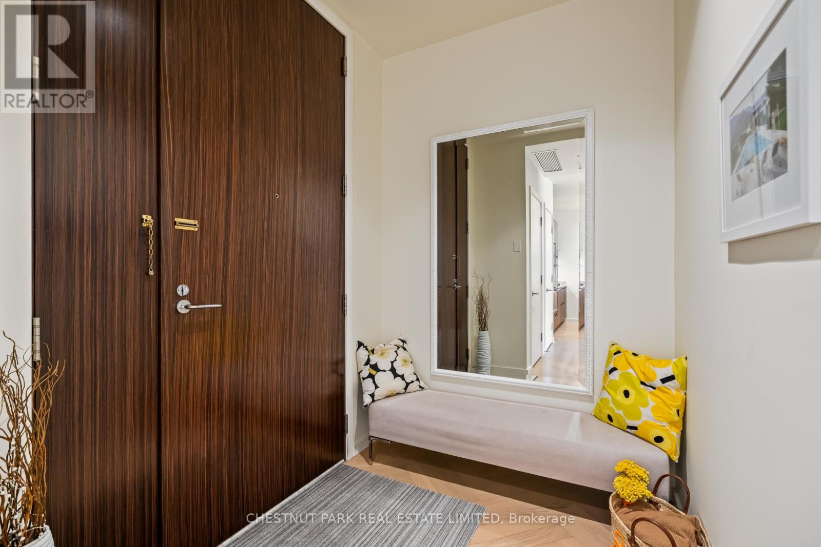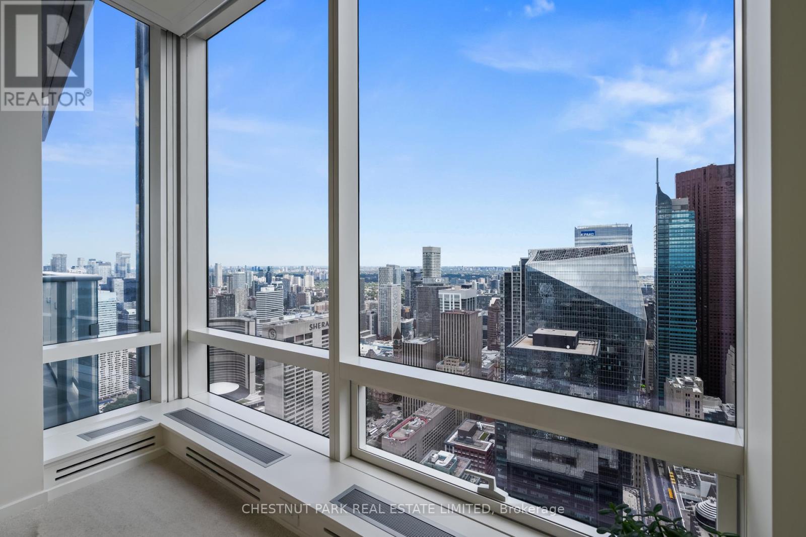 $1,221.62 MonthlySuite 5707 is a distinguished one-bedroom Private Estate suite above the Shangri-La Toronto, where panoramic skyline and lake views shift effortlessly from sunlit horizons to a dazzling nighttime city glow. With 10-ft ceilings (only for floors 50 and higher), herringbone hardwood floors, and a Boffi Italian kitchen featuring Miele and Sub-Zero appliances, the home combines elegance and functionality. Motorized shades are featured throughout, while custom Poliform closets in both the foyer and bedroom add boutique-inspired refinement. The marble-clad four-piece ensuite is a spa-like retreat with a deep soaker tub, heated floors, and seven-head Kohler DTV digital shower. One parking stall with valet service and a large private locker room adjacent complete this unique offering. Residents enjoy access to world-class hotel amenities and services including 24-hour concierge and security, a fitness centre, indoor pool, sauna and steam rooms, and valet parking (available only to Private Estate floors) all in the heart of Toronto's Entertainment and Financial Districts. (id:51158)