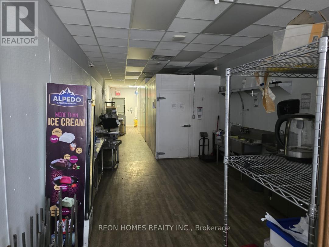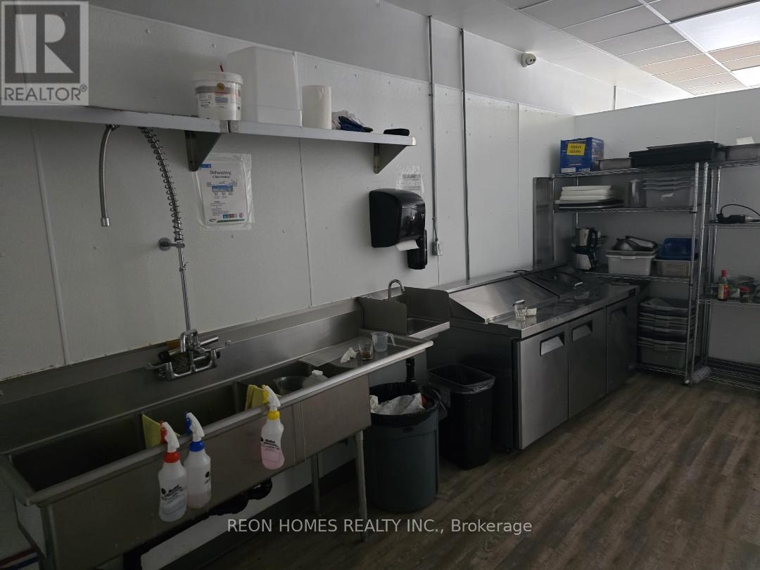 Located at the busy intersection of Kerr Street and Speers Road, this restaurant space is in the heart of Oakville's lively Kerr Village, surrounded by popular retailers such as Shoppers Drug Mart, Dollarama, and other well known local businesses, as well as nearby condos and established residential neighborhoods. The approximately 1,100 sq. ft. unit is currently used as a catering kitchen and offers a practical layout that can be easily converted into a dine-in or take out restaurant with minimal investment, subject to landlord approval. The space includes a walk-in cooler, walk-in freezer, and basement prep/work areas, making it suitable for many food concepts. There is no exhaust hood installed, giving the buyer the flexibility to add one based on their own requirements. The rent is very attractive at $2,635 per month including TMI and HST, and a new lease will be negotiated with the landlord for the incoming buyer. (id:51158)