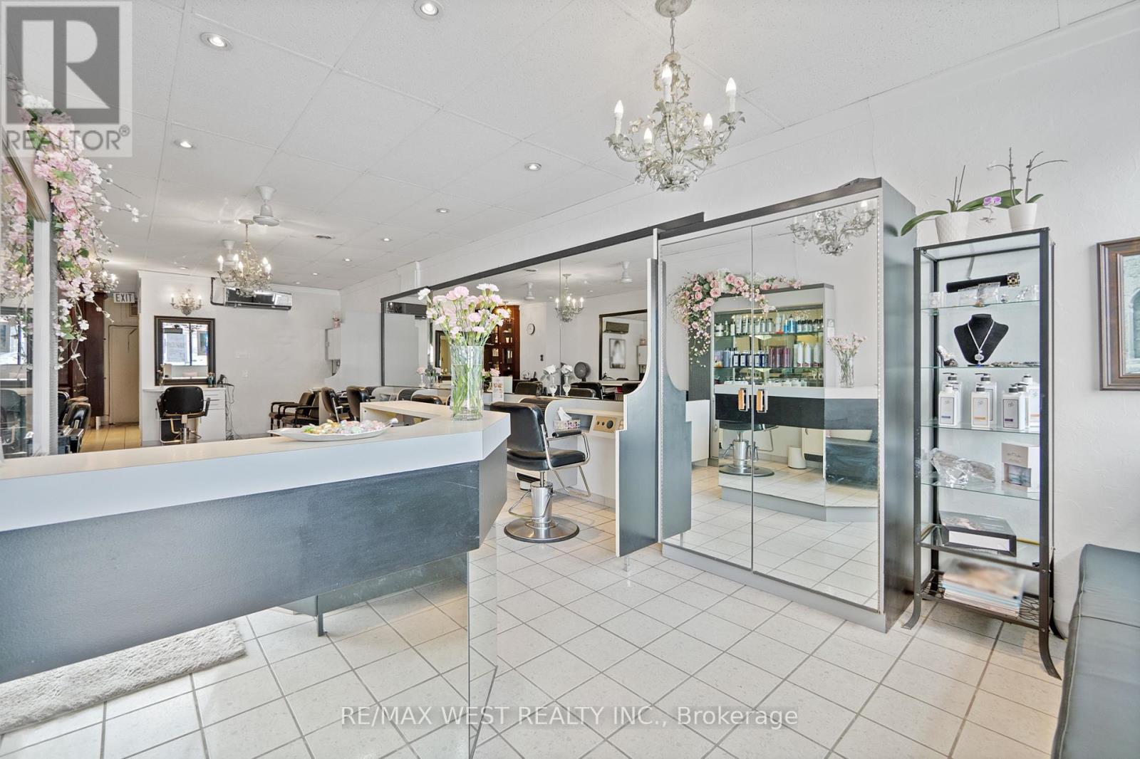 A fantastic opportunity to take over an existing Hair Salon with over 20 years in business, a large loyal client base, and a fully furnished and equipped facility including a fully renovated basement with additional rooms that generate monthly cashflow. The main floor of the salon includes: 8 Hairdressing stations, 3 hair washing sinks, 1 bathroom, 1 private room with a sink, ample storage space and cabinetry as well as a large reception and waiting area. The basement level includes: 2 Hairdressing stations, 1 Hair washing sink, 1 private room, 1 bathroom, laundry room and a kitchen. The salon generates cashflow by renting out all the rooms , and some chairs, and the owner is willing to remain after the sale on a chair rental basis. All inventory, products, furniture and supplies are included in the sale. The rent is only $3,200 + HST and hydro. Floor plan is attached in the listing. (id:51158)