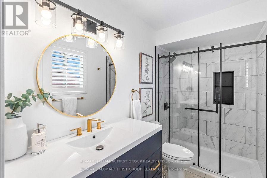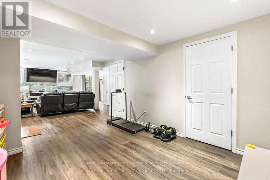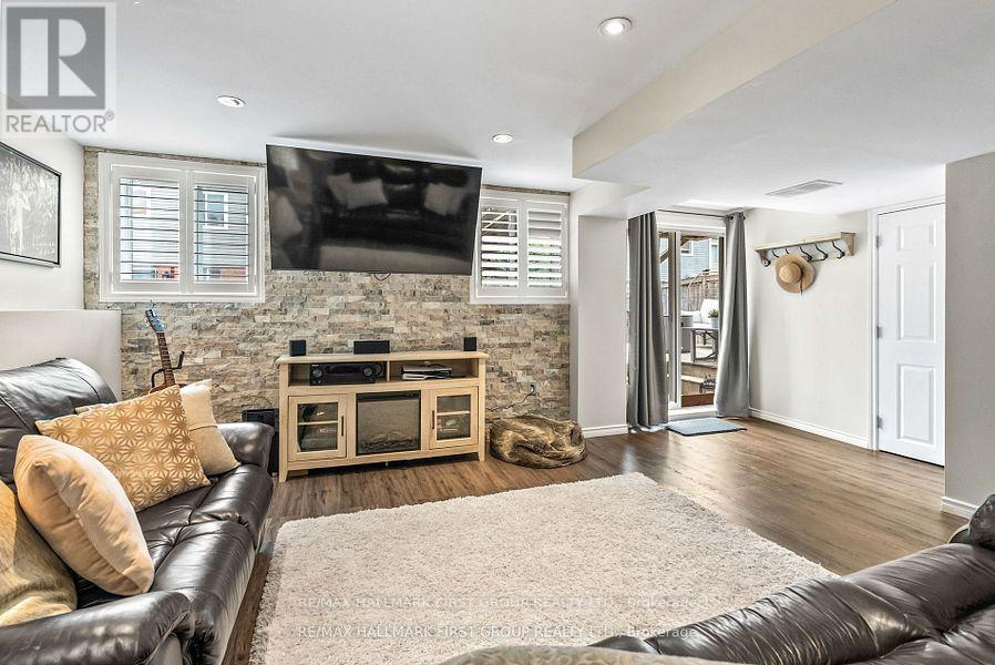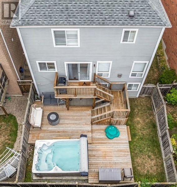 Welcome to this turnkey 4-bed, 3-bath detached family home offering 2,242 sq.ft. of finished living space, including a finished walkout basement nestled on a quiet, family-friendly crescent in the highly sought after South Ajax Lakeside community! This home is just a few blocks from Lake Ontario and playgrounds, parks, trails & waterfront all within walking distance. Enjoy multiple outdoor spaces; sip morning coffee on the covered front porch, relax on the upper deck, or unwind with a glass of wine on the large back deck. Tastefully renovated, freshly painted, & move-in ready, an open-concept main floor flows effortlessly between the living, dining, family & kitchen areas perfect for entertaining or everyday life. A cozy gas fireplace in the family room adds warmth while keeping sightlines open to the kitchen. California shutters on select windows bring timeless style & privacy. Engineered hardwood flooring extends through the main & upper levels (no carpet!), creating a clean, elegant finish. Upstairs, 4 spacious bedrooms are all conveniently located on 1 level, including a primary suite with a recently renovated ensuite bath. The fully finished basement expands your living space with a wet bar & surround sound speakers ideal for family movie nights, entertaining, or creating a private guest or in-law suite. Walk-out to the fenced backyard where an extended deck leads to your own swim spa: a hybrid of a swimming pool & hot tub. Perfect for year-round exercise, relaxation or social gatherings. A garage & 2 driveway parking are side-by-side providing rare convenience in this area. Most Recent Updates: Front deck posts, gas furnace, water softener, kitchen flooring/tiles, bar fridge, extended lower deck, concrete pad & swim spa, swim spa cover, ensuite bath, main-floor wall opening between family & dining rooms, freshly painted, driveway seal/coating. Close to Hwy 401 & the GO Train, this move-in-ready home truly has it all. (id:51158)