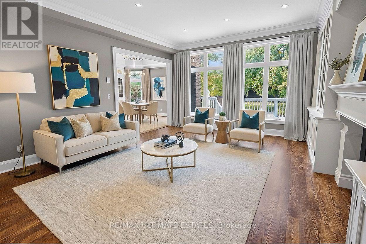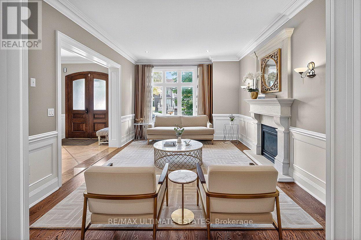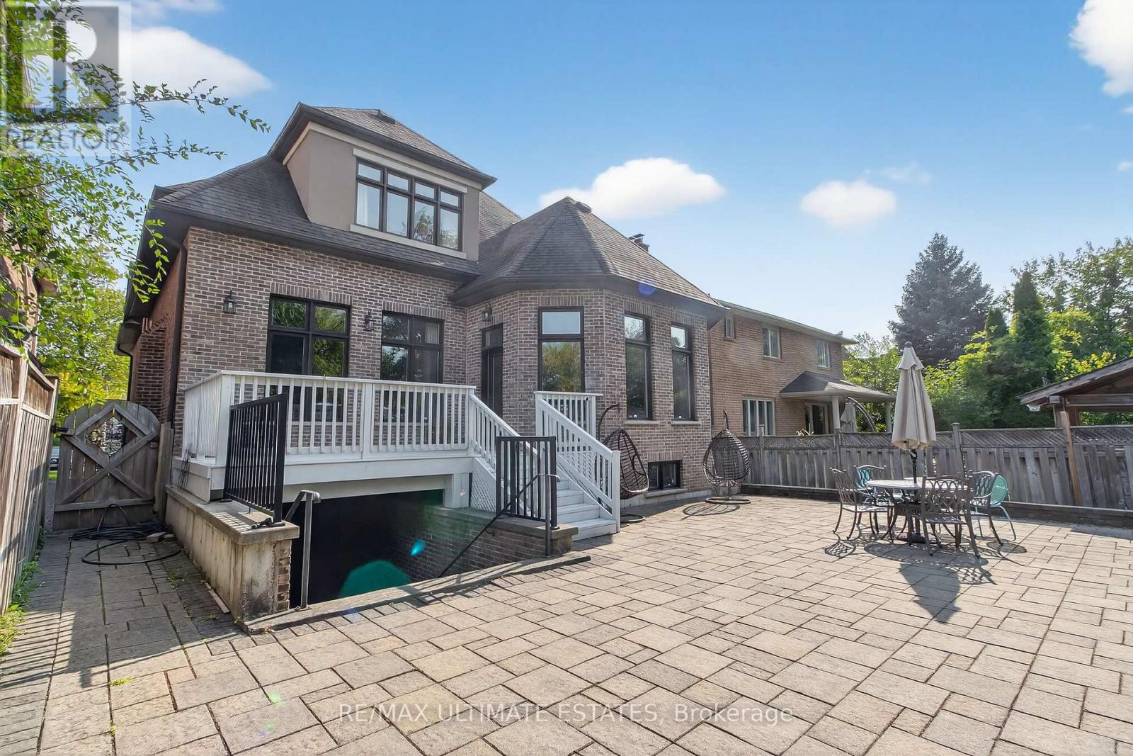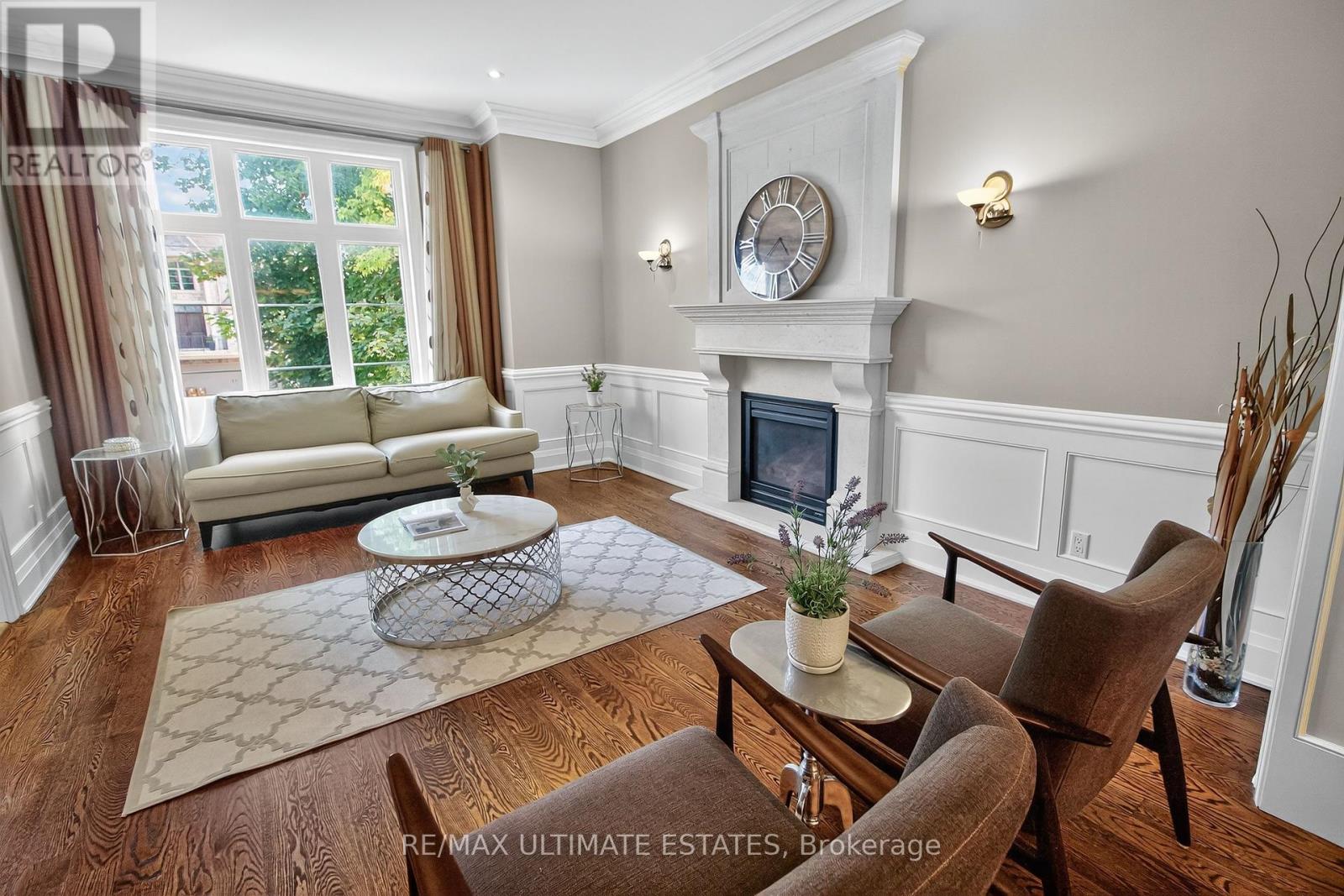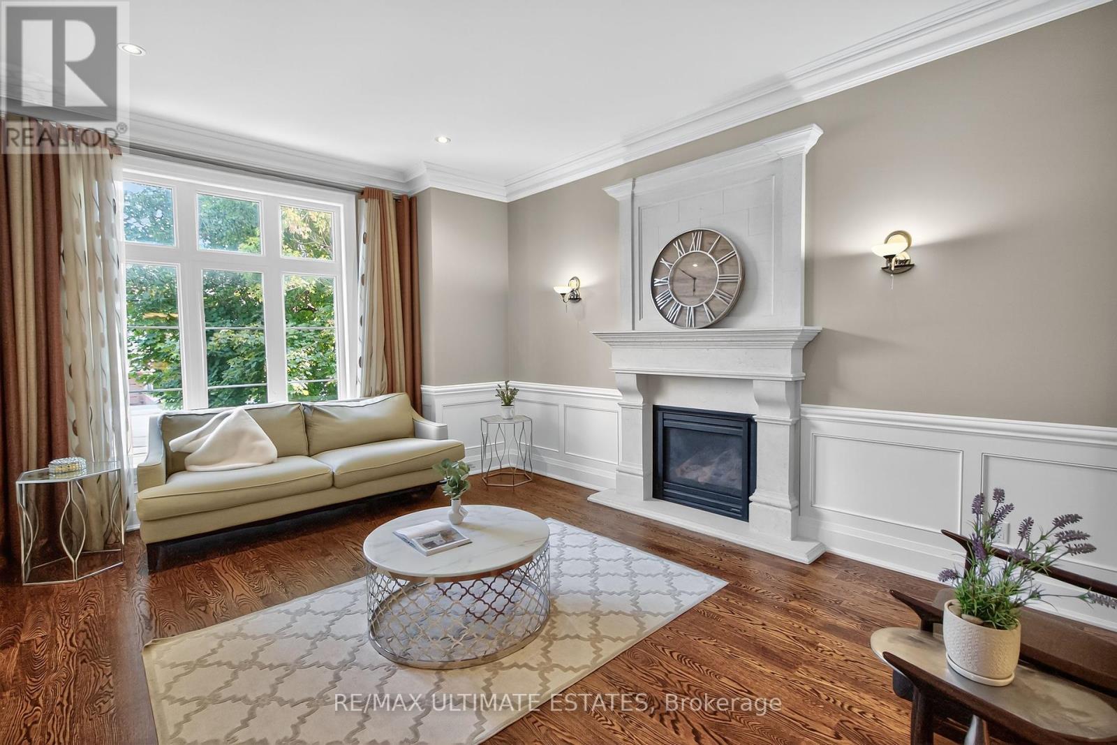 A distinguished South Richvale address on a rare 45 x 240 lot. The natural stone façade and sunlit south exposure lead to interiors featuring ten-foot main and nine-foot second ceilings, refined millwork and wainscoting, limestone, marble, and wide-plank hardwood, coffered details, a skylight, and three fireplaces. A bespoke chefs kitchen centres on an oversized island, twin sinks, granite counters, under cabinet lighting and integrated appliances, with a breakfast area stepping to a private terrace and an estate depth garden. A quiet main floor office with custom built-ins. The finished walk-up lower level offers above-grade windows, a generous L-shaped recreation space, a guest bedroom and a three-piece bath. Walk to Yonge Street and minutes to Highway 407. (id:51158)