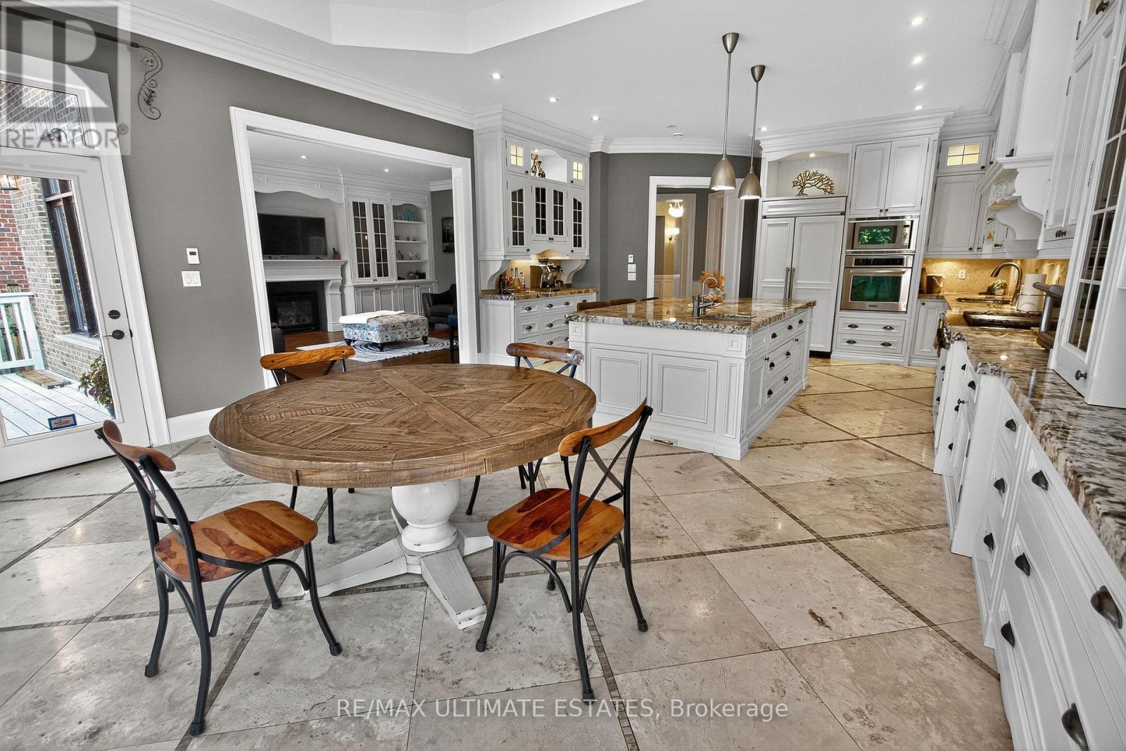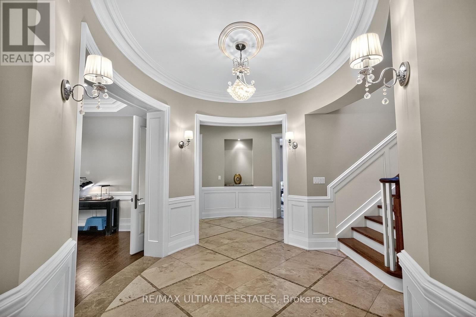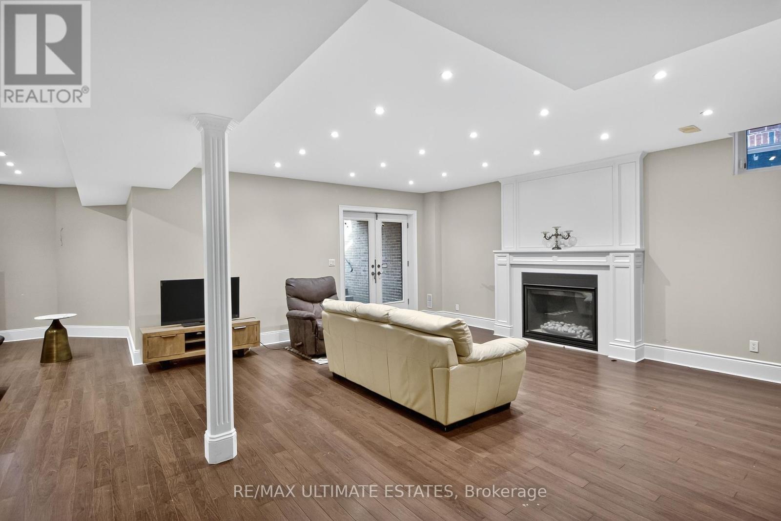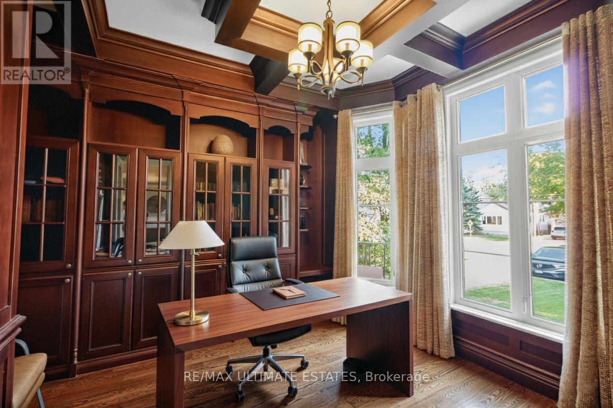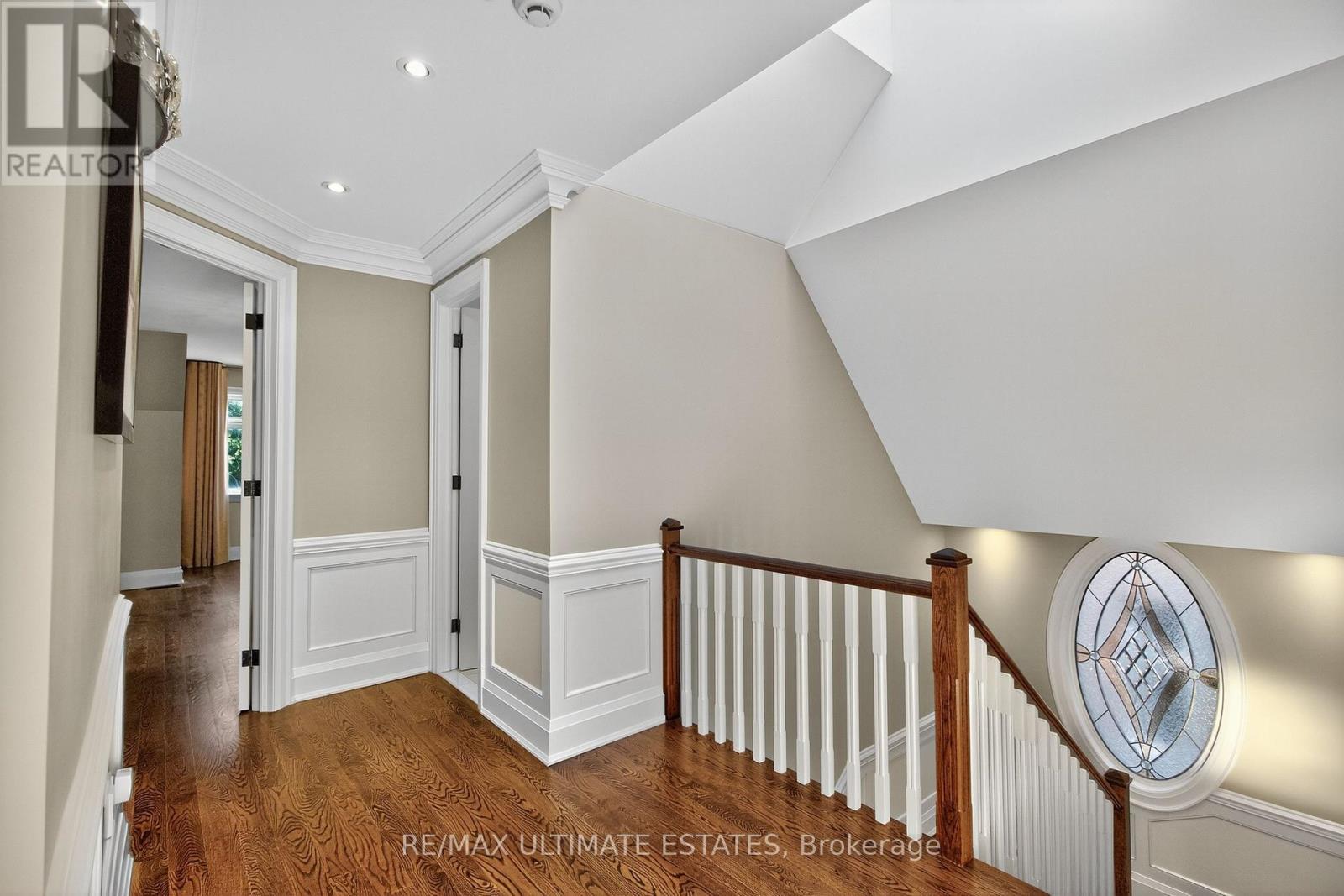 A distinguished South Richvale address on a rare 45 x 240 lot. The natural stone façade and sunlit south exposure lead to interiors featuring ten-foot main and nine-foot second ceilings, refined millwork and wainscoting, limestone, marble, and wide-plank hardwood, coffered details, a skylight, and three fireplaces. A bespoke chefs kitchen centres on an oversized island, twin sinks, granite counters, under cabinet lighting and integrated appliances, with a breakfast area stepping to a private terrace and an estate depth garden. A quiet main floor office with custom built-ins. The finished walk-up lower level offers above-grade windows, a generous L-shaped recreation space, a guest bedroom and a three-piece bath. Walk to Yonge Street and minutes to Highway 407. (id:51158)