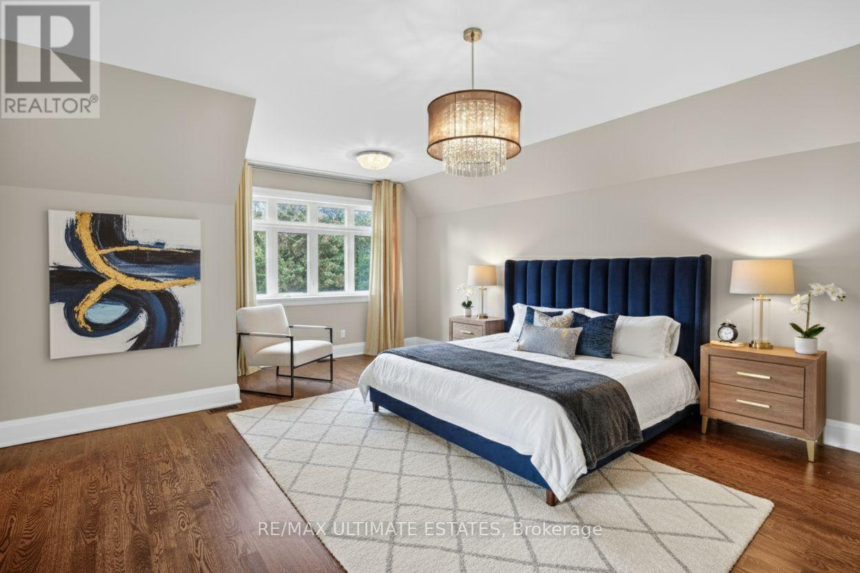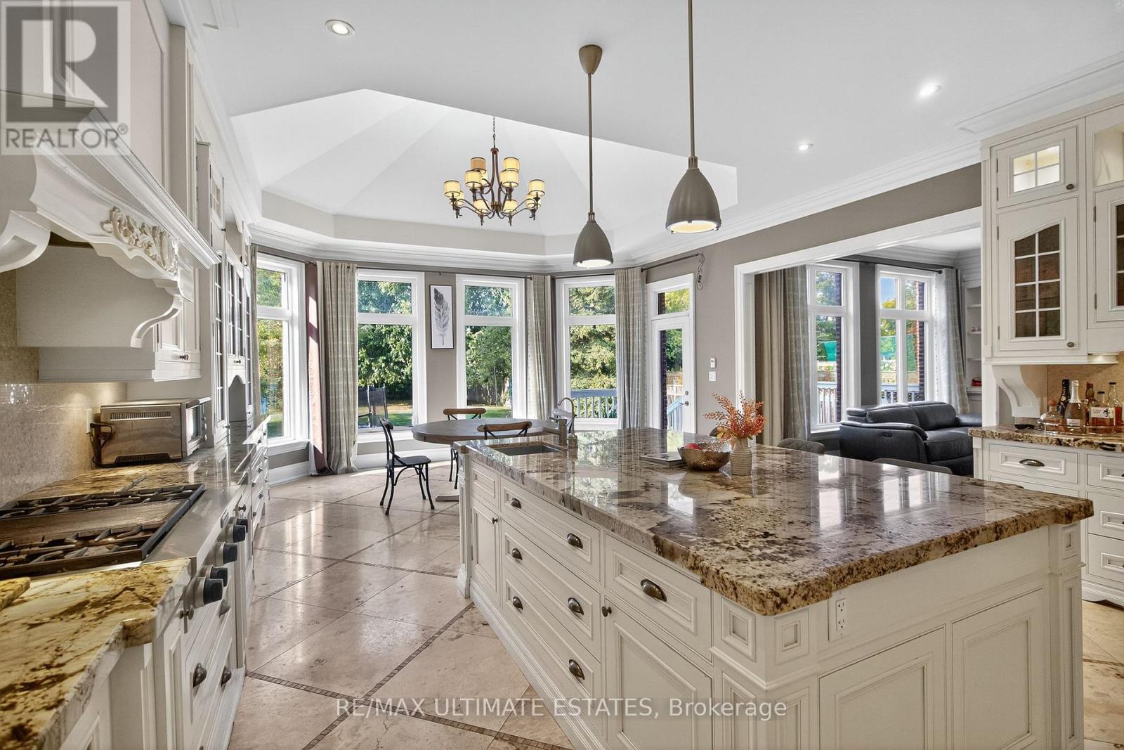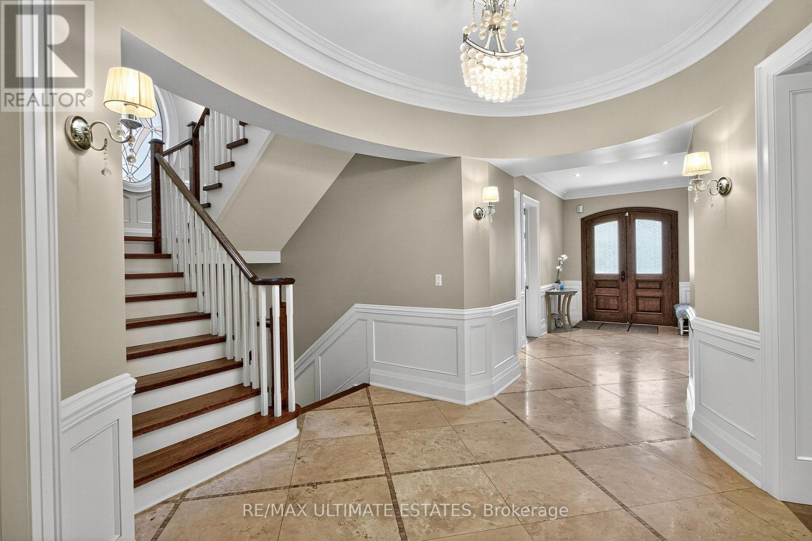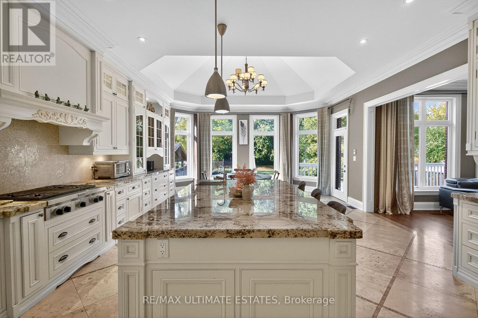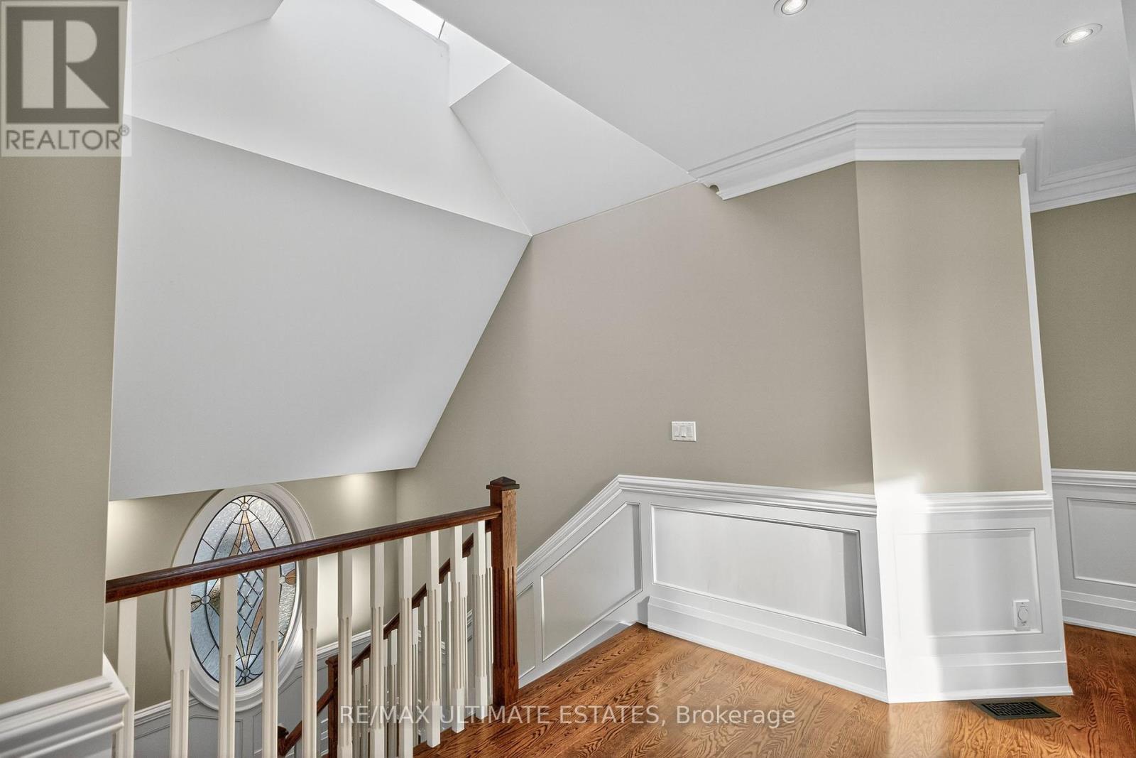 A distinguished South Richvale address on a rare 45 x 240 lot. The natural stone façade and sunlit south exposure lead to interiors featuring ten-foot main and nine-foot second ceilings, refined millwork and wainscoting, limestone, marble, and wide-plank hardwood, coffered details, a skylight, and three fireplaces. A bespoke chefs kitchen centres on an oversized island, twin sinks, granite counters, under cabinet lighting and integrated appliances, with a breakfast area stepping to a private terrace and an estate depth garden. A quiet main floor office with custom built-ins. The finished walk-up lower level offers above-grade windows, a generous L-shaped recreation space, a guest bedroom and a three-piece bath. Walk to Yonge Street and minutes to Highway 407. (id:51158)