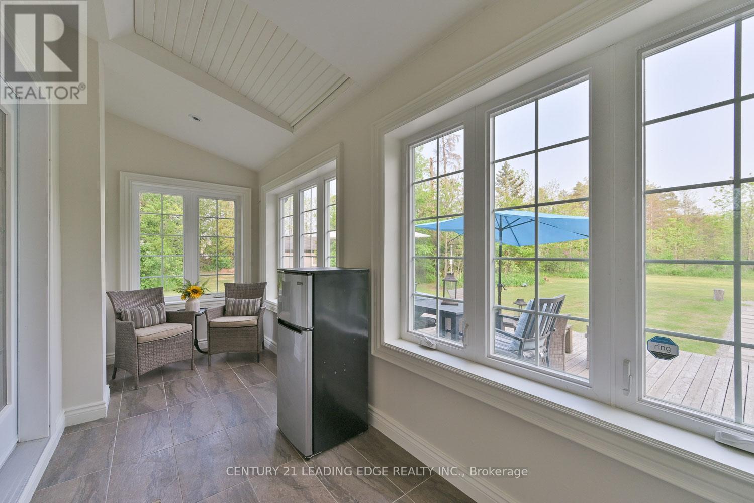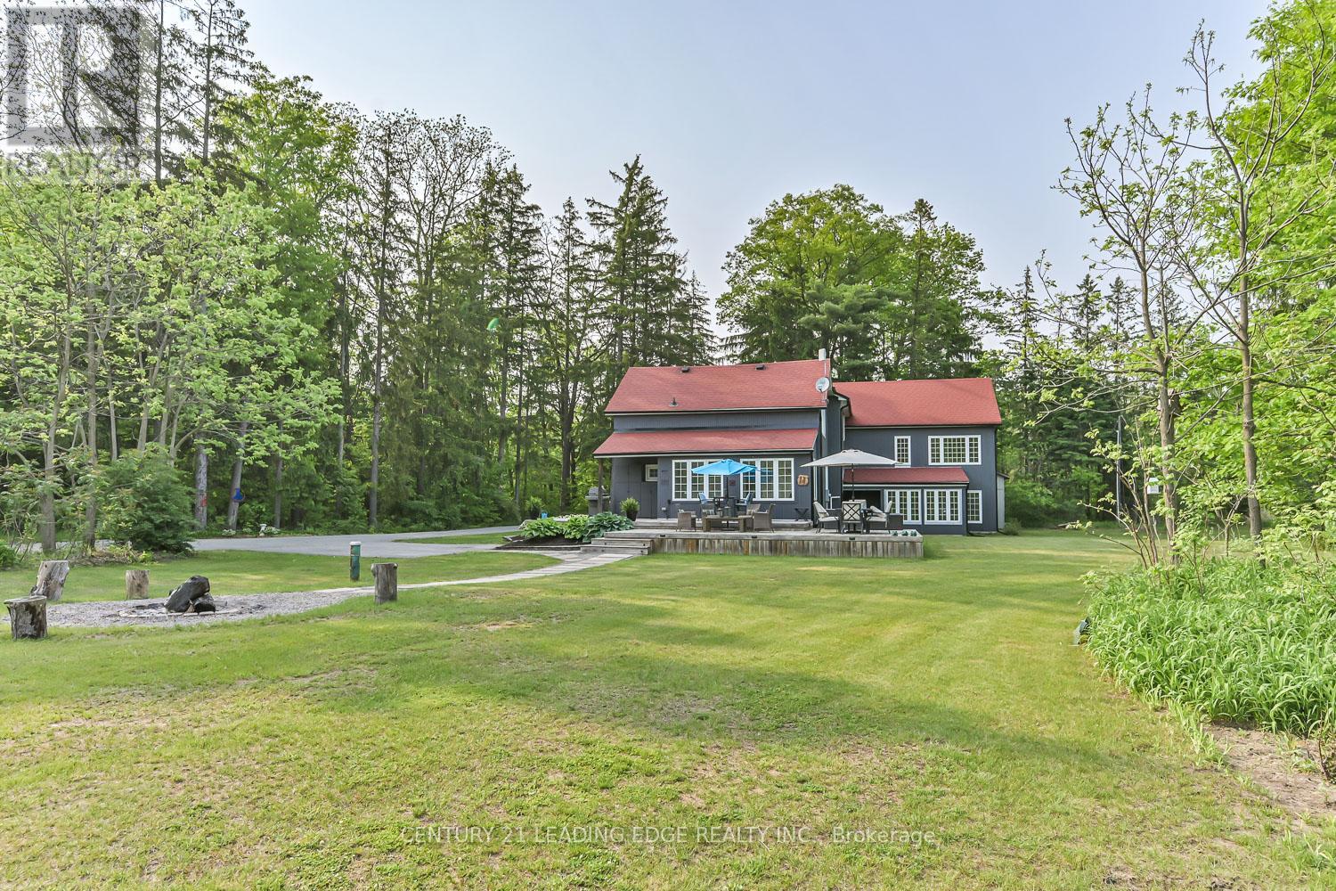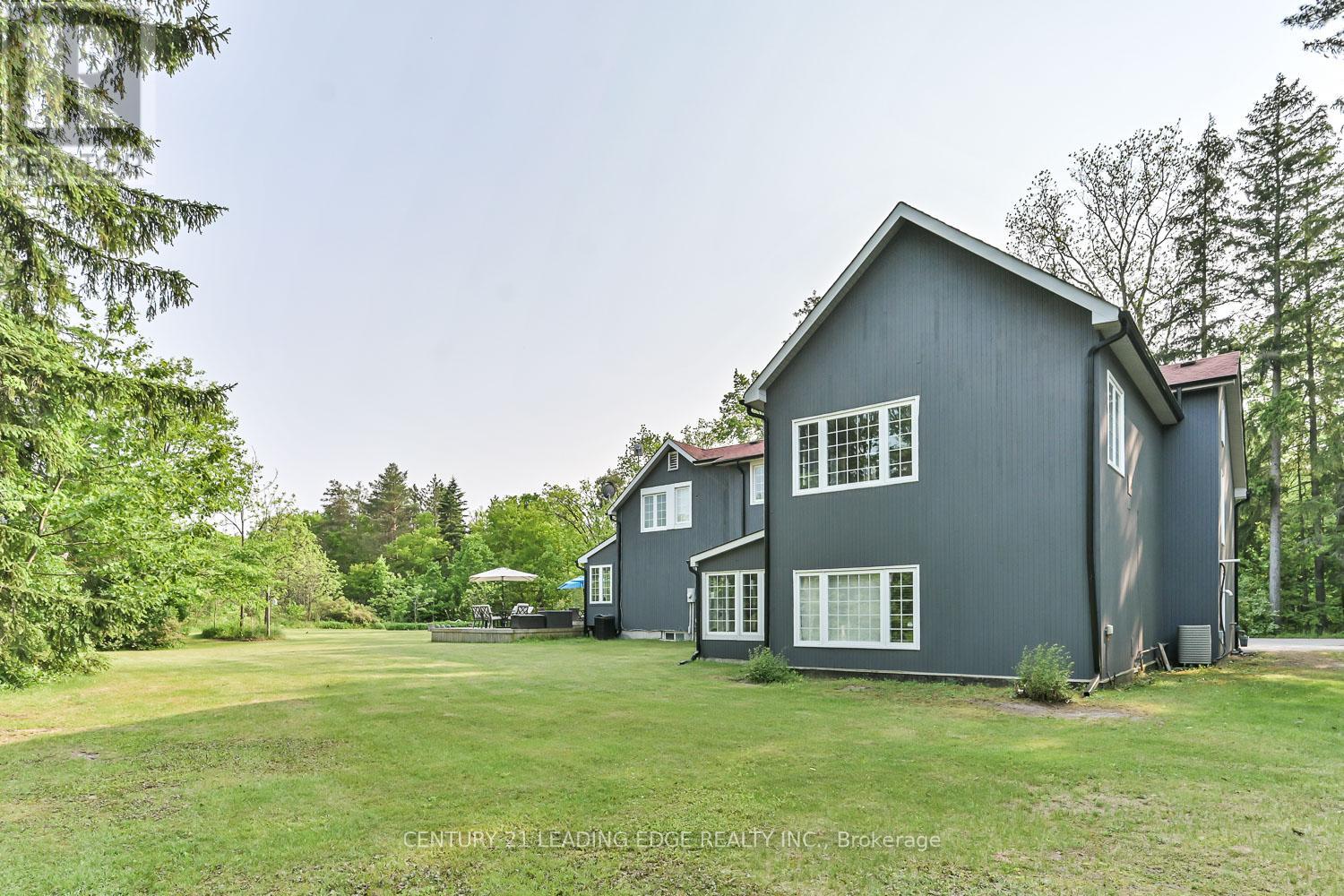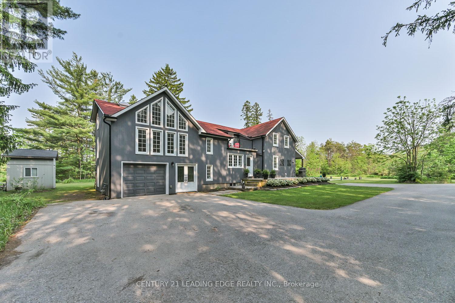 Nestled on 8.33 acres of pristine, unspoiled land, this exceptional one of a kind property offers the tranquility of Muskoka with the convenience of suburban living. Lovingly restored in 2014, the home blends timeless modern finishes with a layout ideal for growing or multi-generational families. Every detail of the exterior was updated during the restoration including the roof, soffits, eaves, windows, and exterior doors. The expansive grounds include a 10' x 10' storage shed, a separate 20' x 30' heated workshop, and a charming chicken coop for those with a passion for hobby farming. A 1000 sq ft. detached guest house which is just a short stroll from the main home features a sitting area with kitchenette, bathroom and a 2nd floor loft, a cozy and private space for visitors. Inside, the main home features a unique and versatile layout with dual staircases and distinct wings that flow seamlessly together. The main floor of this 3800 sq ft home boasts an open-concept chef-inspired kitchen overlooking the living and dining areas. Adding more convenience to this space is a powder room and laundry room with additional storage. The upper level offers a stunning great room and dining area with soaring cathedral ceilings and architecturally inspired windows that flood the space with natural light. The luxurious primary suite is a true retreat, featuring a spa-inspired ensuite and walk-out to a glass-enclosed balcony. With a total of 5 bedrooms & 5 bathrooms this property provides plenty of room for the whole family. Enjoy chilly evenings in the enclosed sunroom or take in panoramic views from the multi-level deck overlooking the rolling greenery and serene surroundings. Whether you're entertaining, gardening, or simply unwinding, this property offers the perfect backdrop. (id:51158)