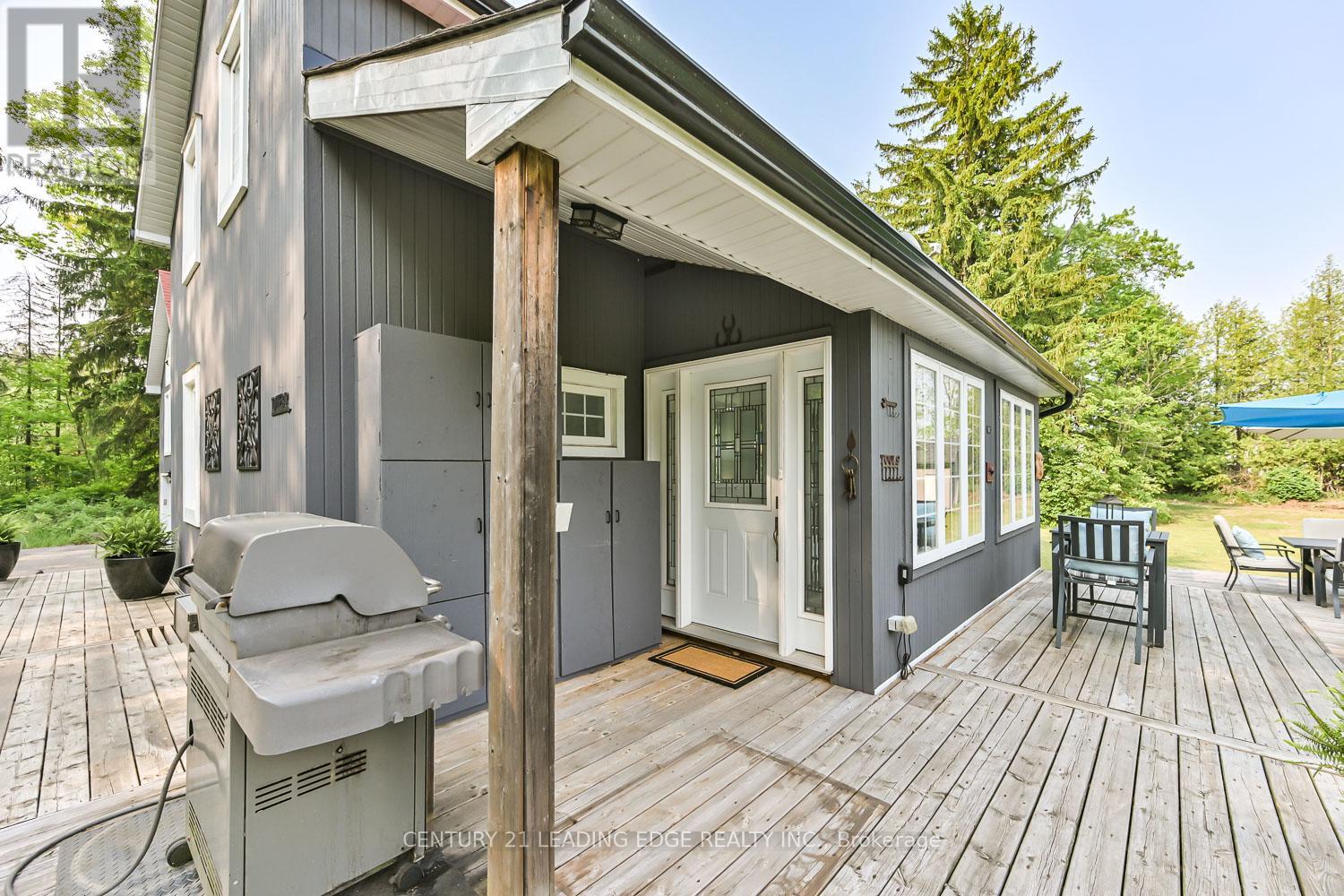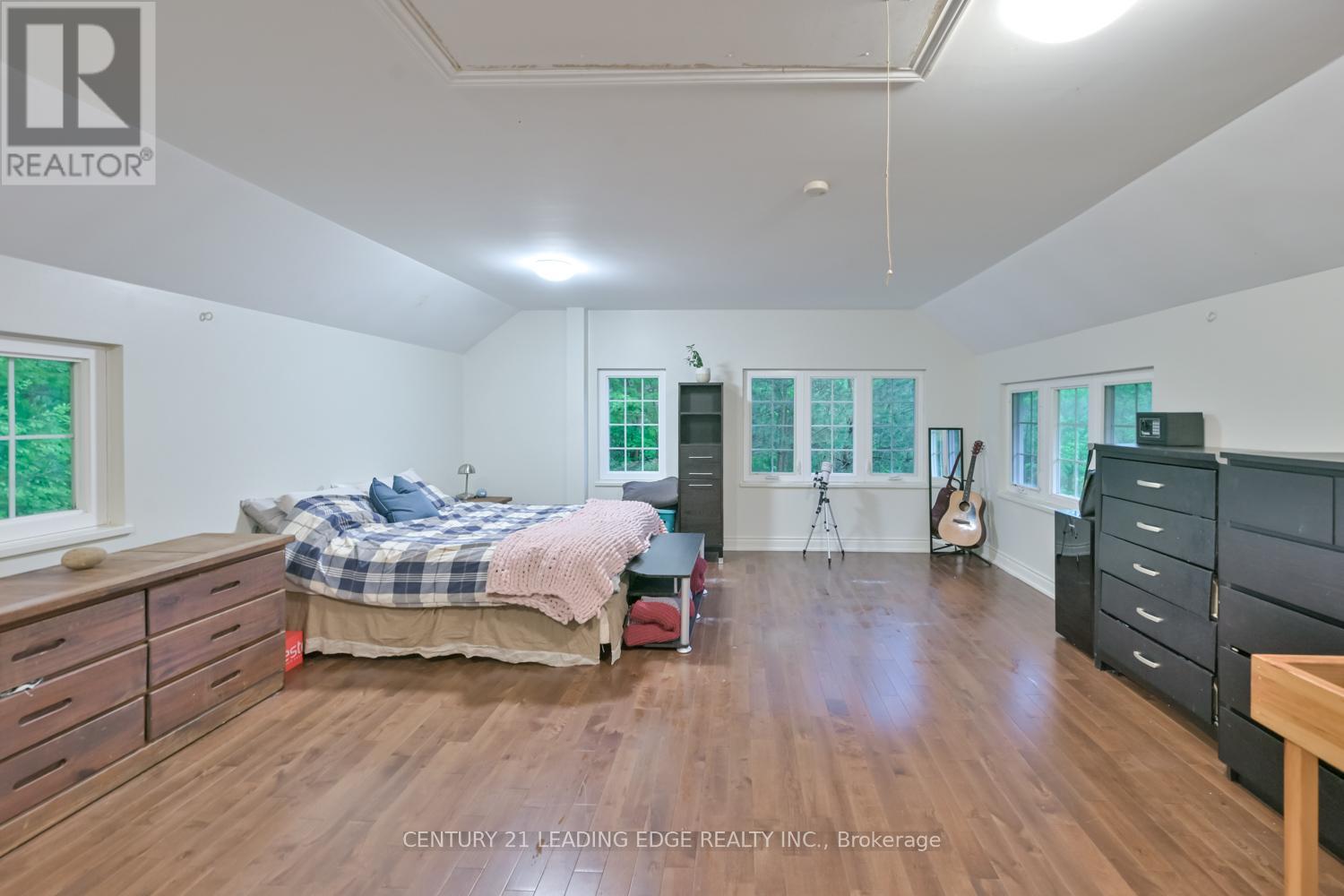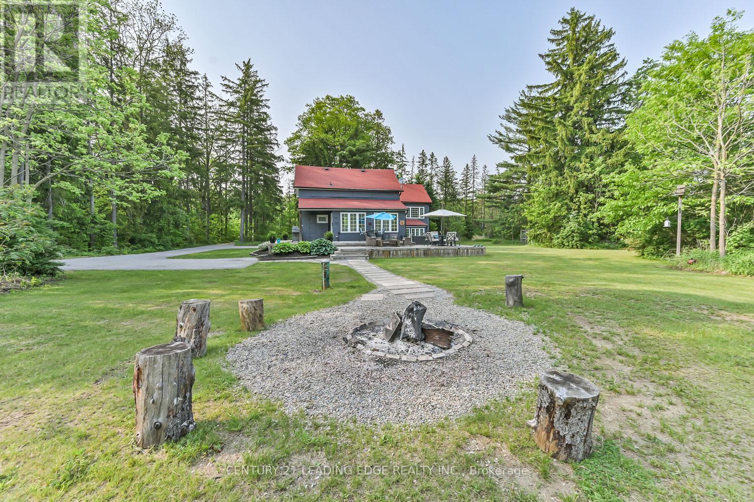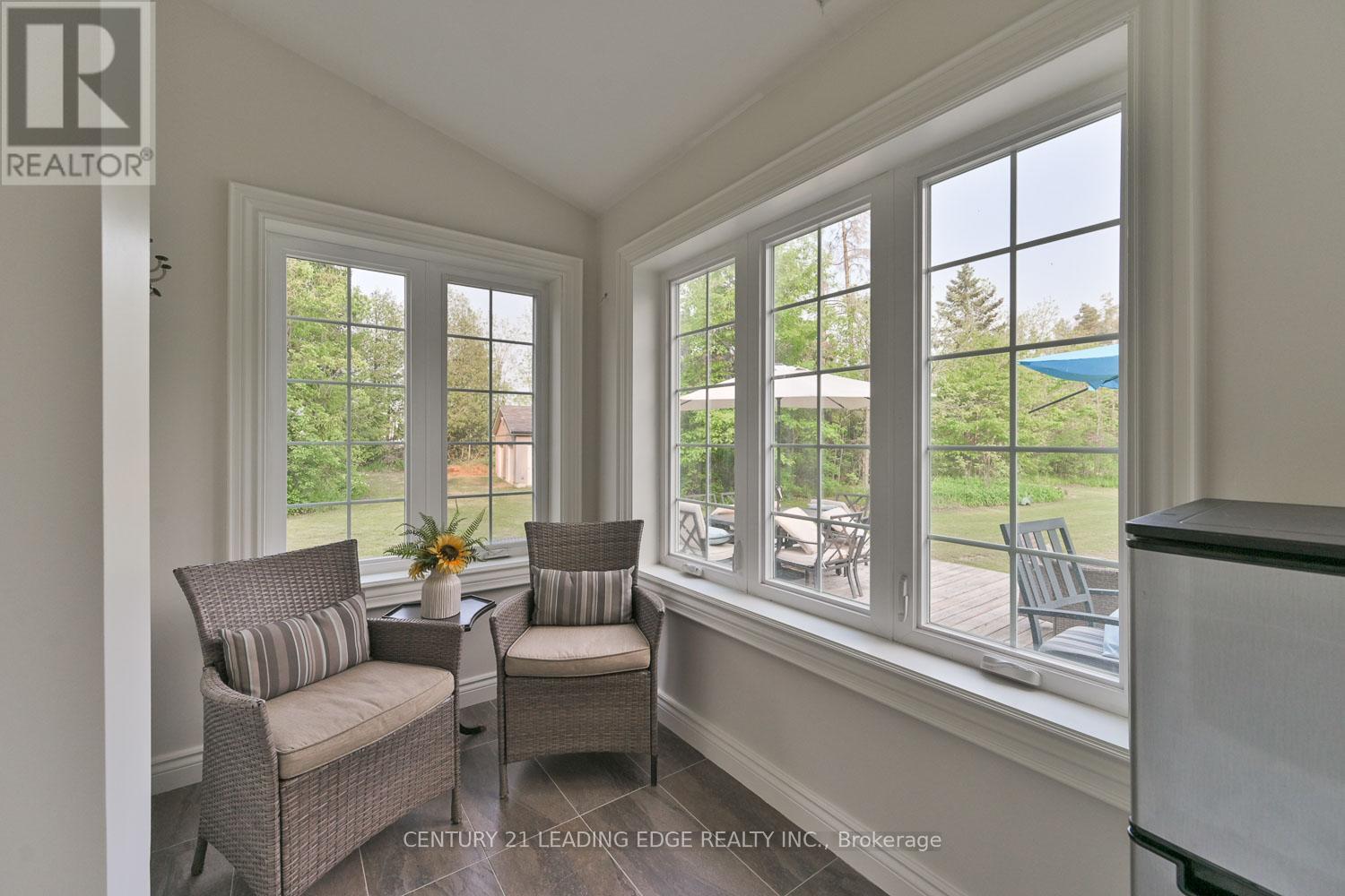 Nestled on 8.33 acres of pristine, unspoiled land, this exceptional one of a kind property offers the tranquility of Muskoka with the convenience of suburban living. Lovingly restored in 2014, the home blends timeless modern finishes with a layout ideal for growing or multi-generational families. Every detail of the exterior was updated during the restoration including the roof, soffits, eaves, windows, and exterior doors. The expansive grounds include a 10' x 10' storage shed, a separate 20' x 30' heated workshop, and a charming chicken coop for those with a passion for hobby farming. A 1000 sq ft. detached guest house which is just a short stroll from the main home features a sitting area with kitchenette, bathroom and a 2nd floor loft, a cozy and private space for visitors. Inside, the main home features a unique and versatile layout with dual staircases and distinct wings that flow seamlessly together. The main floor of this 3800 sq ft home boasts an open-concept chef-inspired kitchen overlooking the living and dining areas. Adding more convenience to this space is a powder room and laundry room with additional storage. The upper level offers a stunning great room and dining area with soaring cathedral ceilings and architecturally inspired windows that flood the space with natural light. The luxurious primary suite is a true retreat, featuring a spa-inspired ensuite and walk-out to a glass-enclosed balcony. With a total of 5 bedrooms & 5 bathrooms this property provides plenty of room for the whole family. Enjoy chilly evenings in the enclosed sunroom or take in panoramic views from the multi-level deck overlooking the rolling greenery and serene surroundings. Whether you're entertaining, gardening, or simply unwinding, this property offers the perfect backdrop. (id:51158)